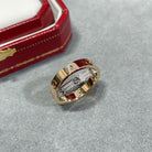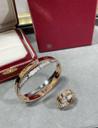 LOVE PINK GOLD SILVER DIAMOND DOUBLE RING