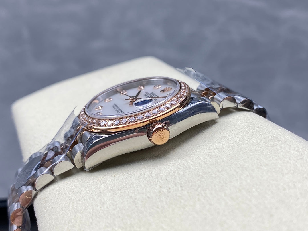 Datejust 31mm Pink Gold Steel Diamond Bezel White Mop Dial