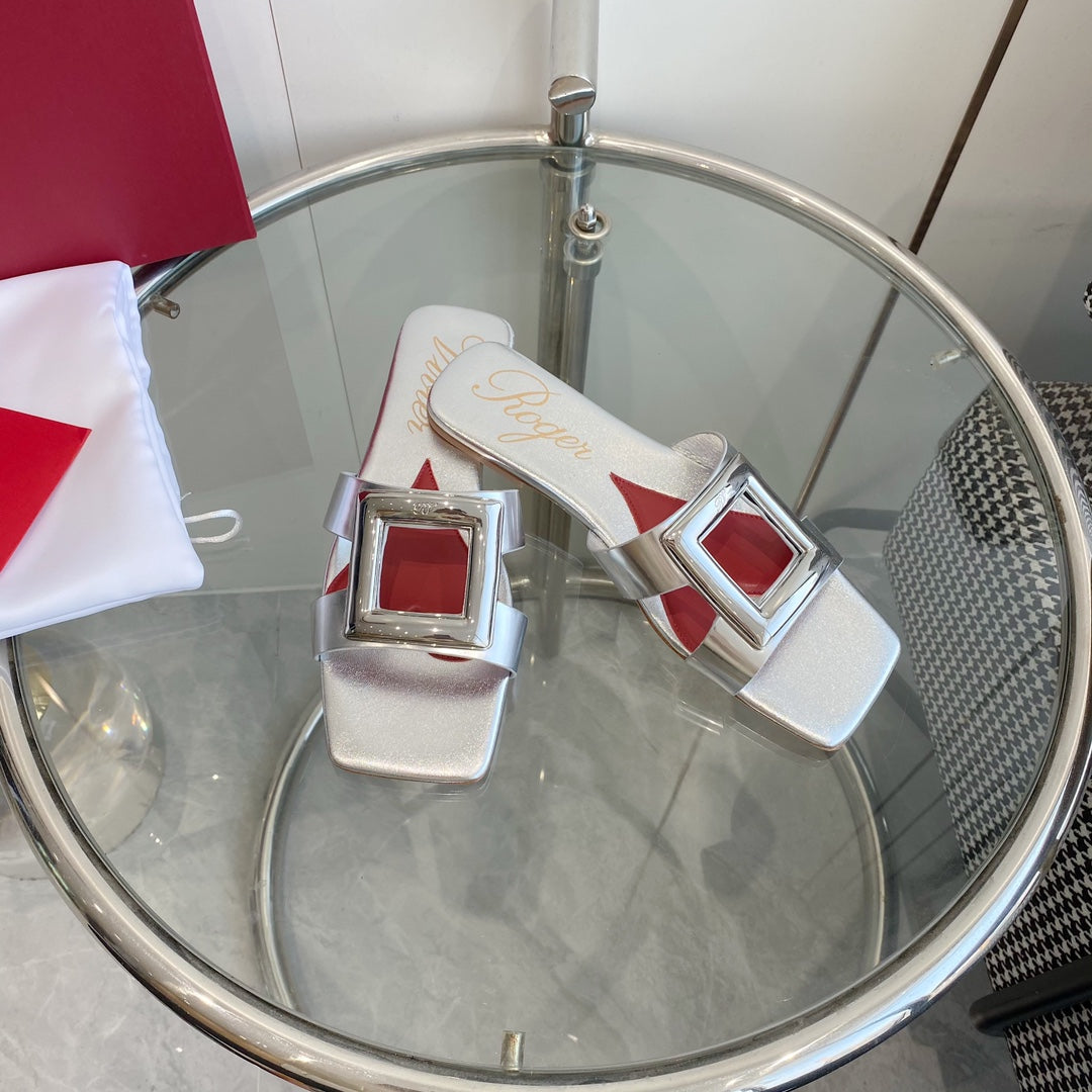 Viv Love Heart Slippers Silver Fetal Cowhide 255202