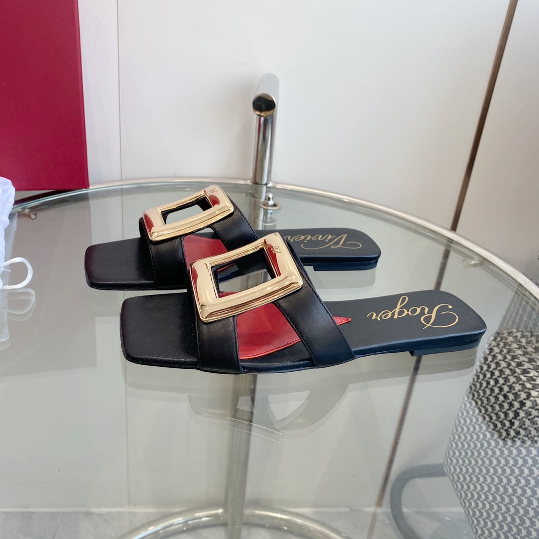 Viv 25 Jewel Flats Black Imported Cowhide 241905