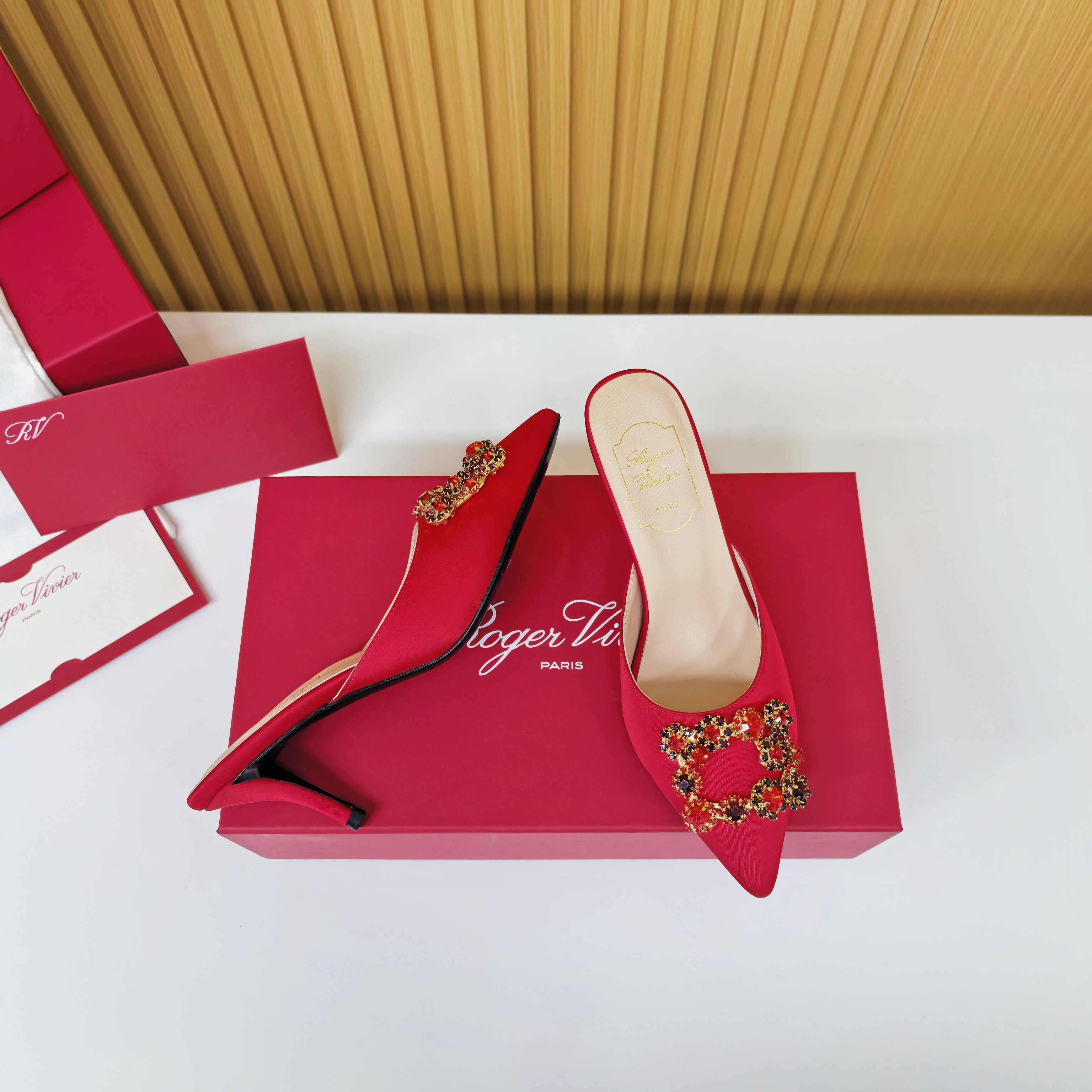 Viv Diamond Mules Red Silk 247391