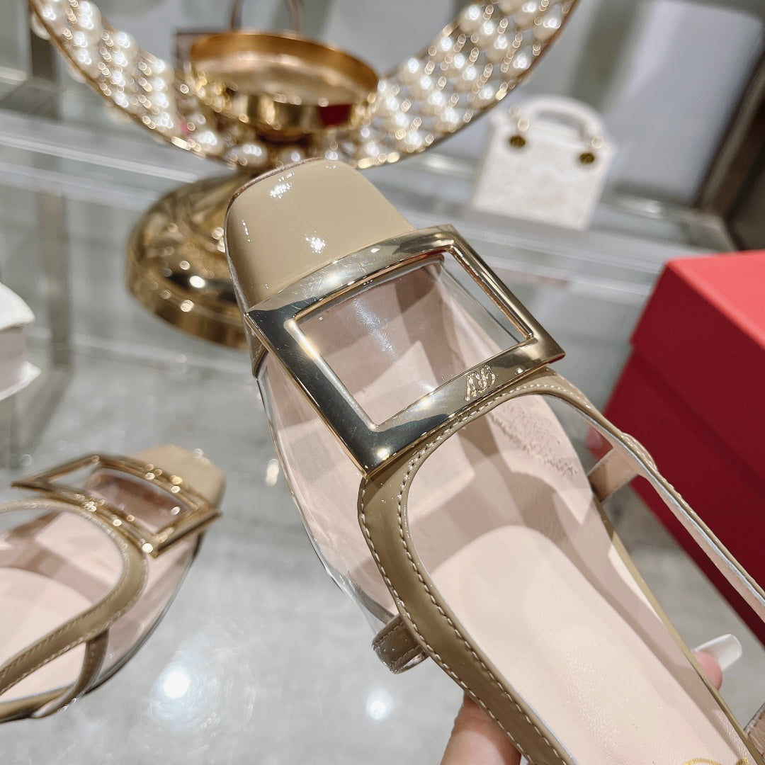 Belle Viv Metal Buckle Slingback Pumps 45 Transparent Camel Patent Leather