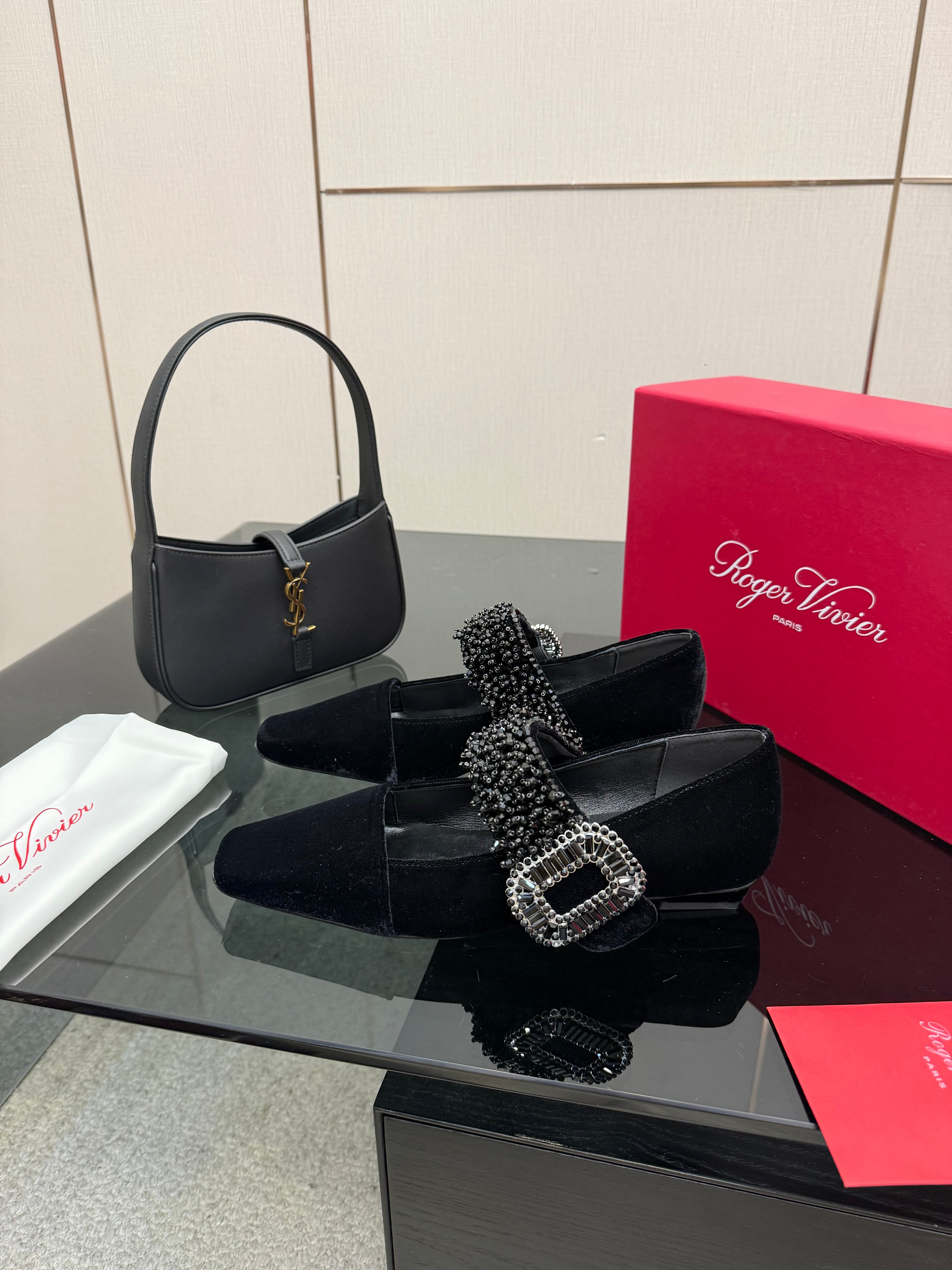 RV Belle Vivier Mary Janes Black Velvet 629888