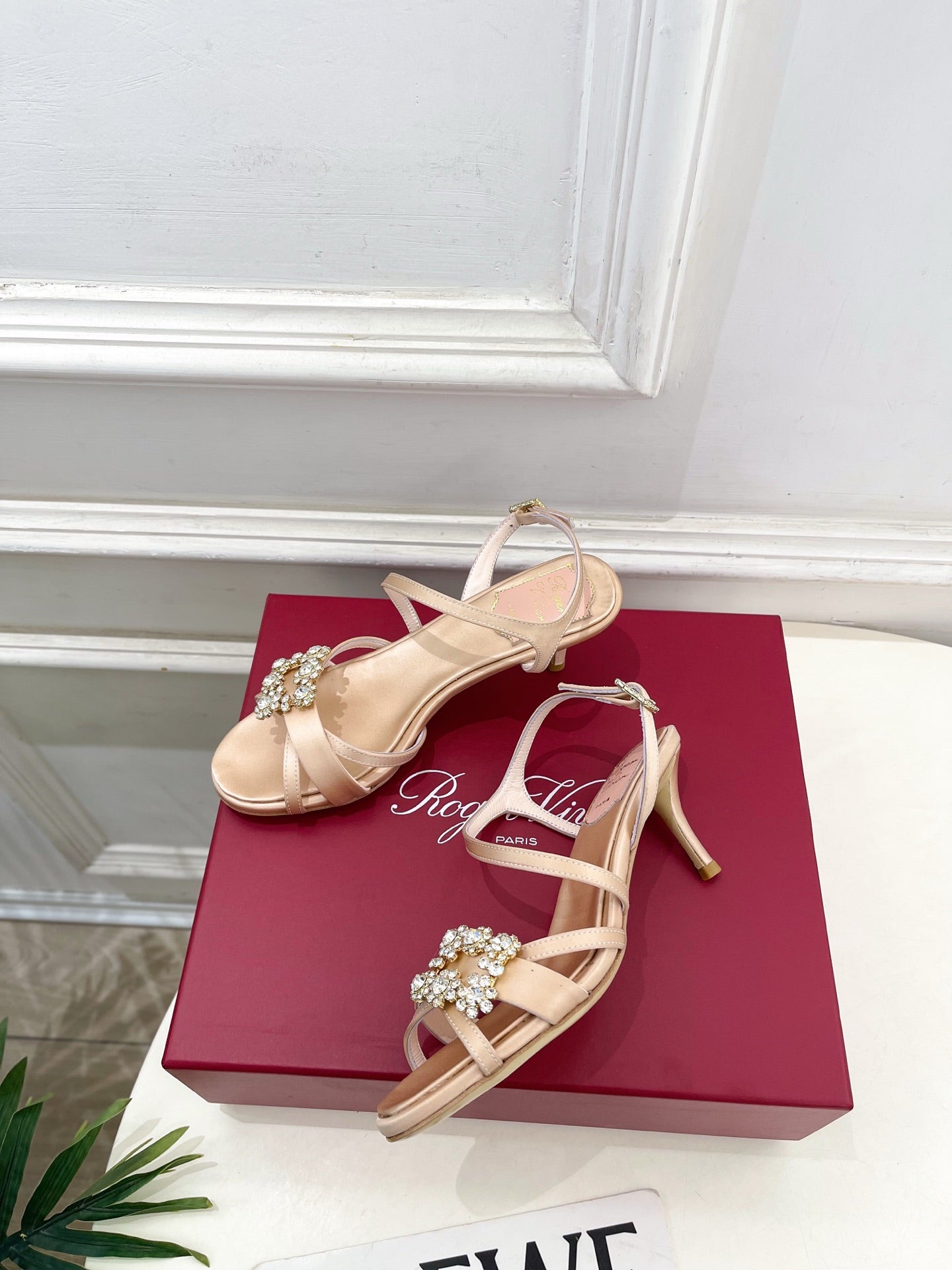 RV Efflorescence Sandals 6.5cm Beige Satin 631973