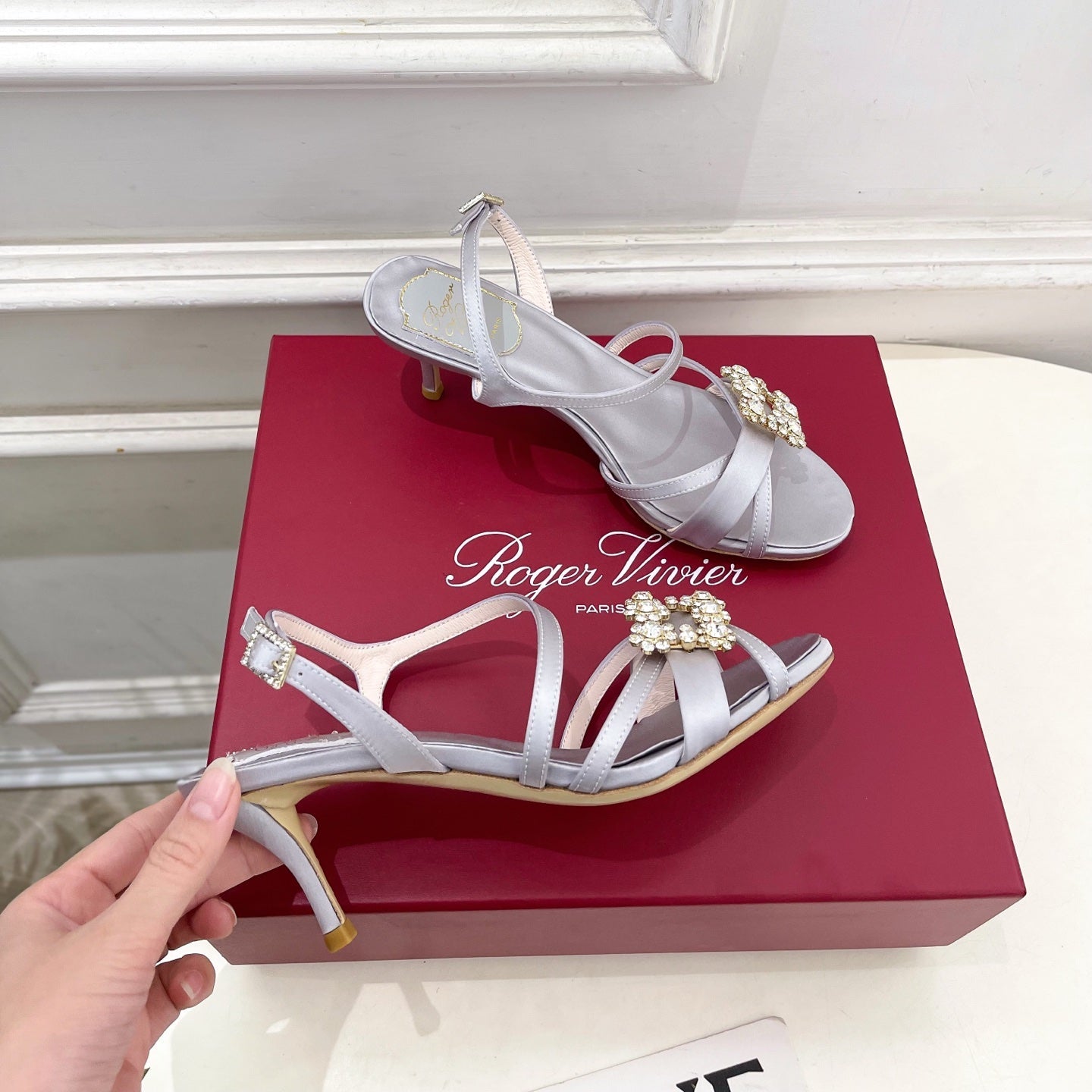 RV Efflorescence Sandals 6.5cm Light Blue Satin 631972