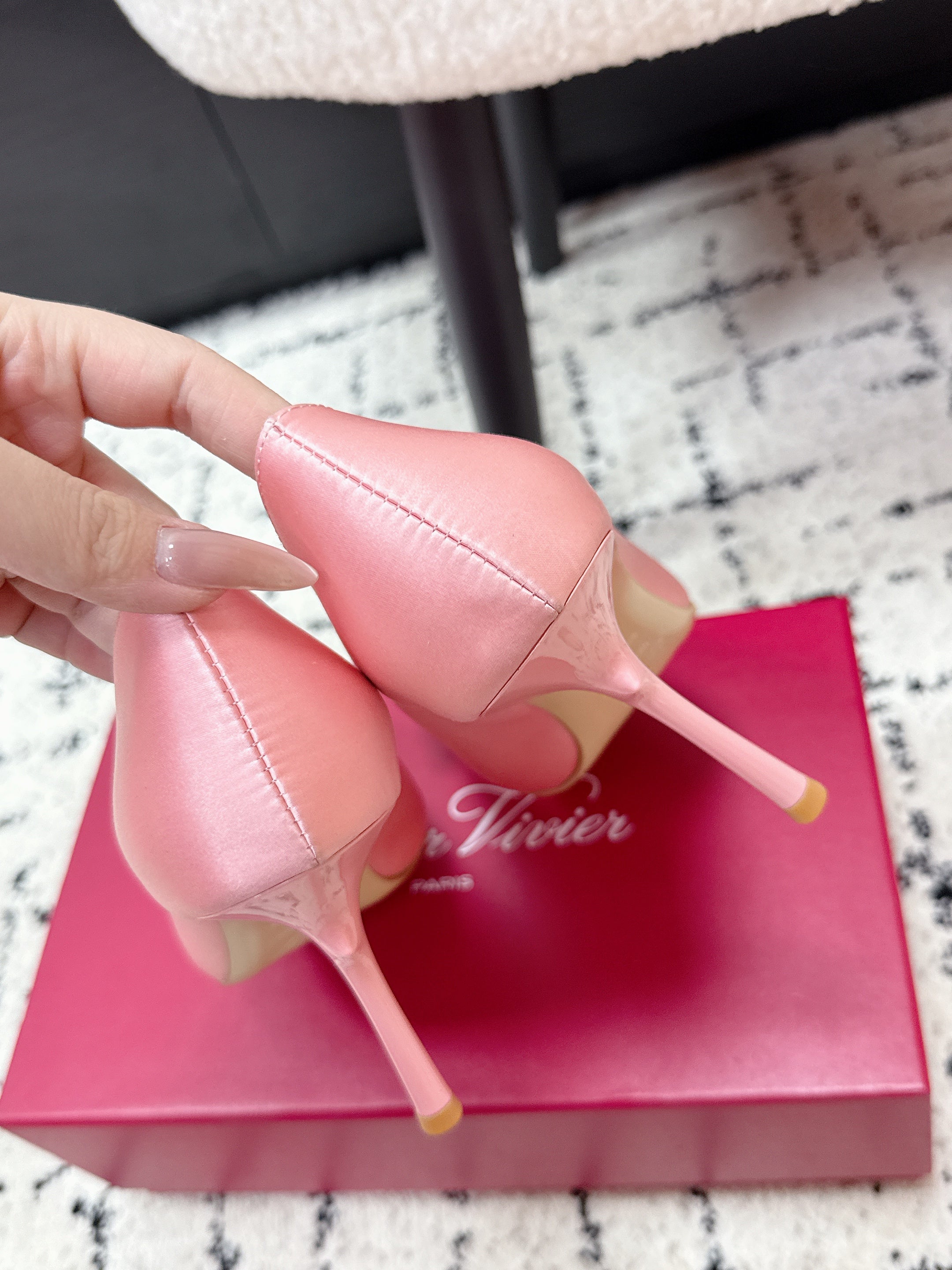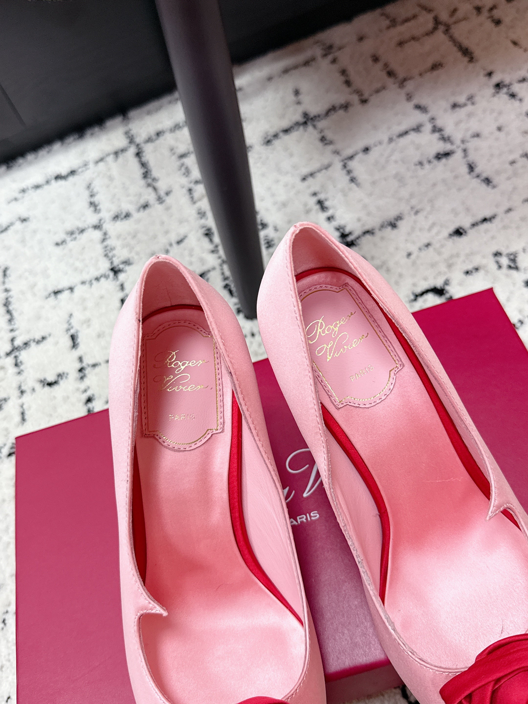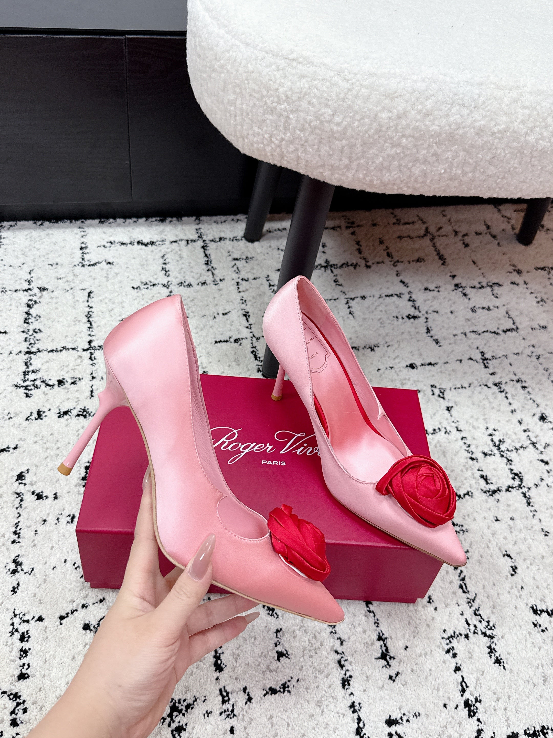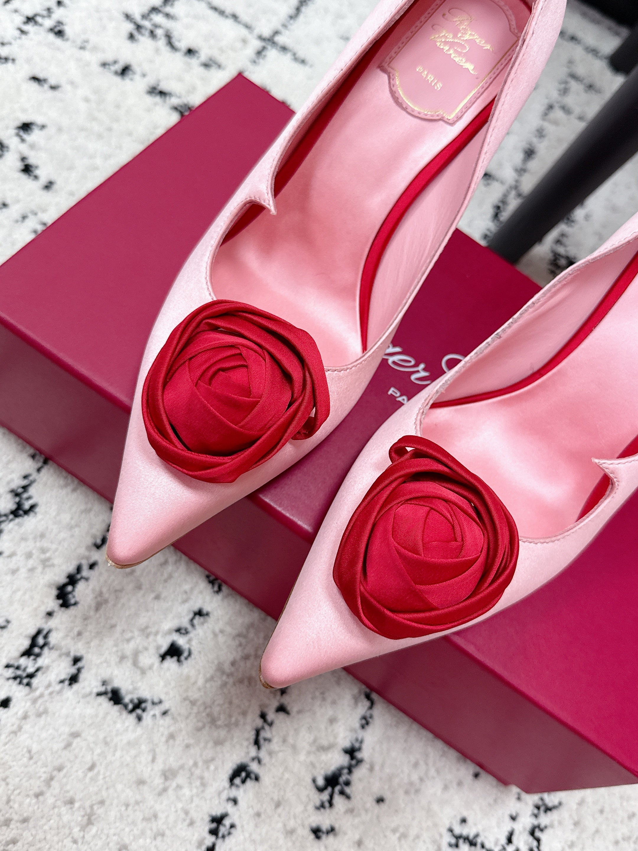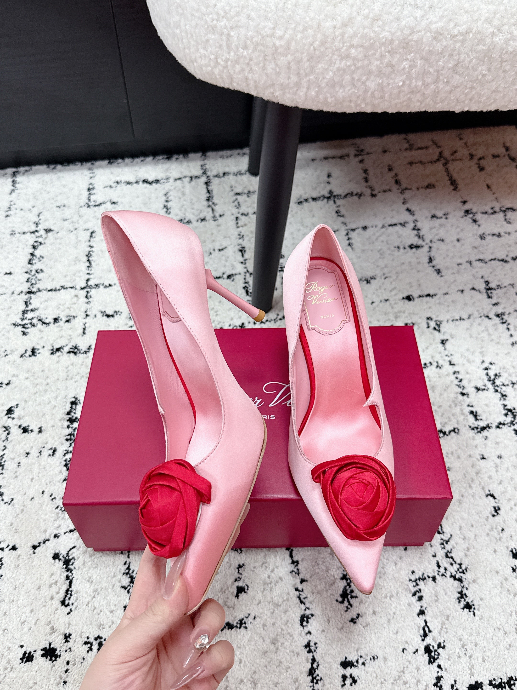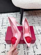 RV Rose Vivier Flower Pumps 10cm Pink Red Satin 617294