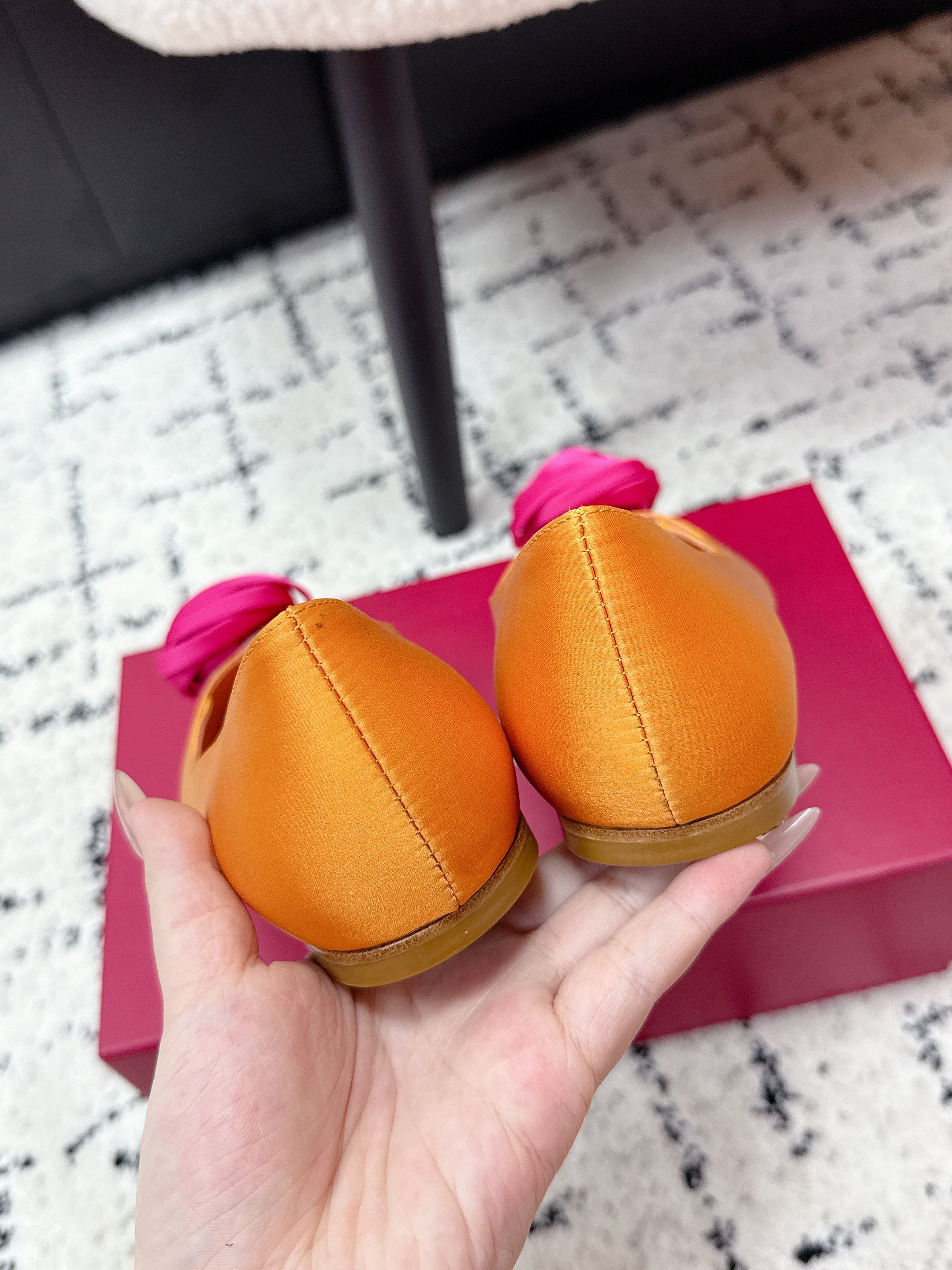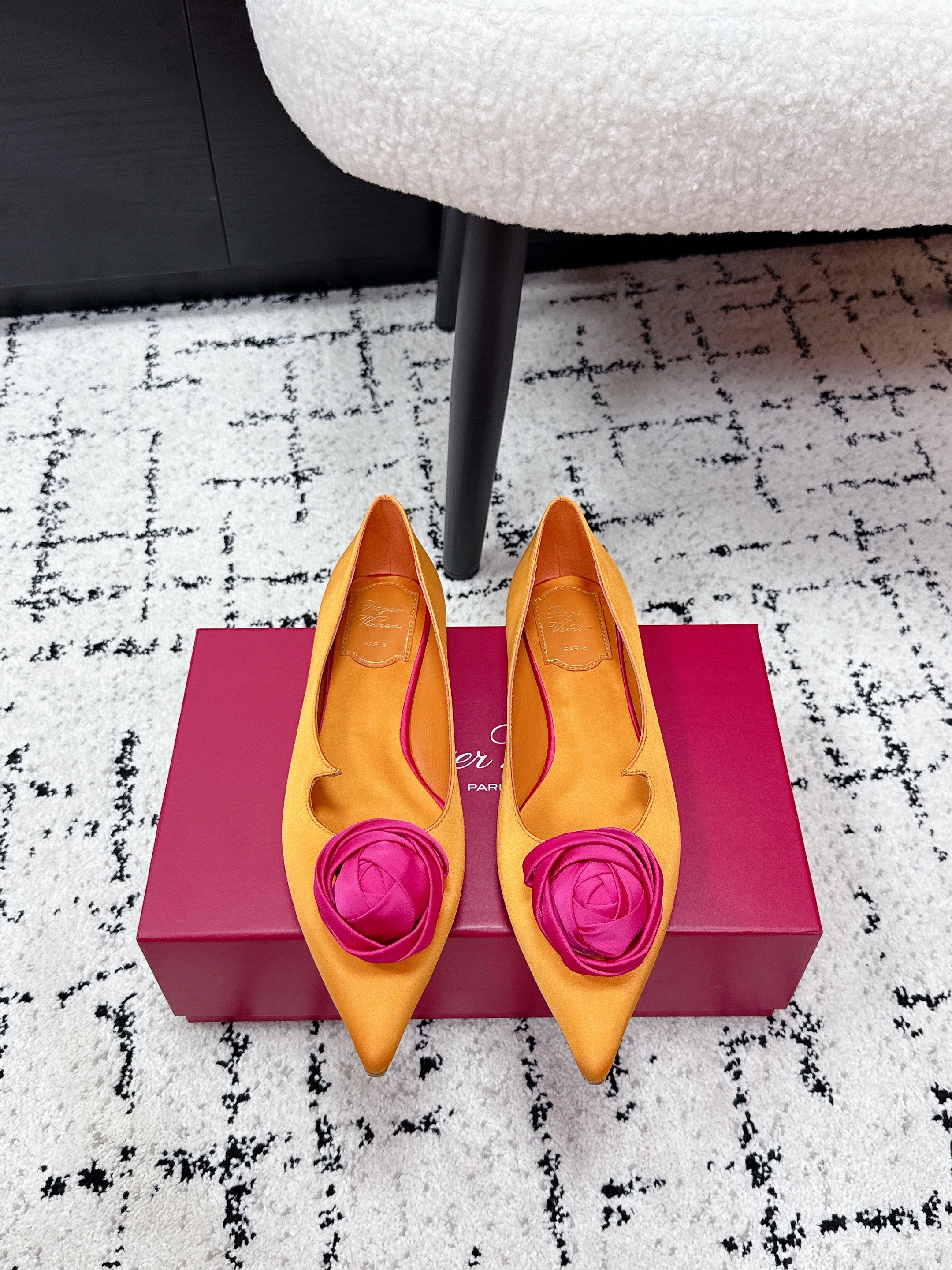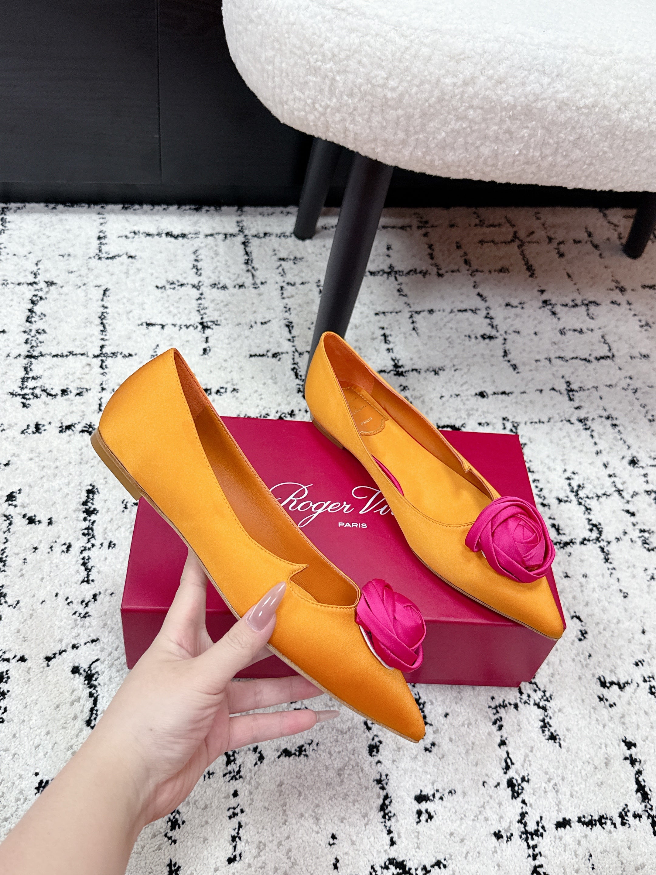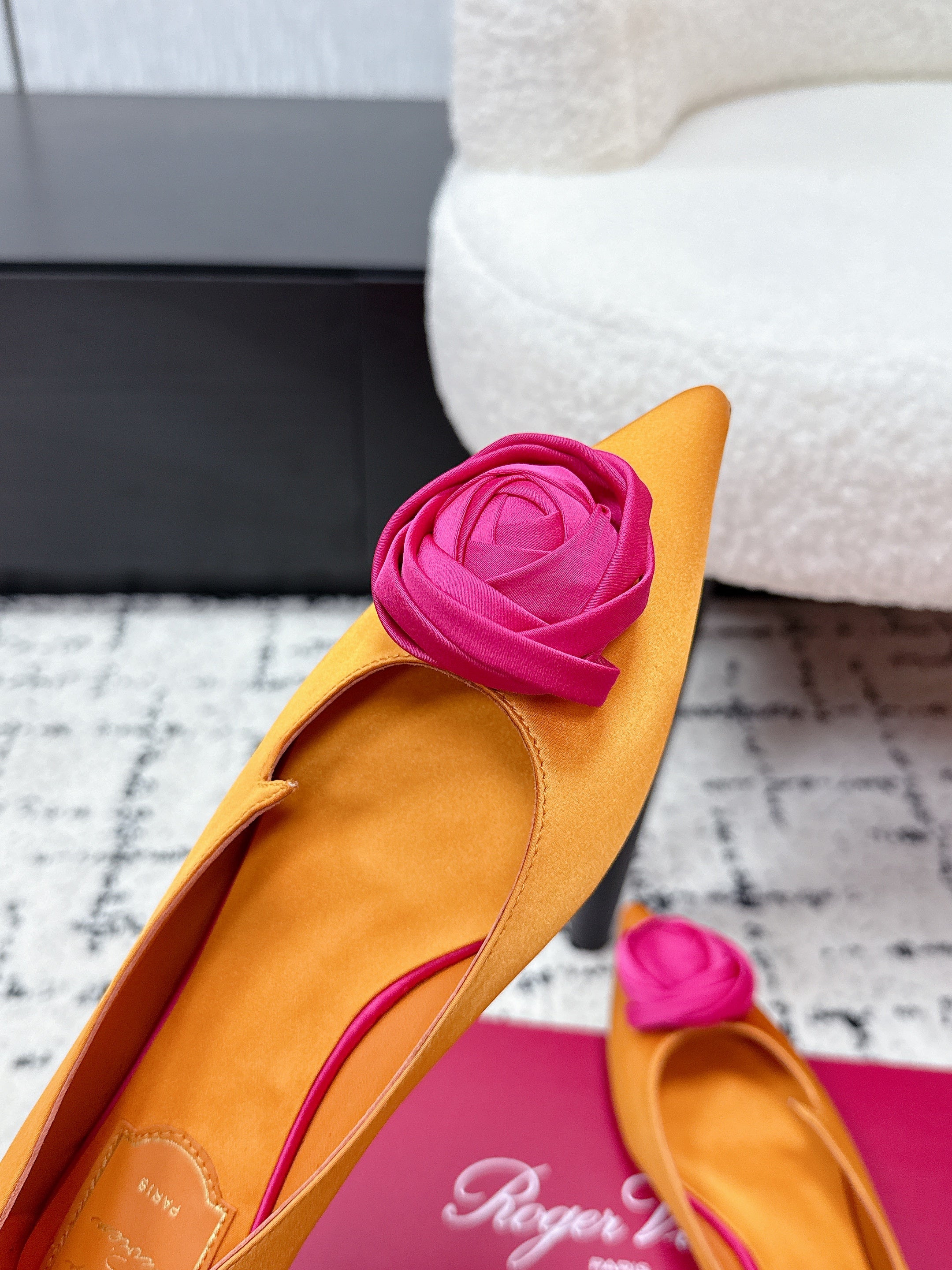 RV Rose Vivier Flower Slingback Flat Orange Pink Satin 617290