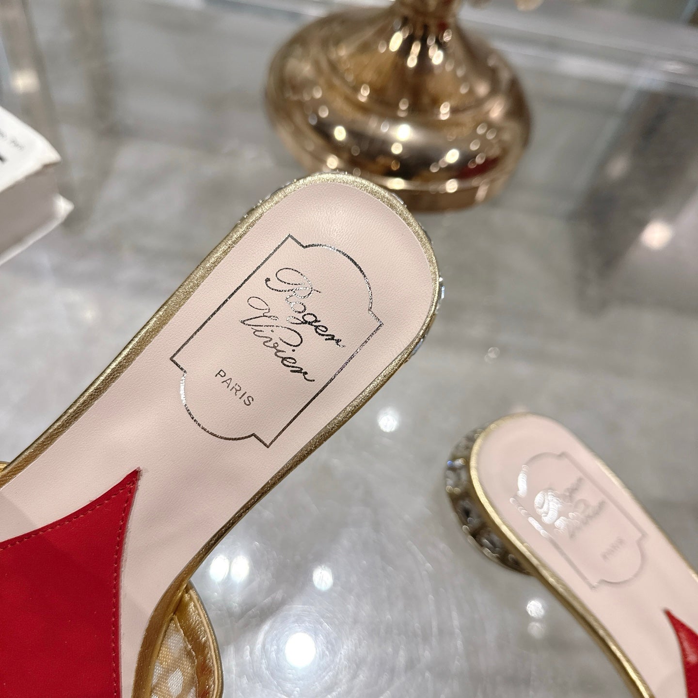 Viv 25 Hollow Square Buckle Slippers Gold Weaving Leather 263001