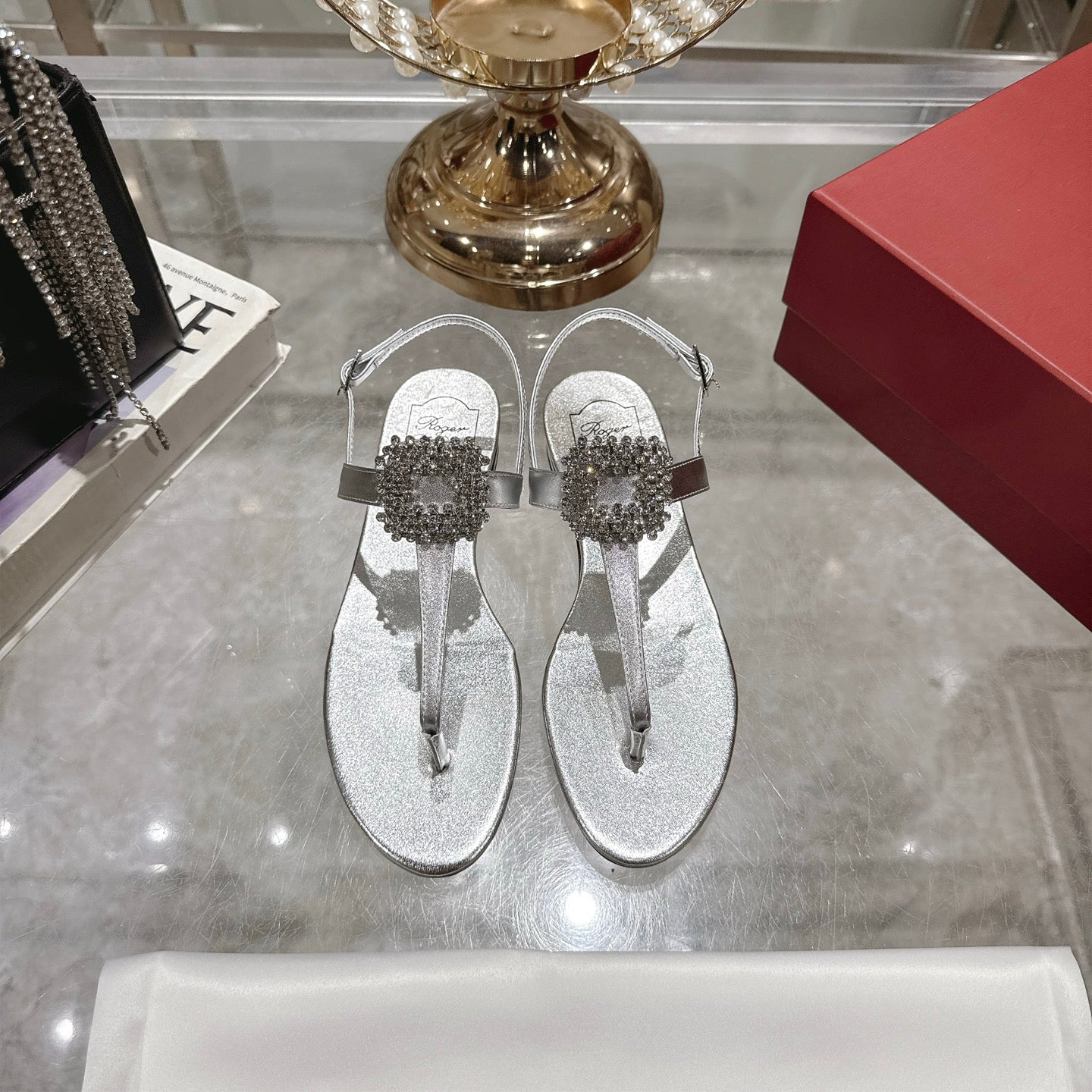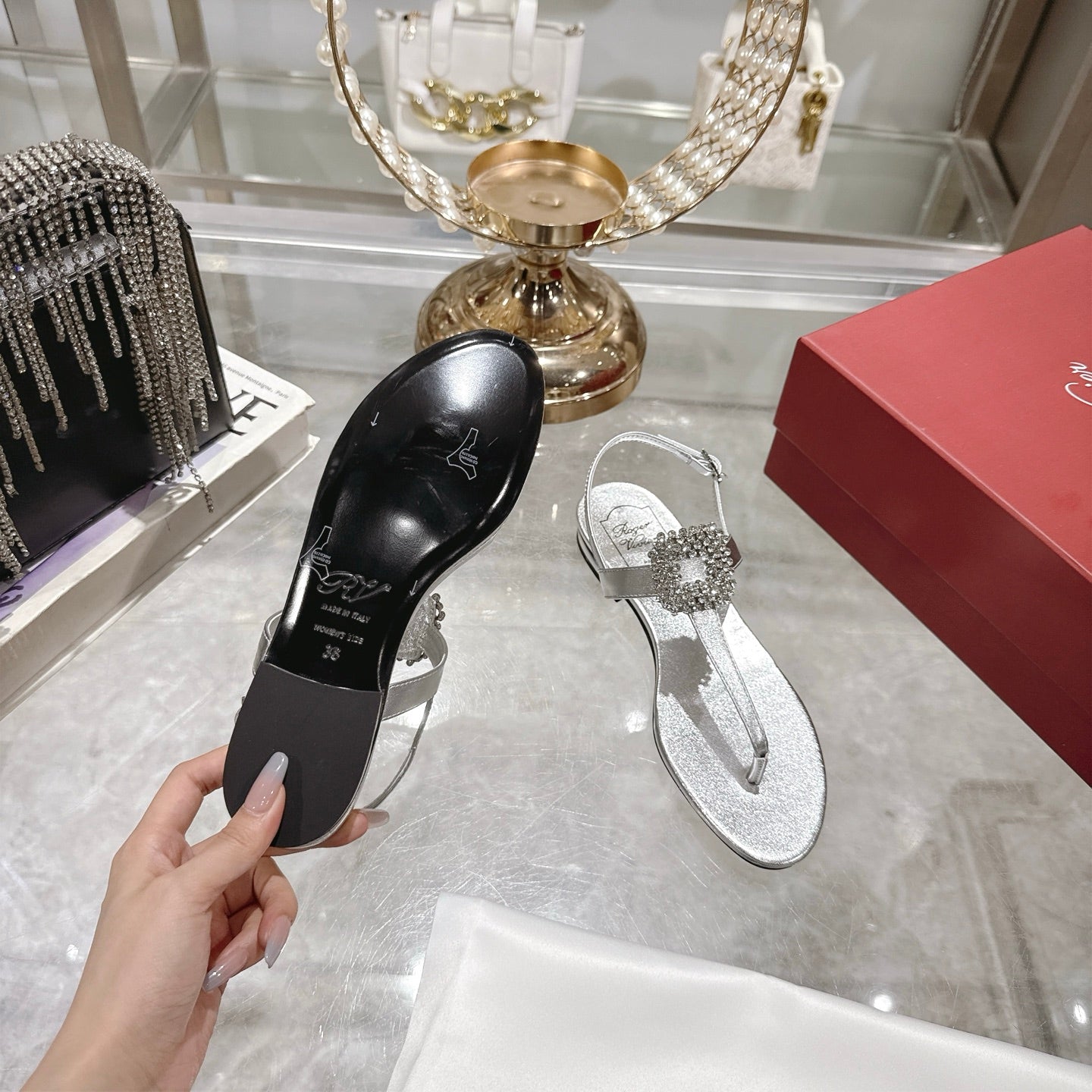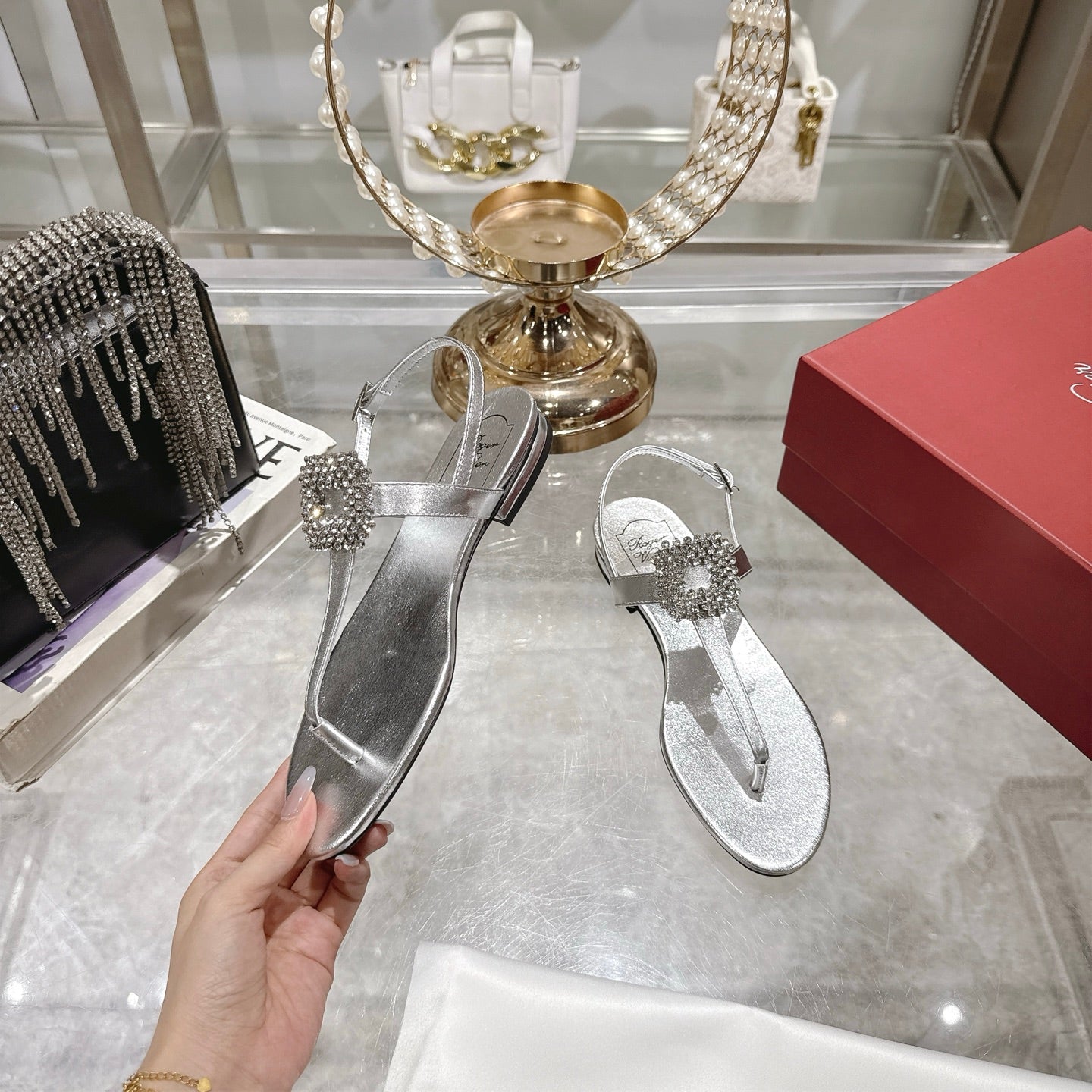 Viv 25 Thong Sandals Silver Cowhide 334692