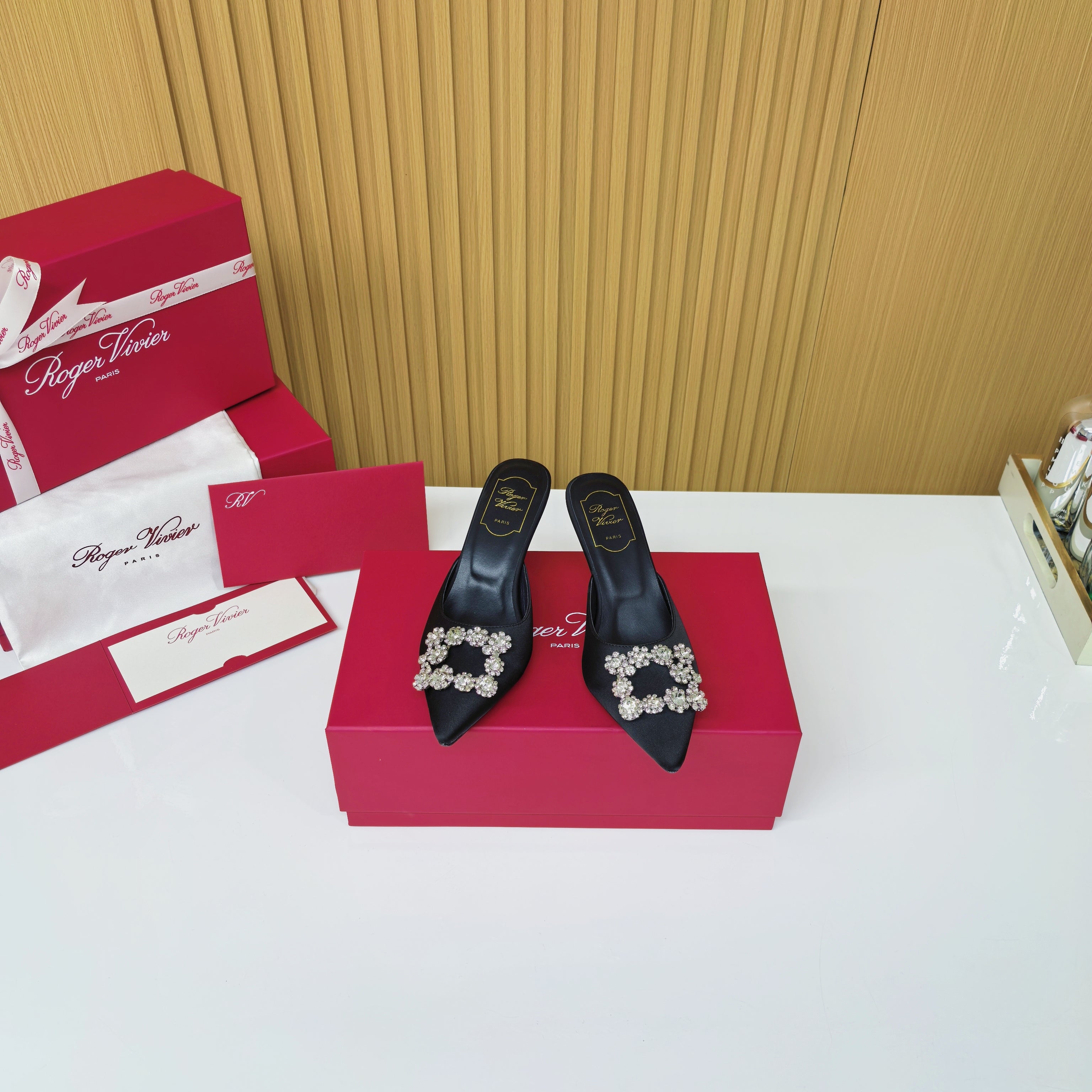 Viv Diamond Mules Black Silk 247394