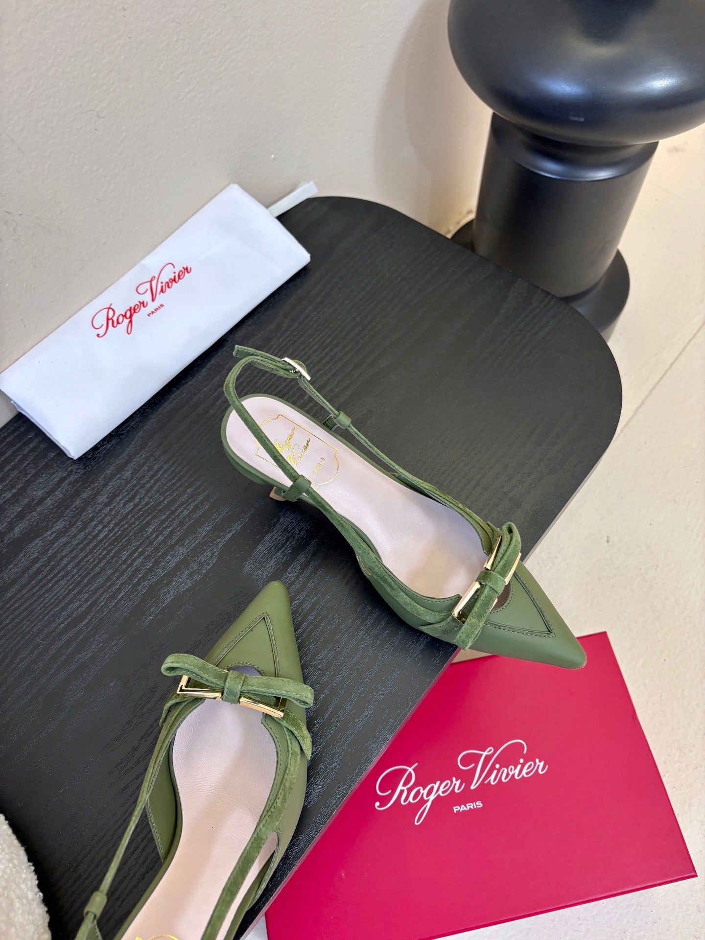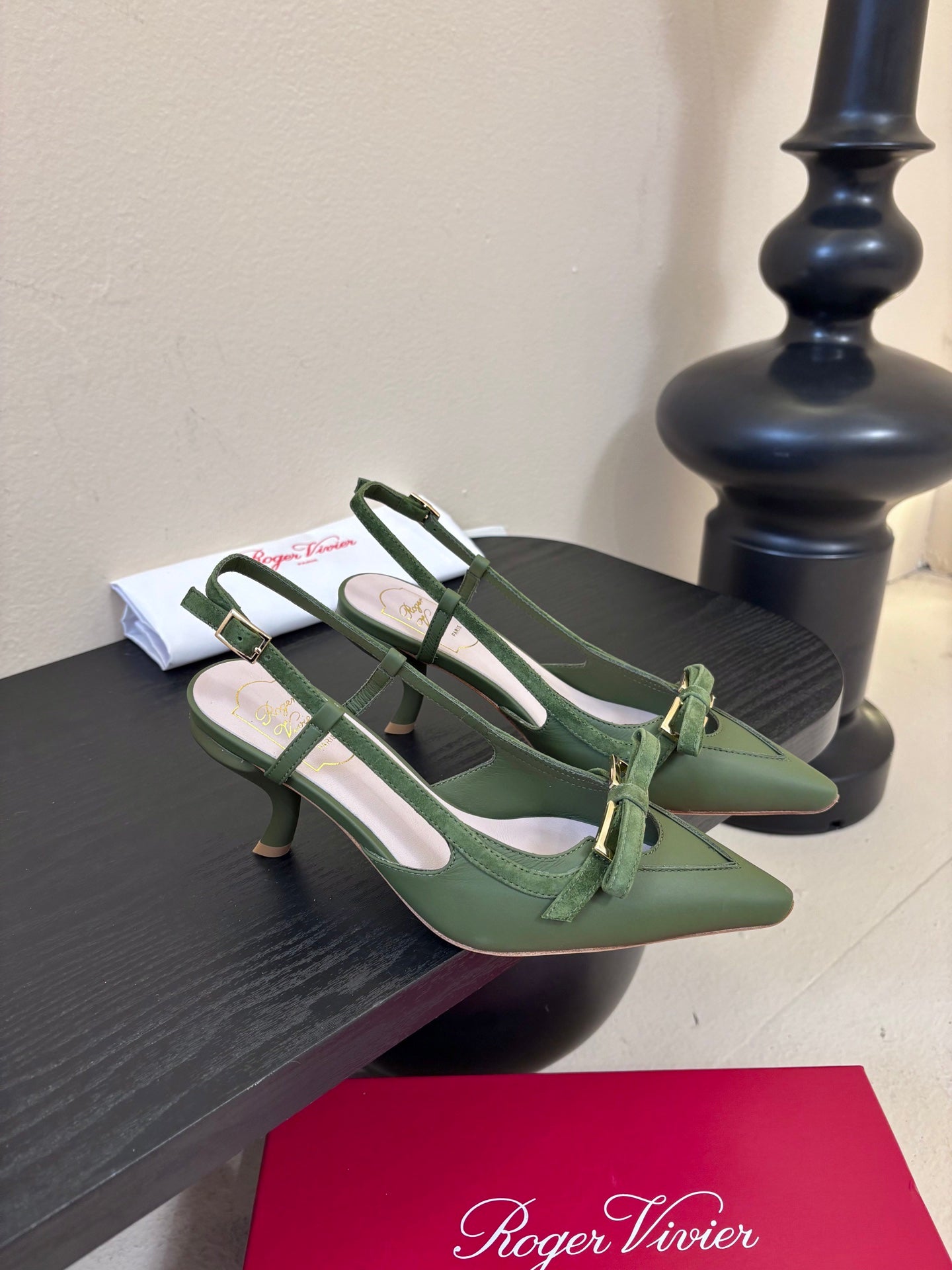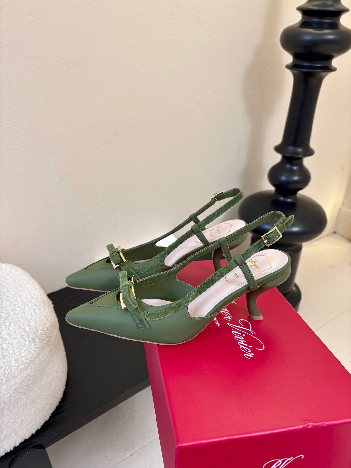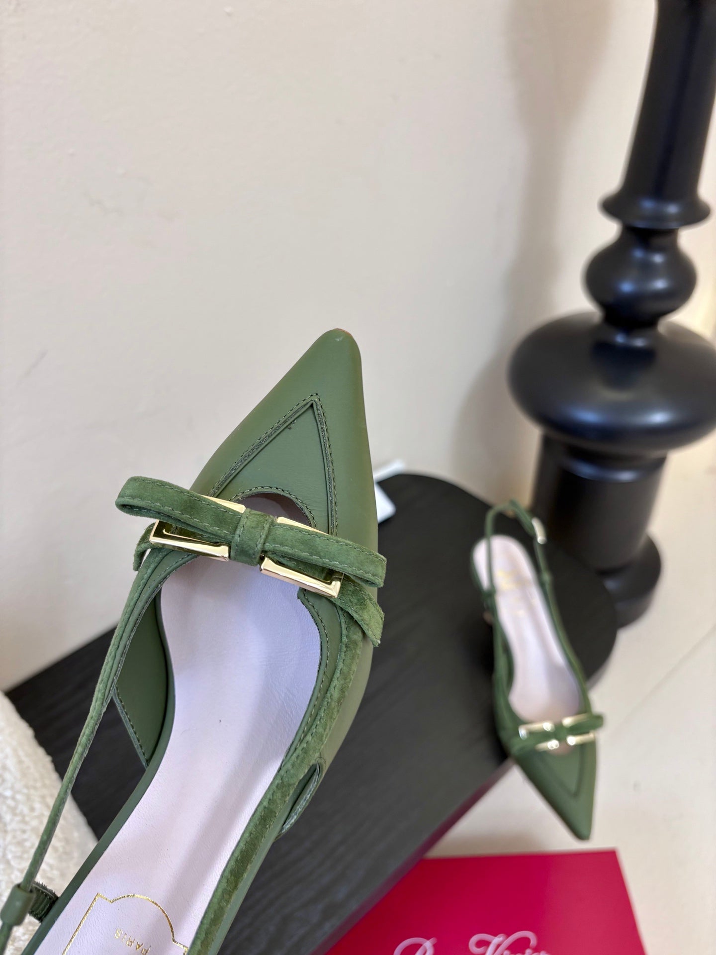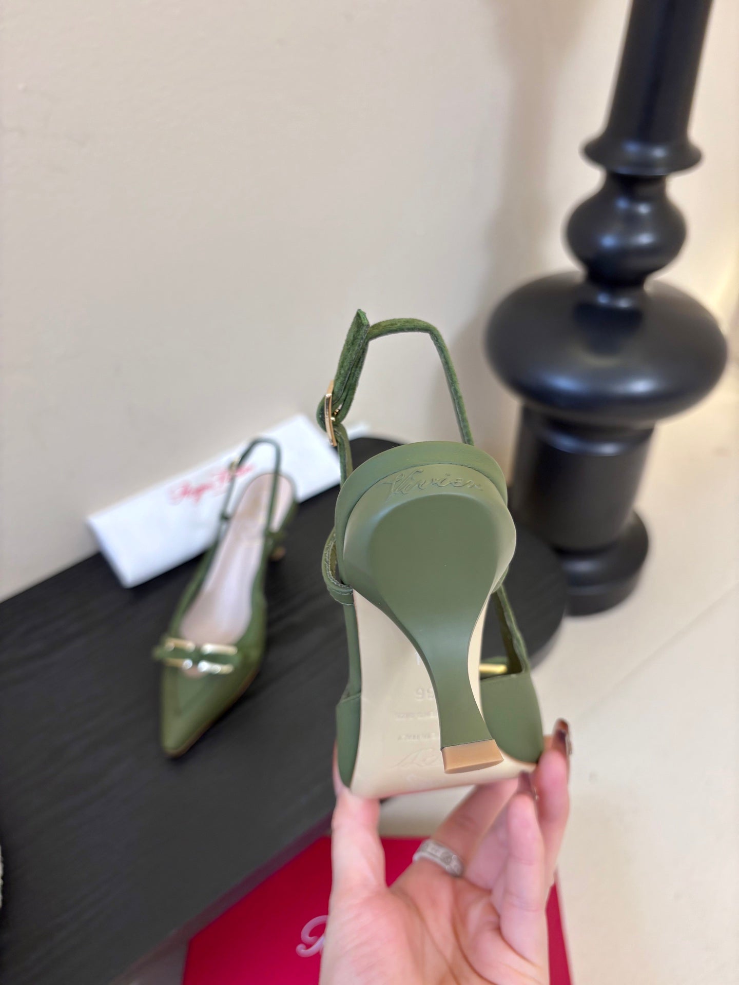 Virgule Slingback Pumps 7.5cm Olive Green Cowhide 606401