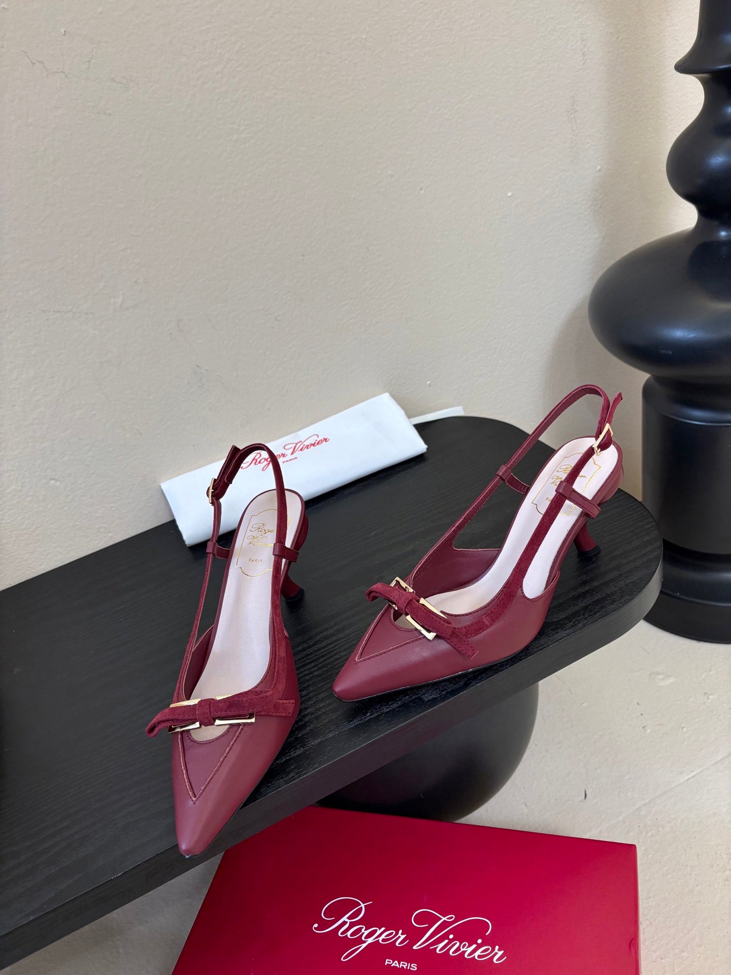 Virgule Slingback Pumps 7.5cm Burgundy Cowhide 606403