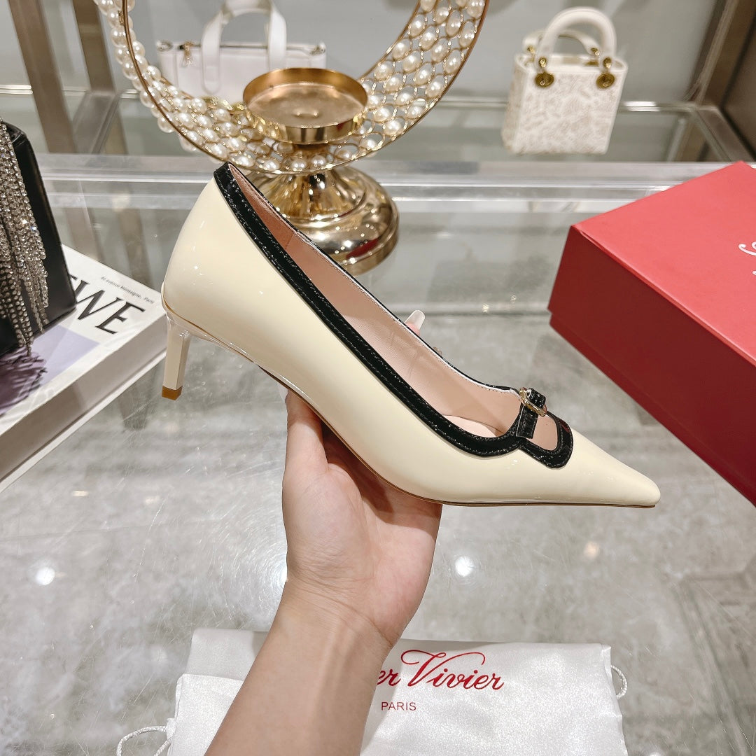 Mary Jane Virgule Pumps 55 Black White Patent Leather