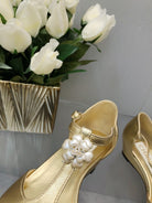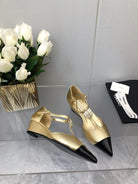 CAMELLIA CAP JANE SANDALS IN GOLD MIX BLACK LAMBSKIN
