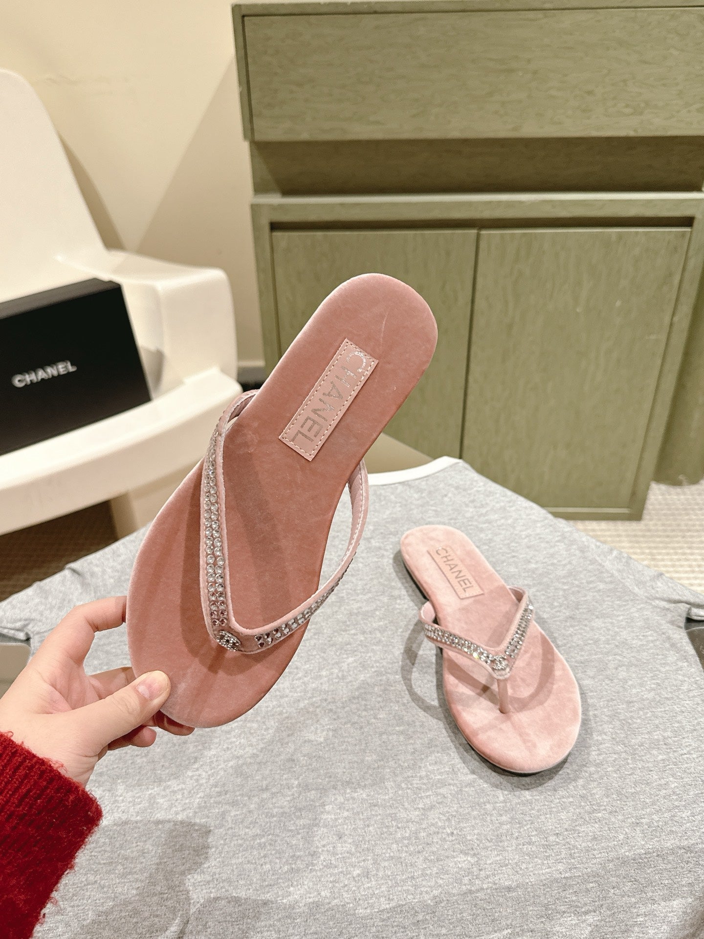 CC 25ss Rhinestone Thong Sandal Pink Velvet 461636