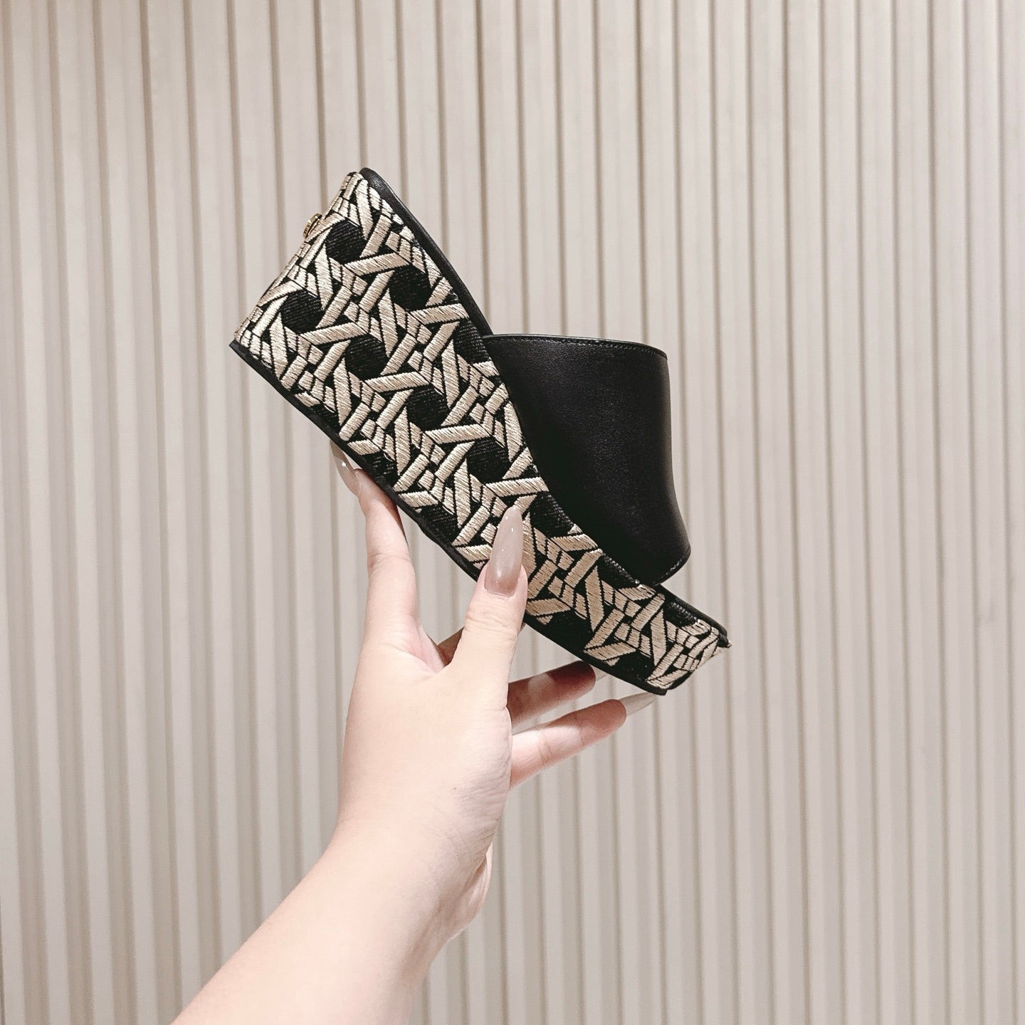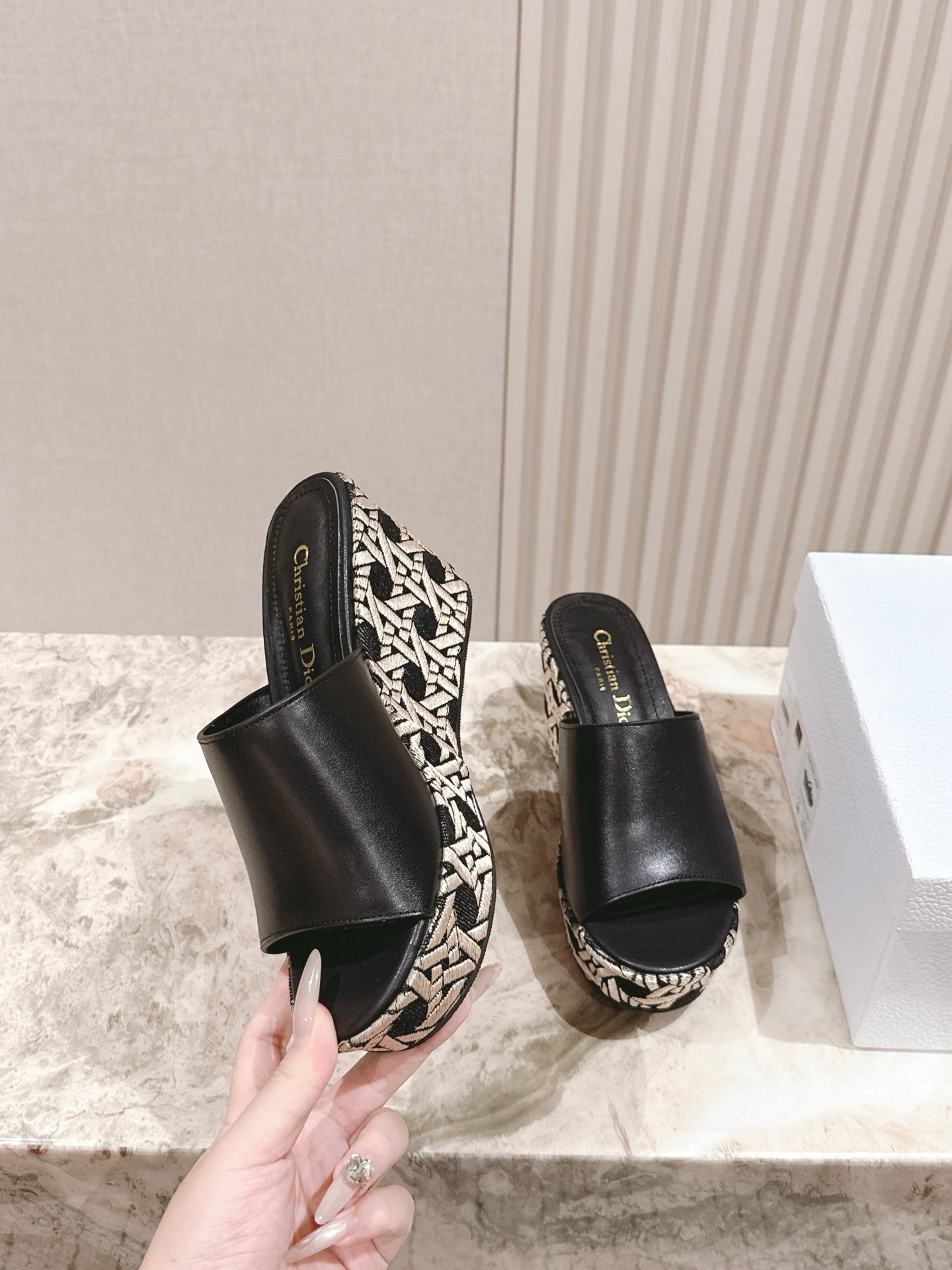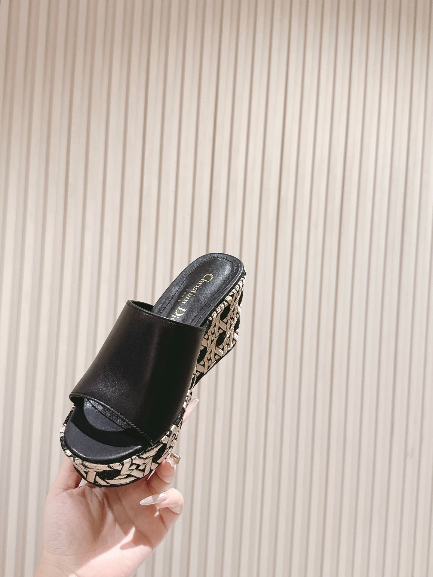 CD Attitude Wedge Slide 85mm Black Calfskin 483085