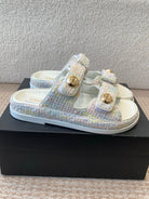 DAD SANDAL IN WHITE FABRIC WITH SEQUINS MULE