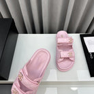 dad sandals pink lambskin mules
