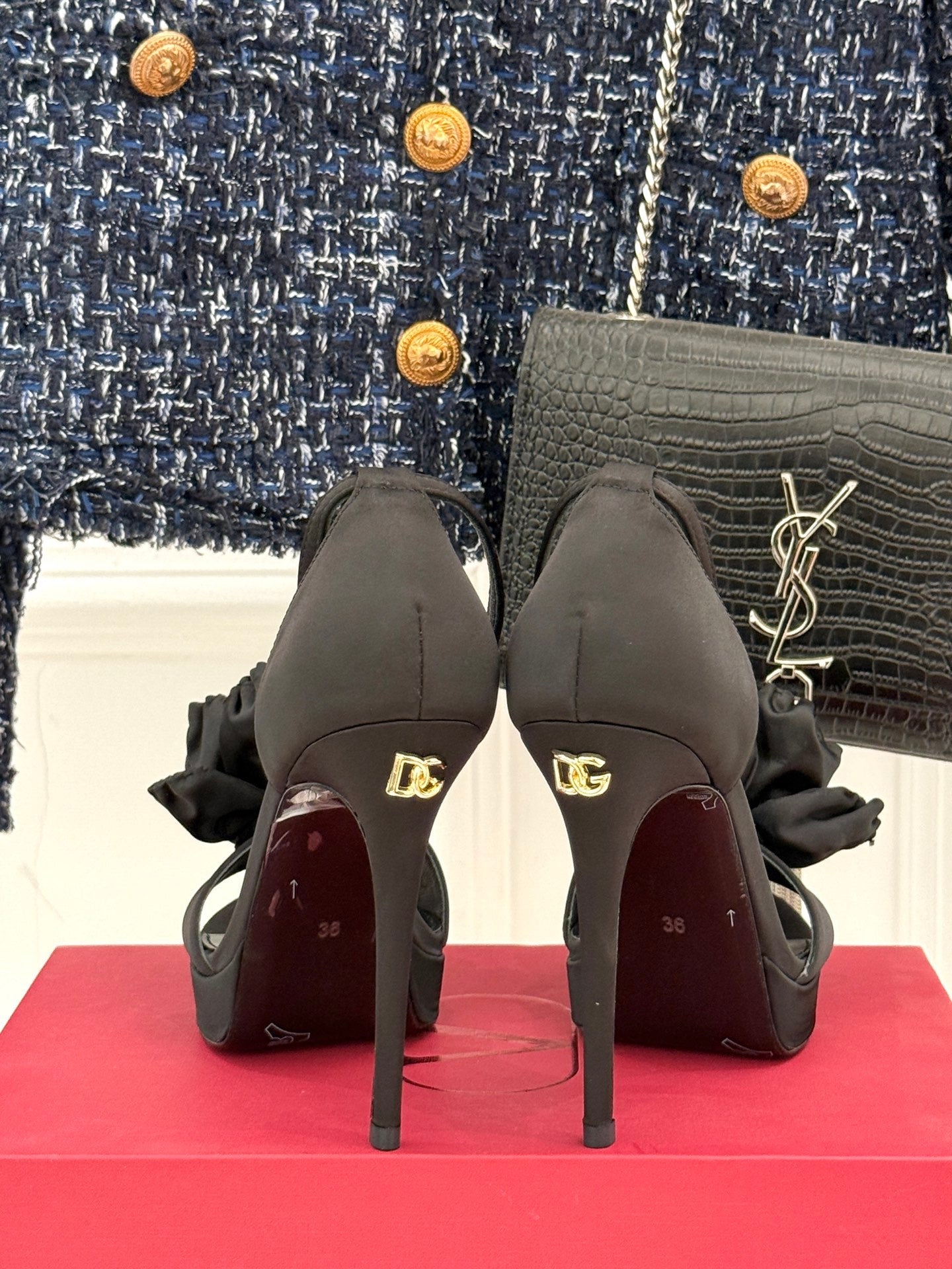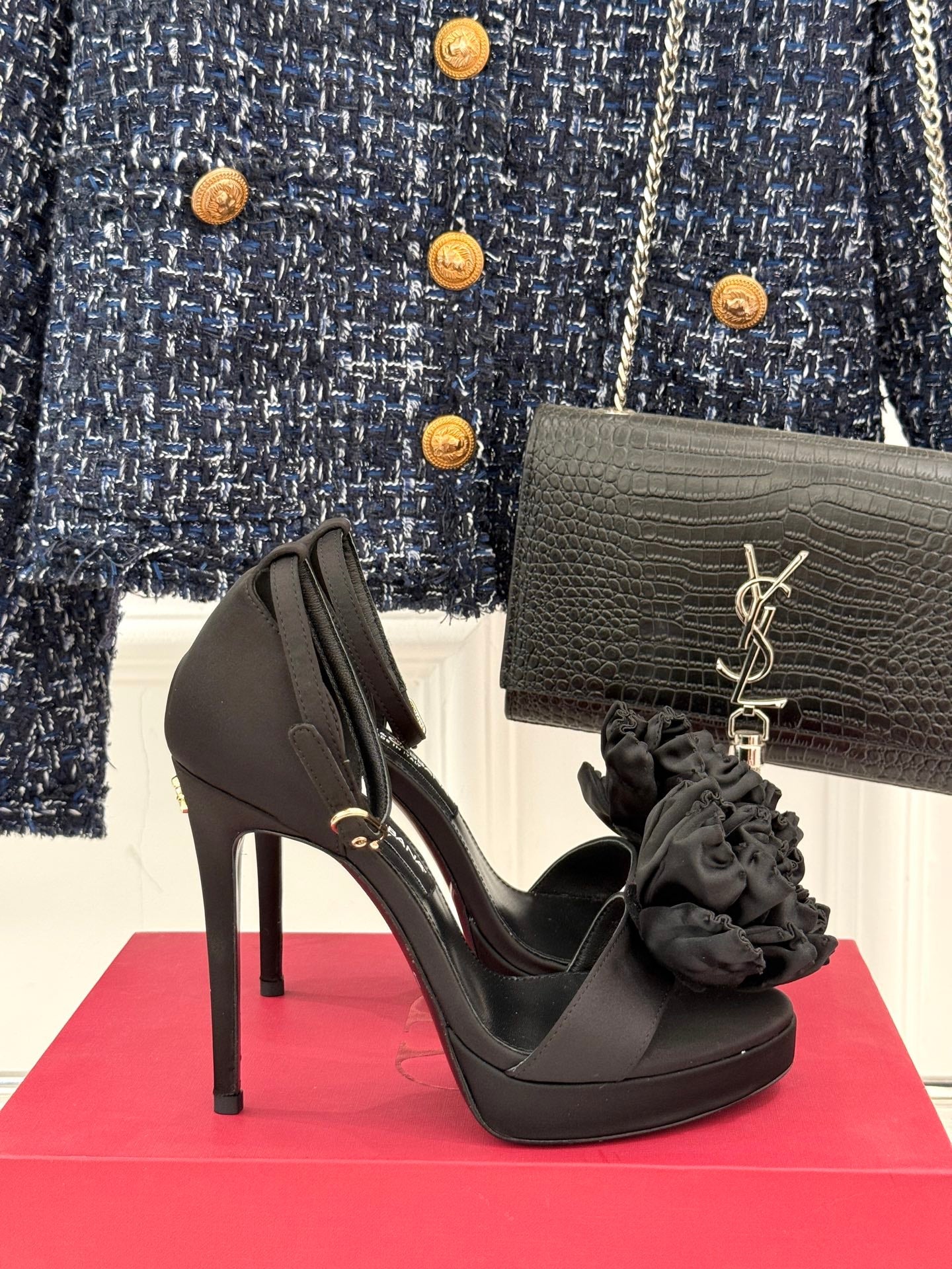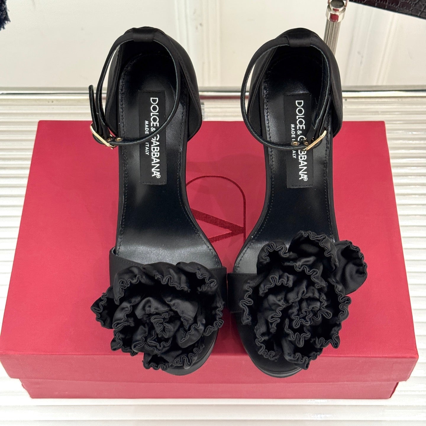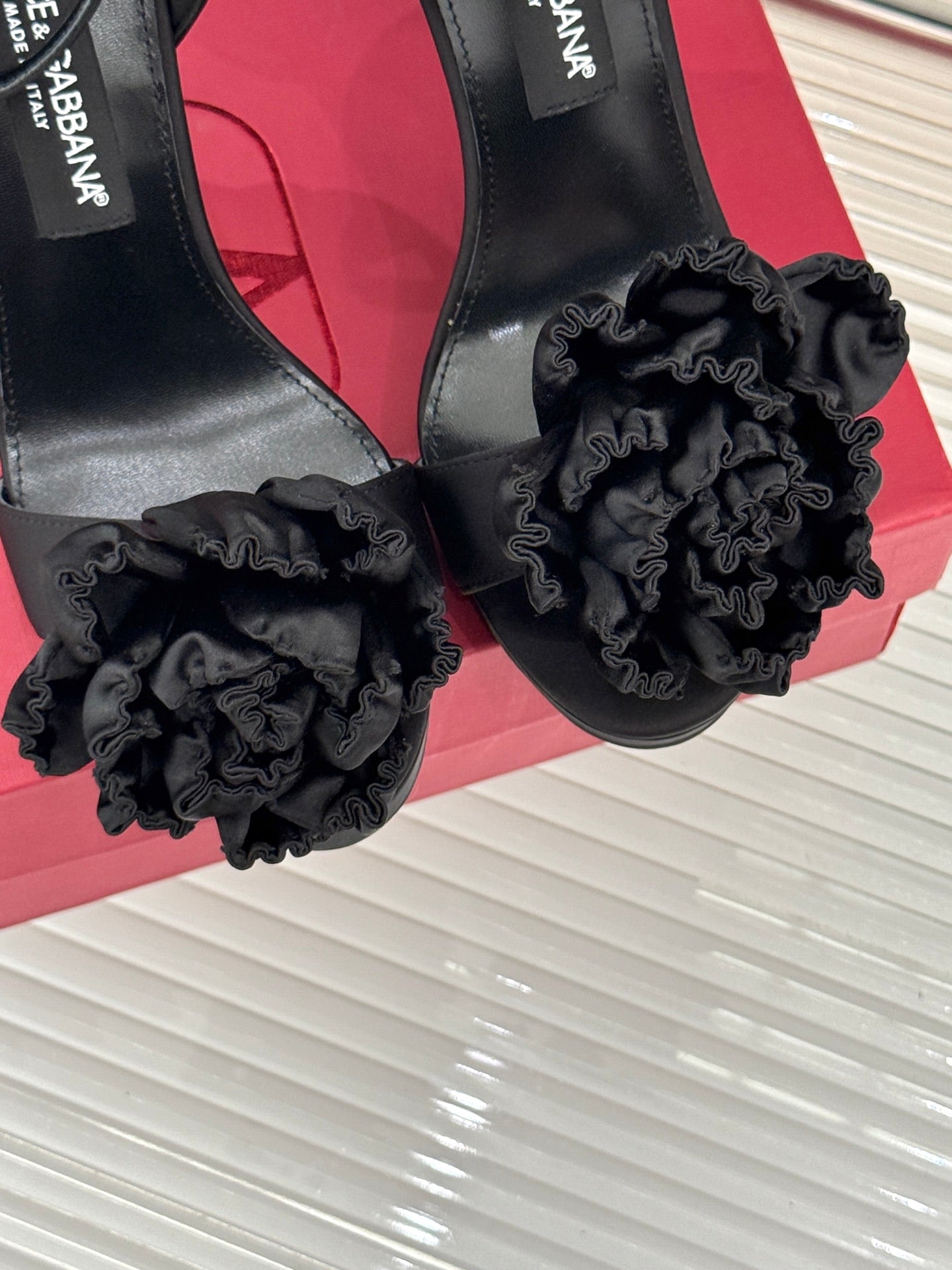 DC 24 Keira Floral-Appliqué Sandals Black Sheepskins & Cowhide 304708