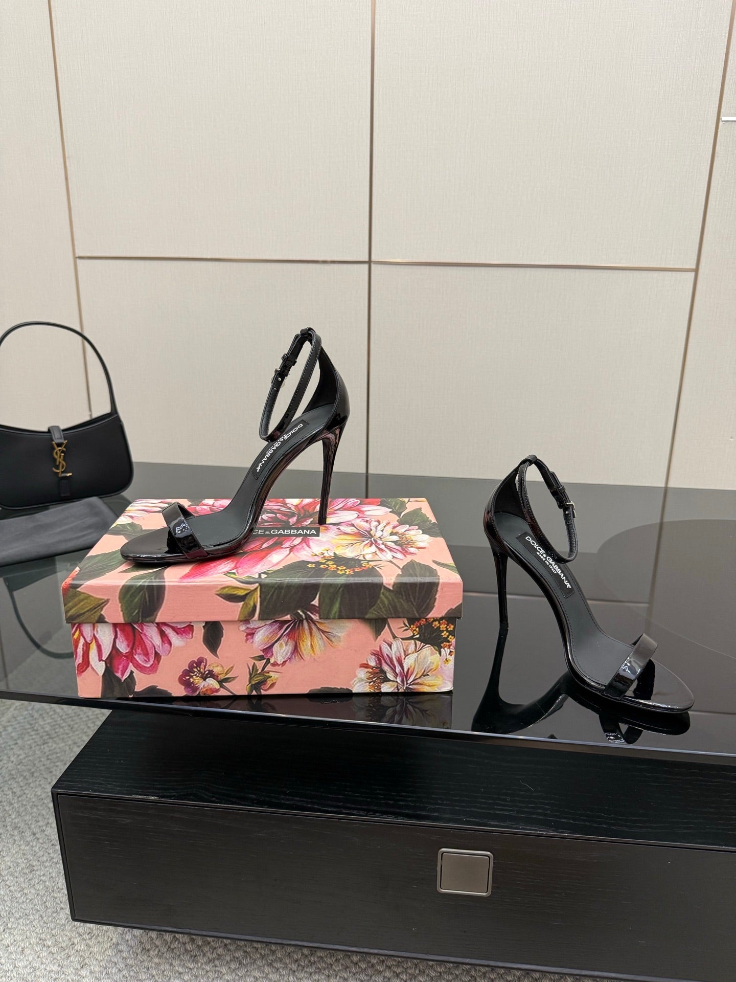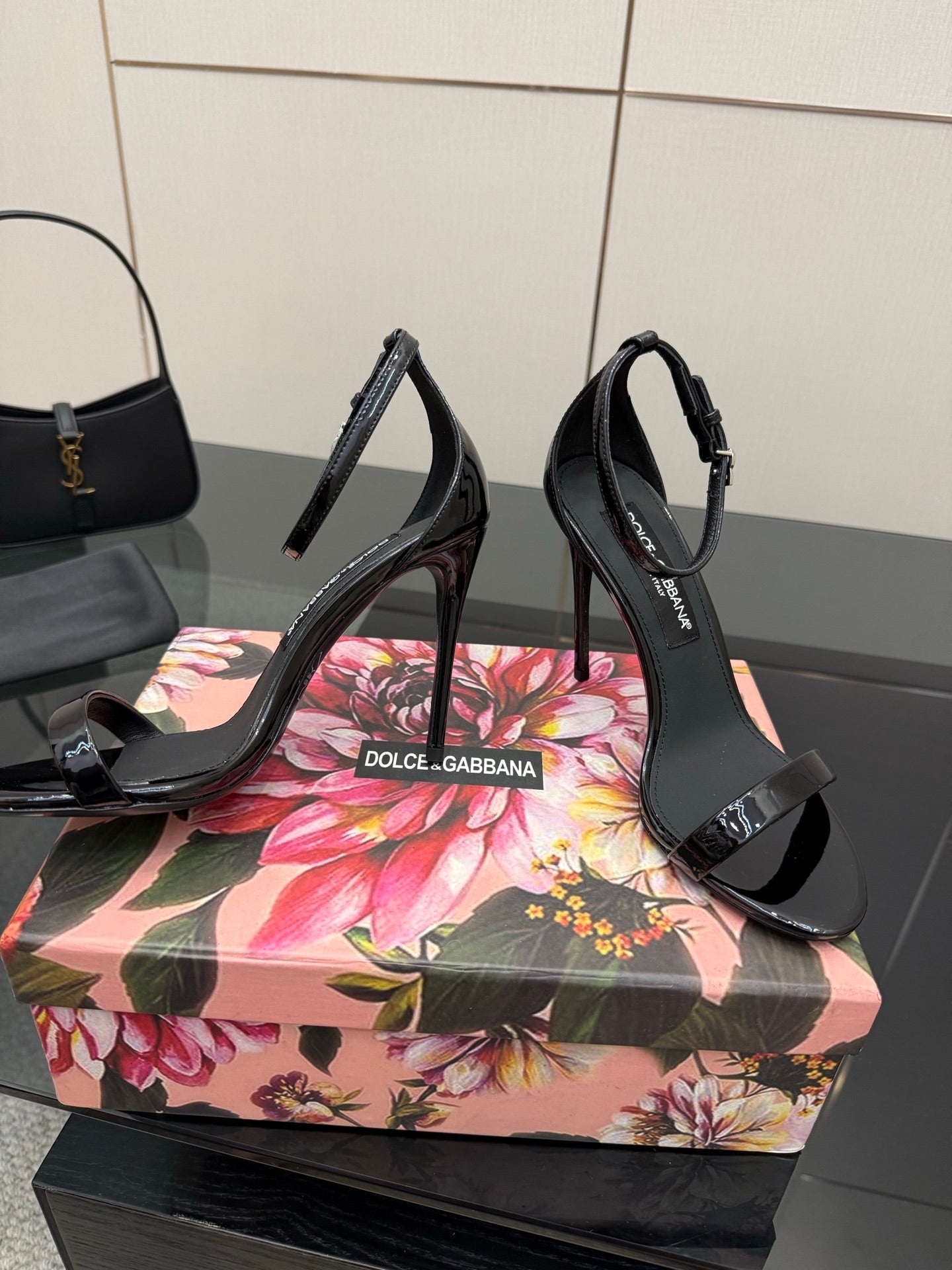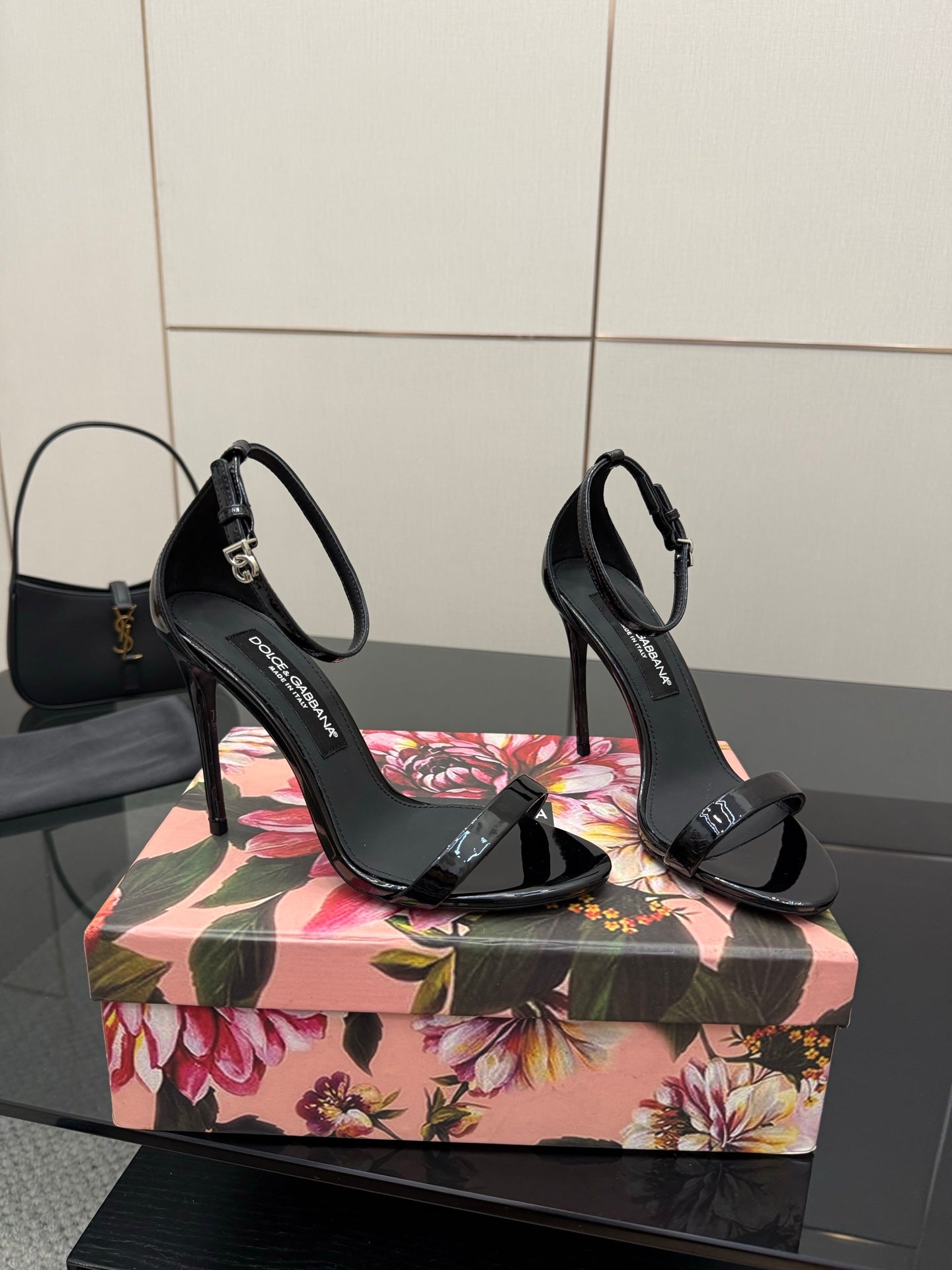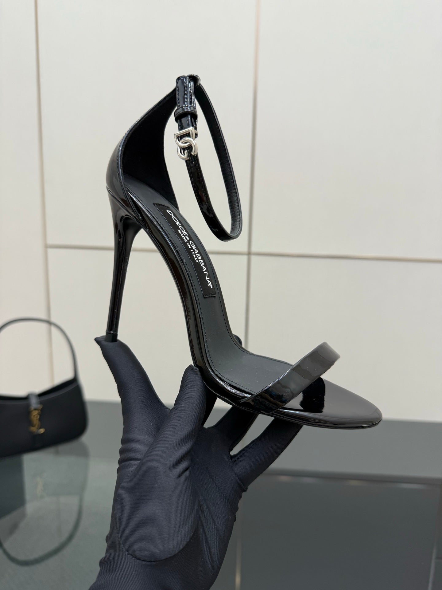 DC 25 Buckled High-Heeled Sandals Black Patent Leather & Sheepskin 326383