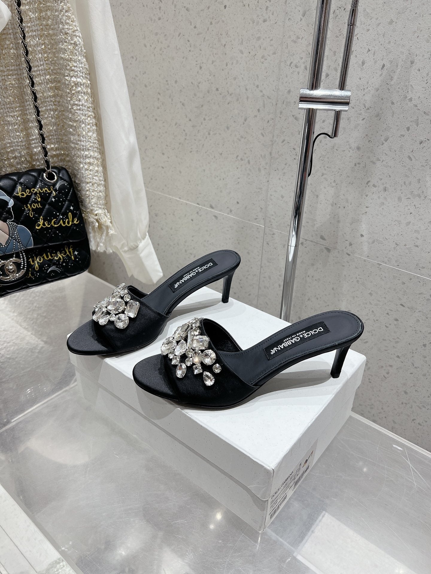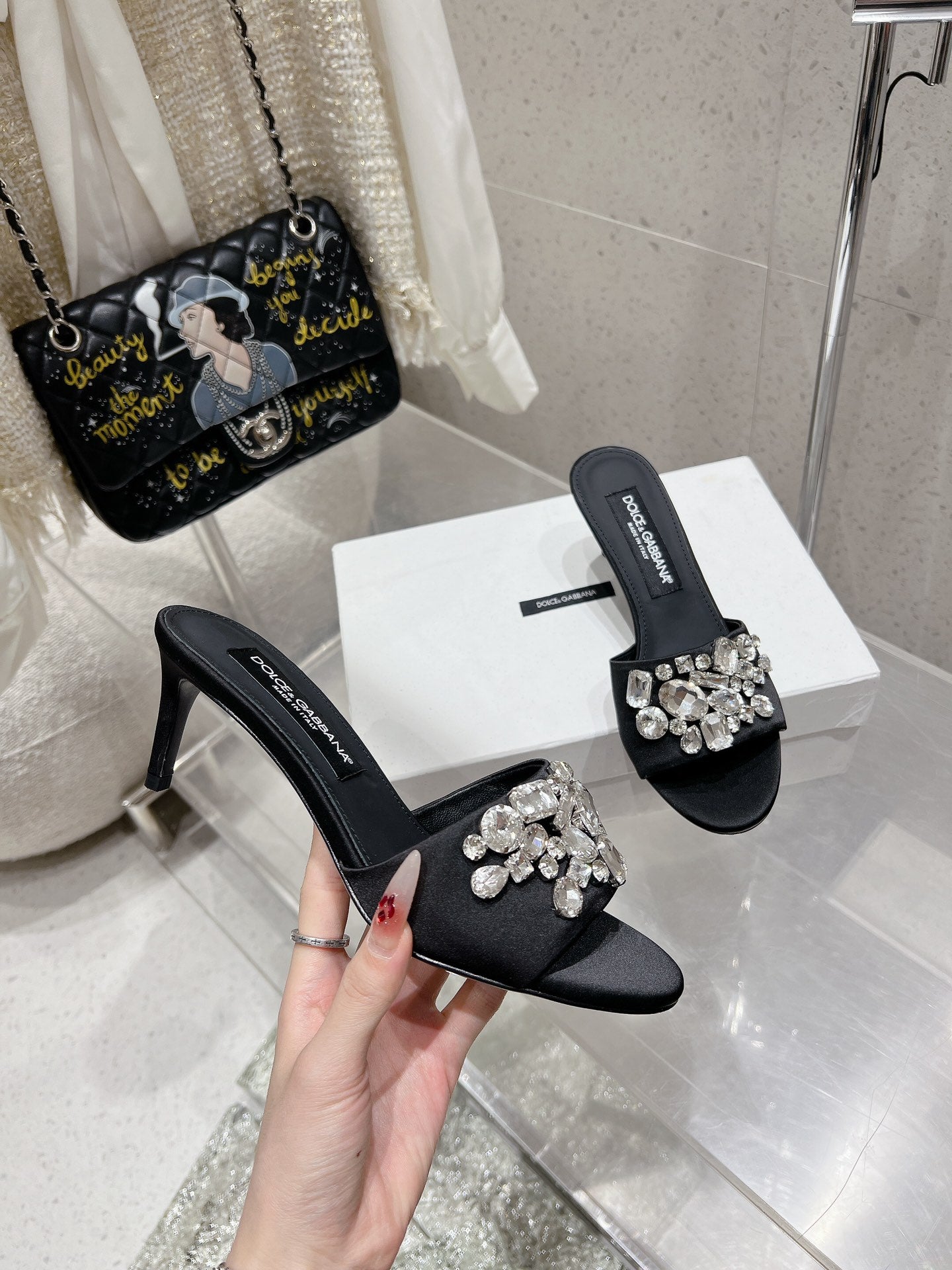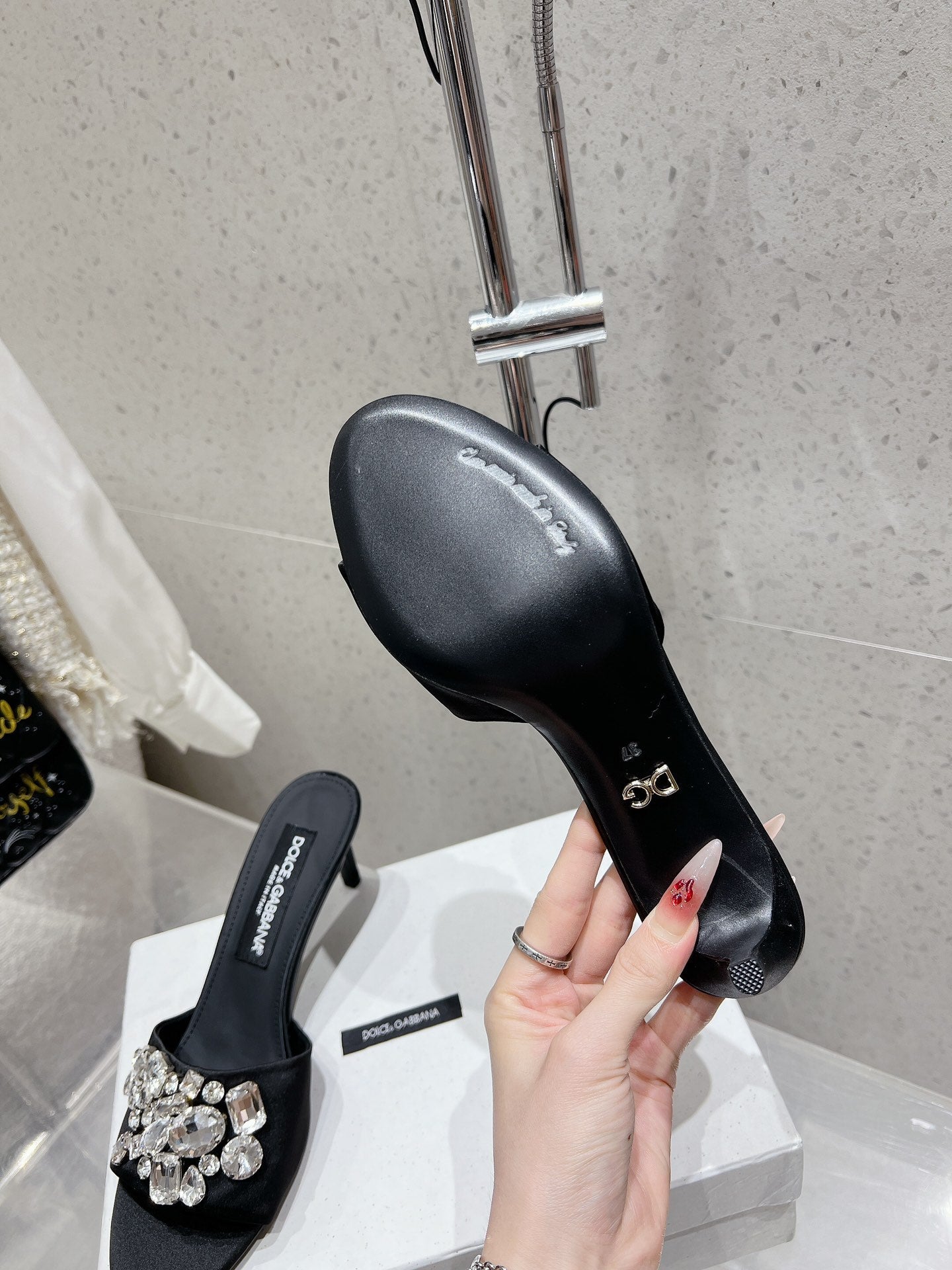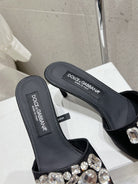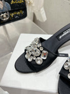 DC Crystal Mules 60mm Black Silk & Sheepskin 359516
