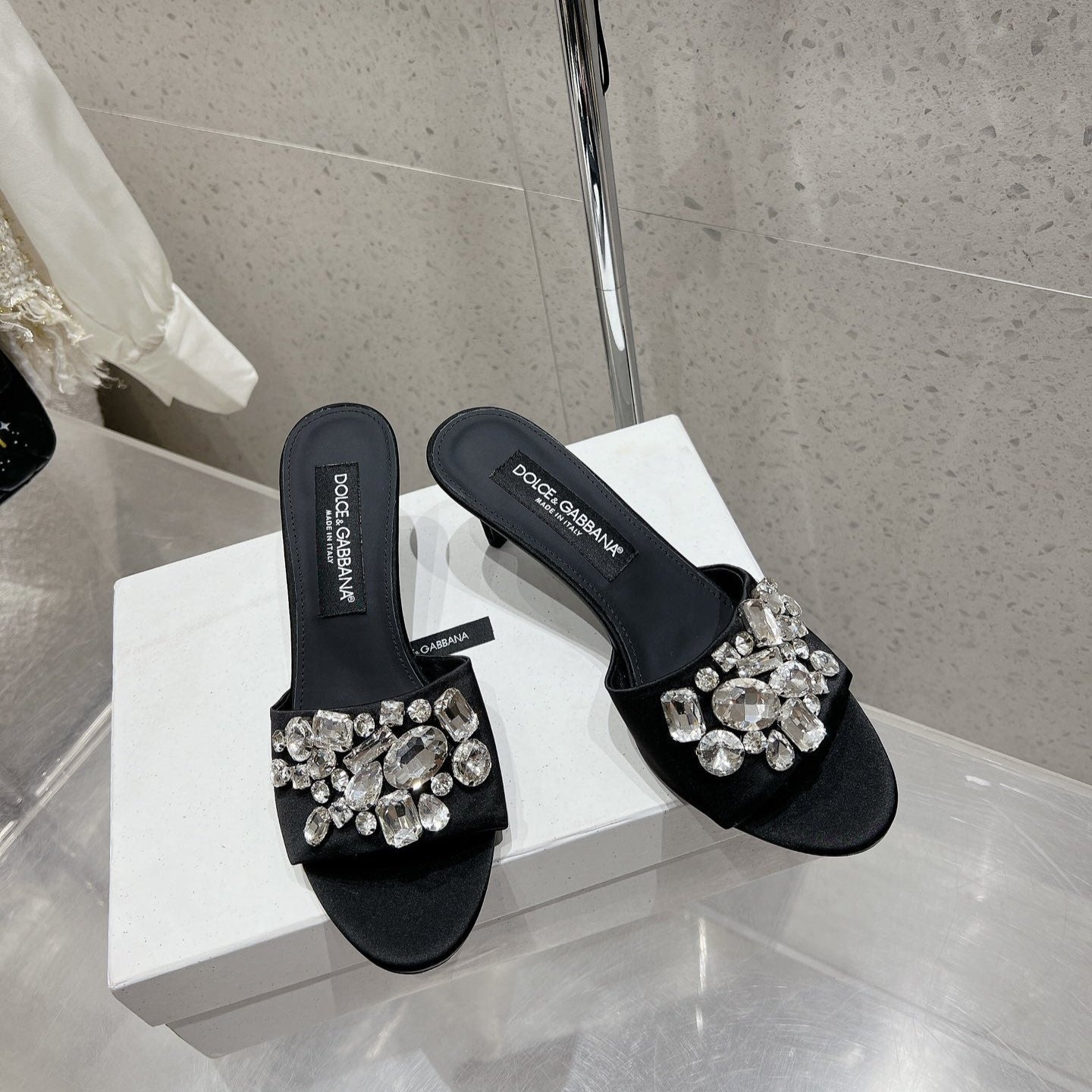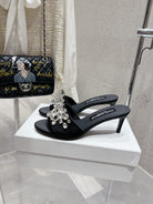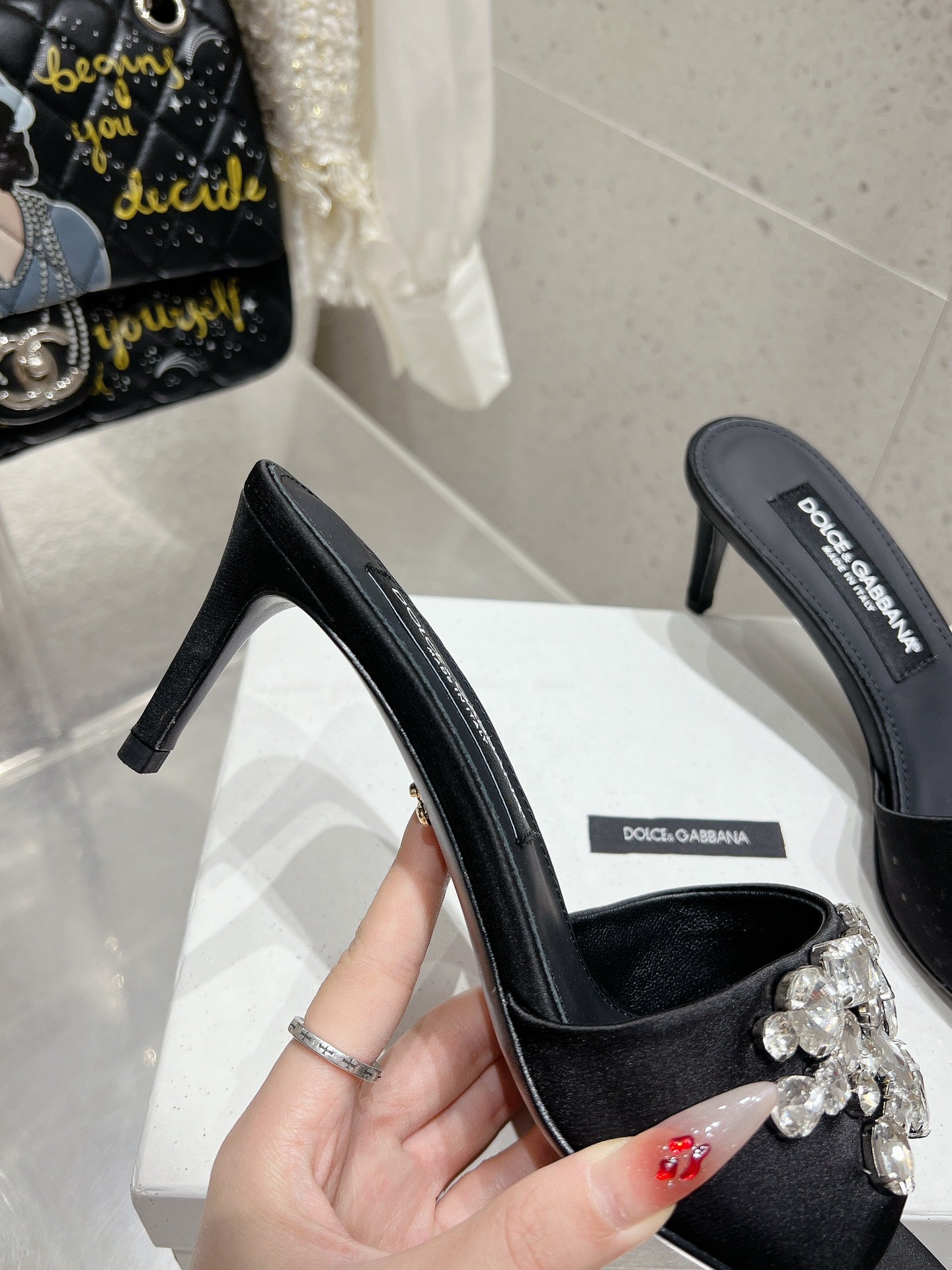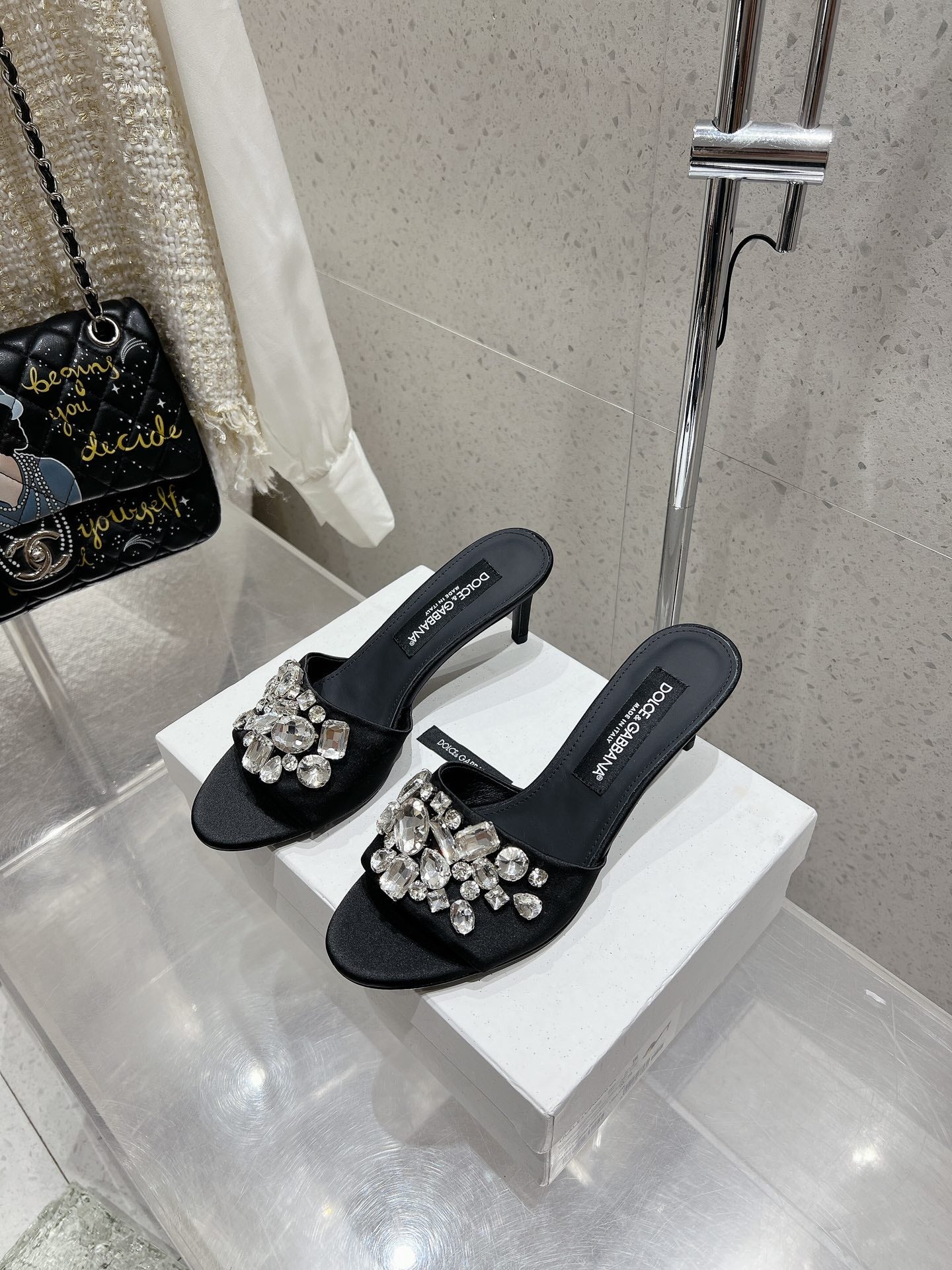 DC Crystal Mules 60mm Black Silk & Sheepskin 359516