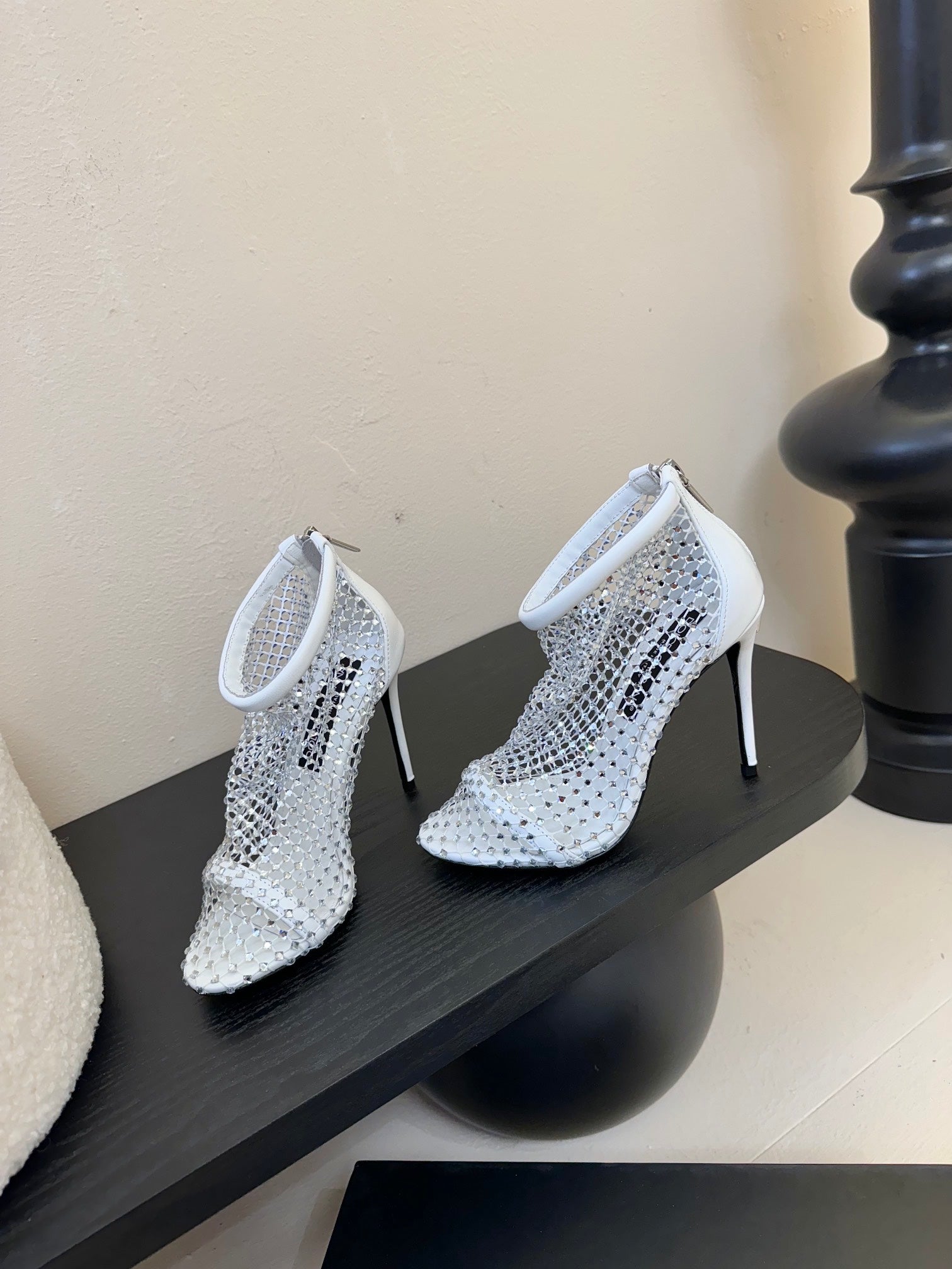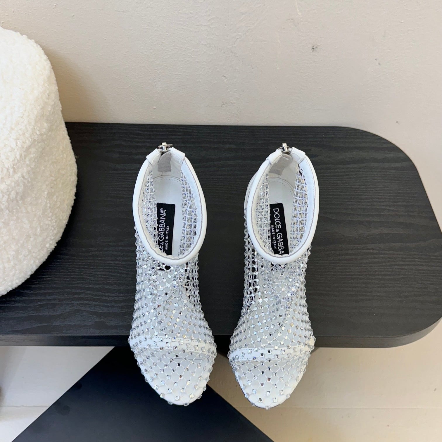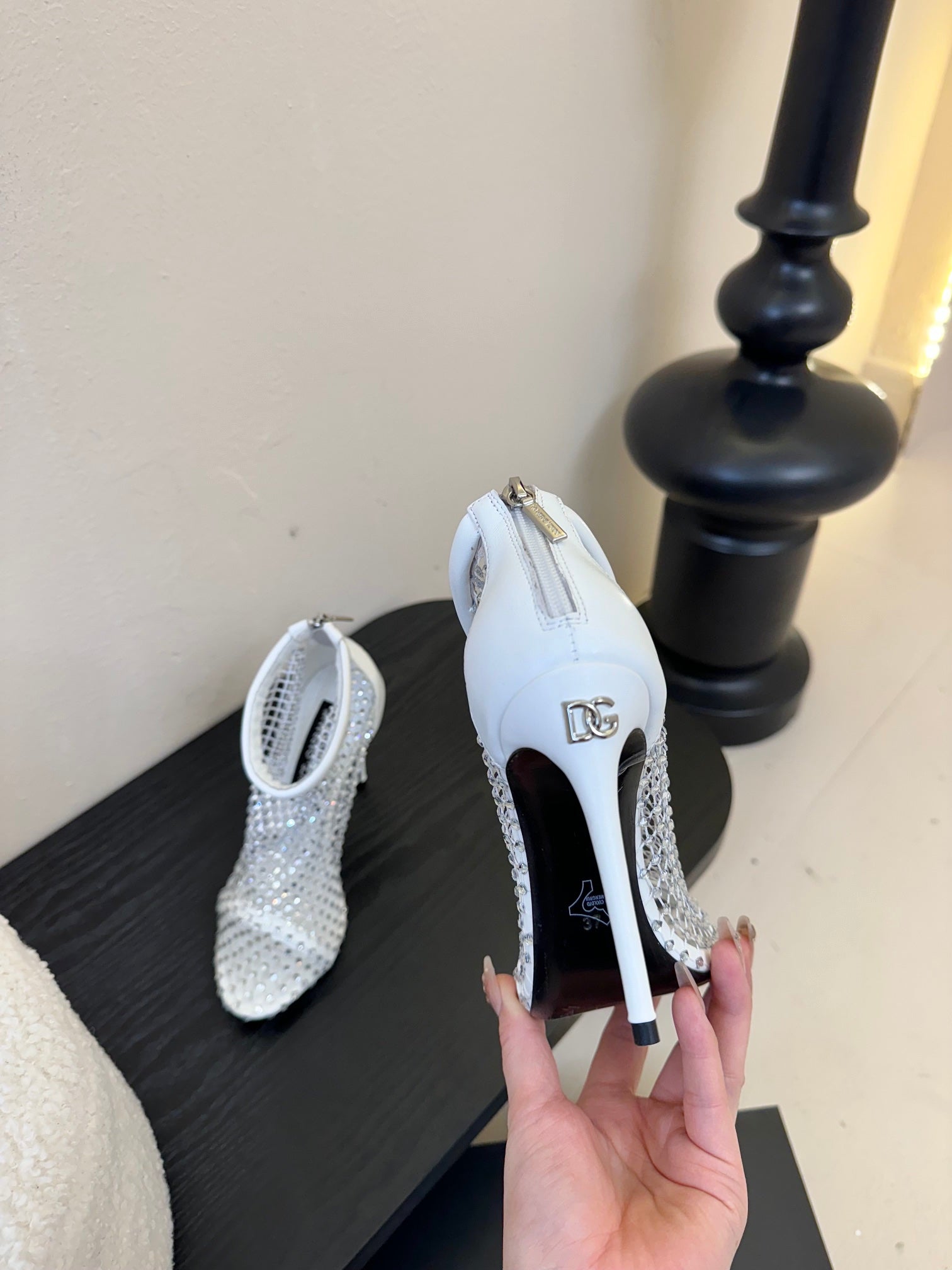 DC Pumps White Rhinestone Mesh & Sheepskin 297012