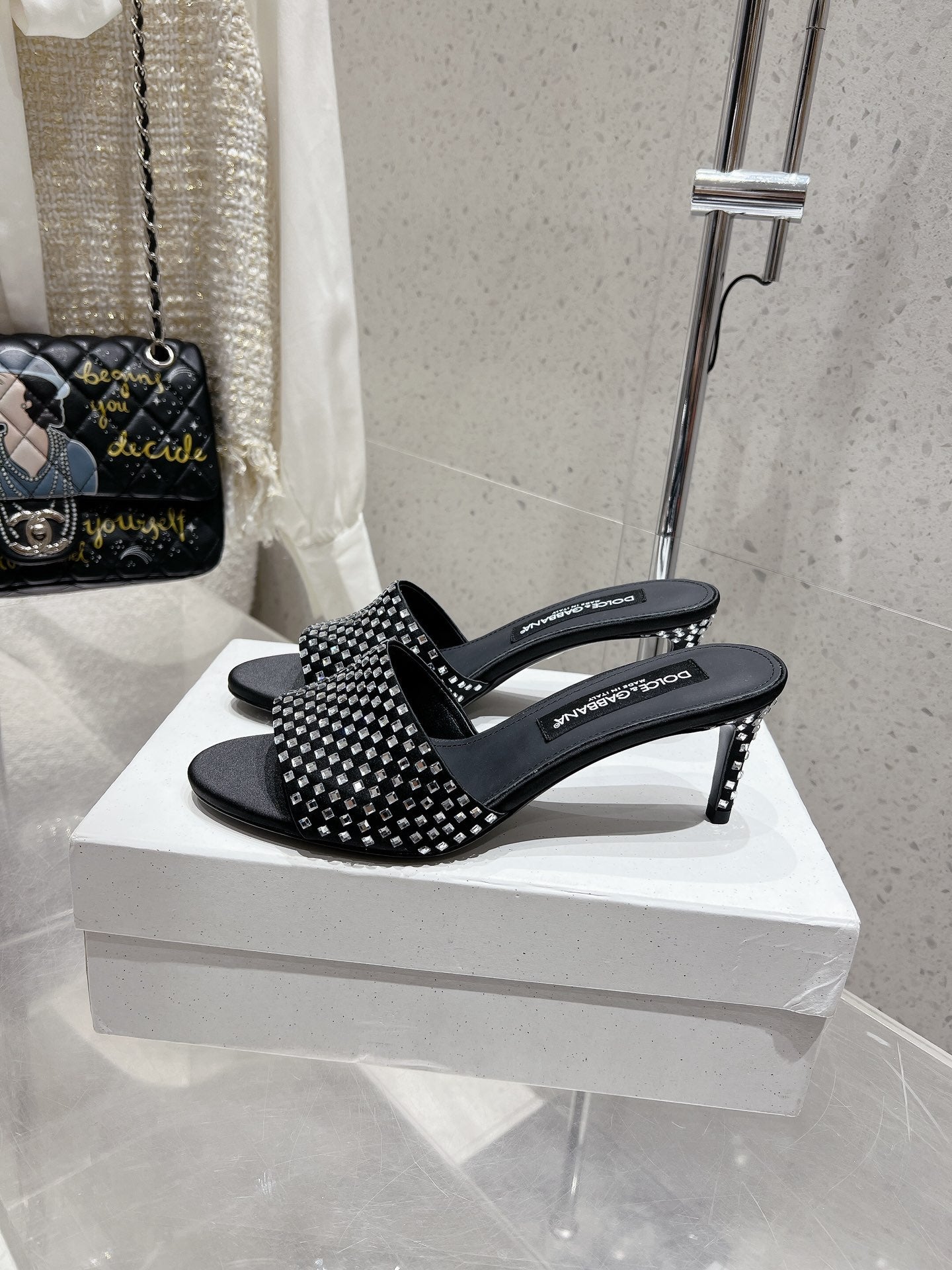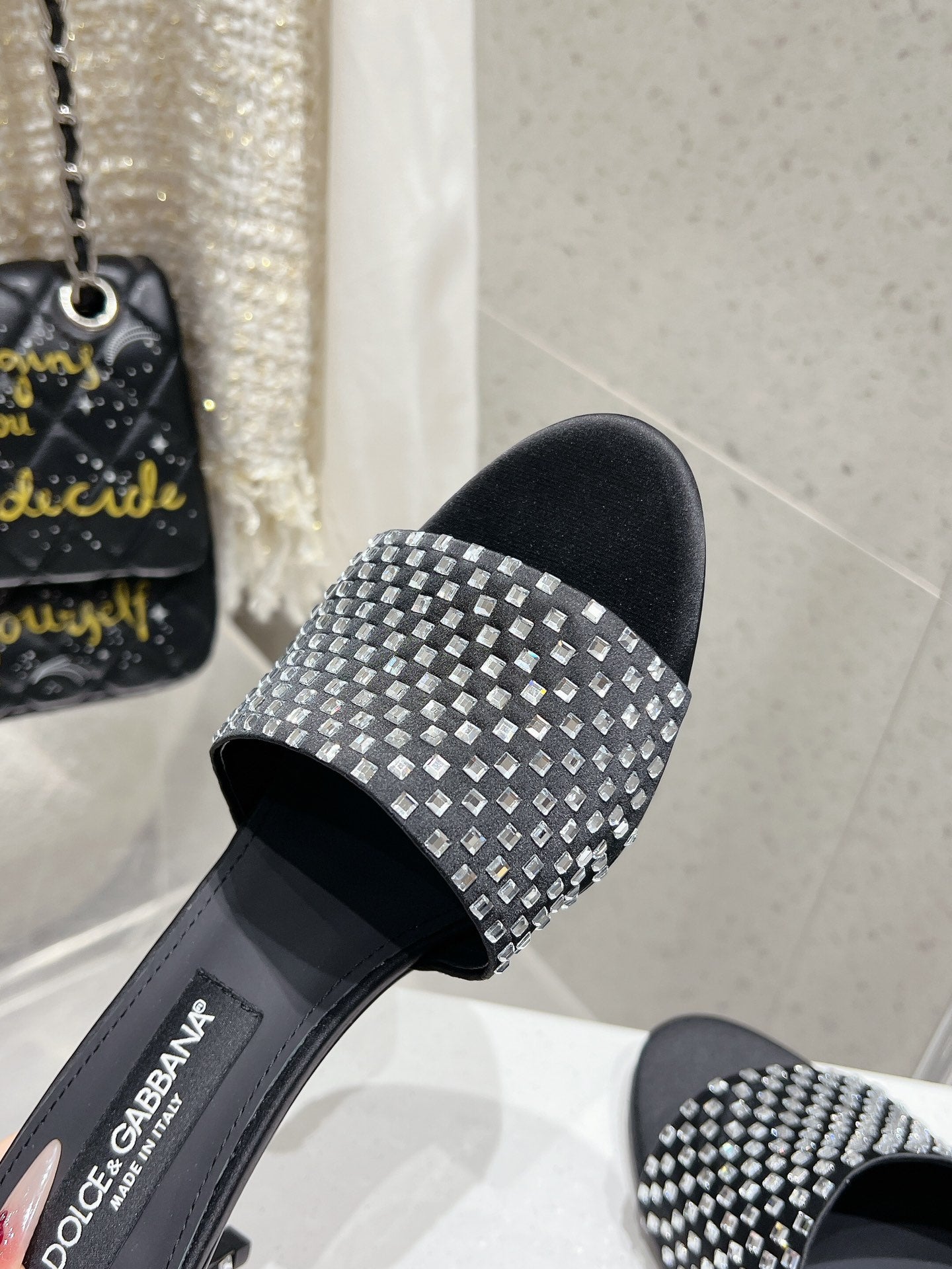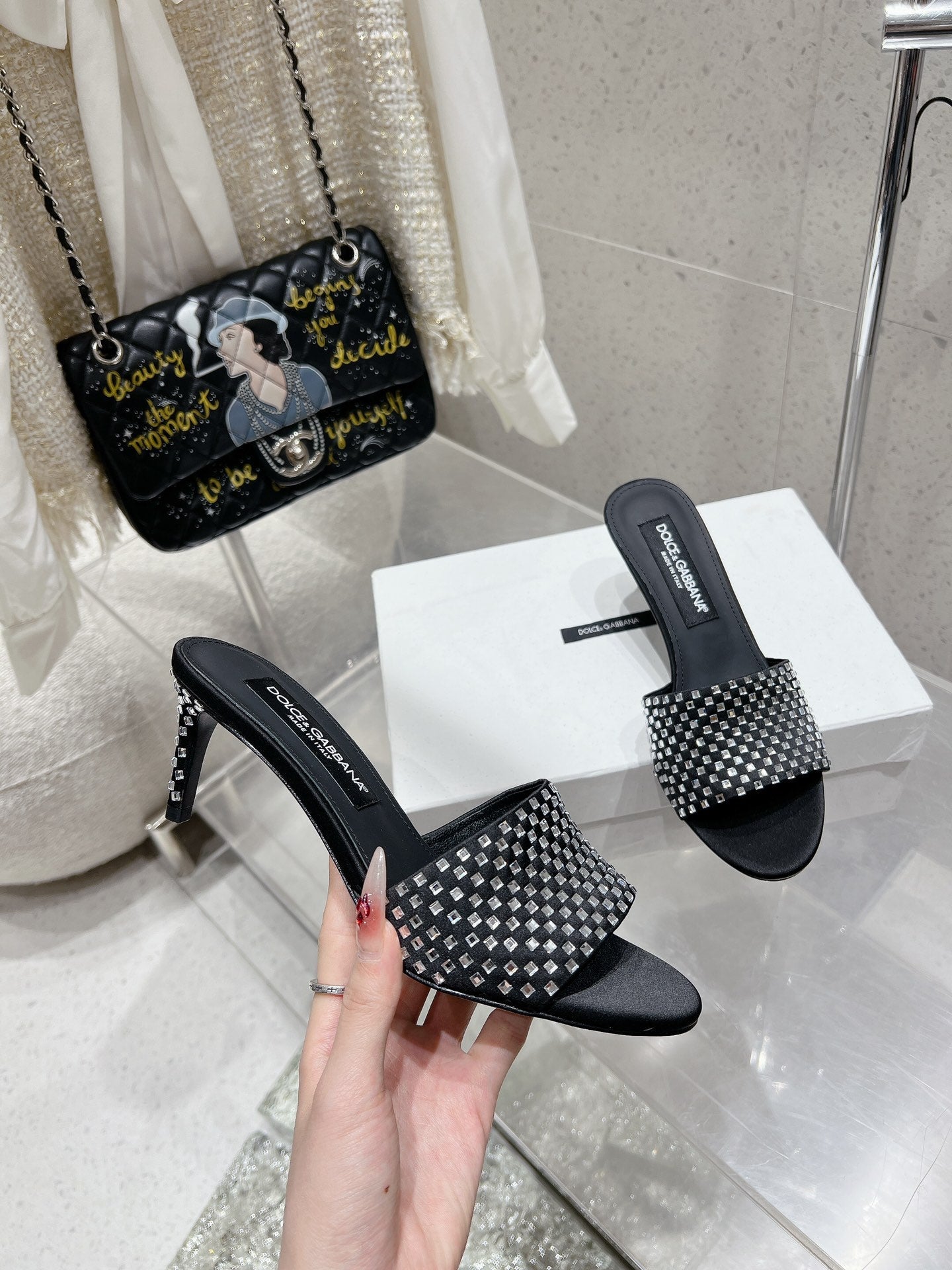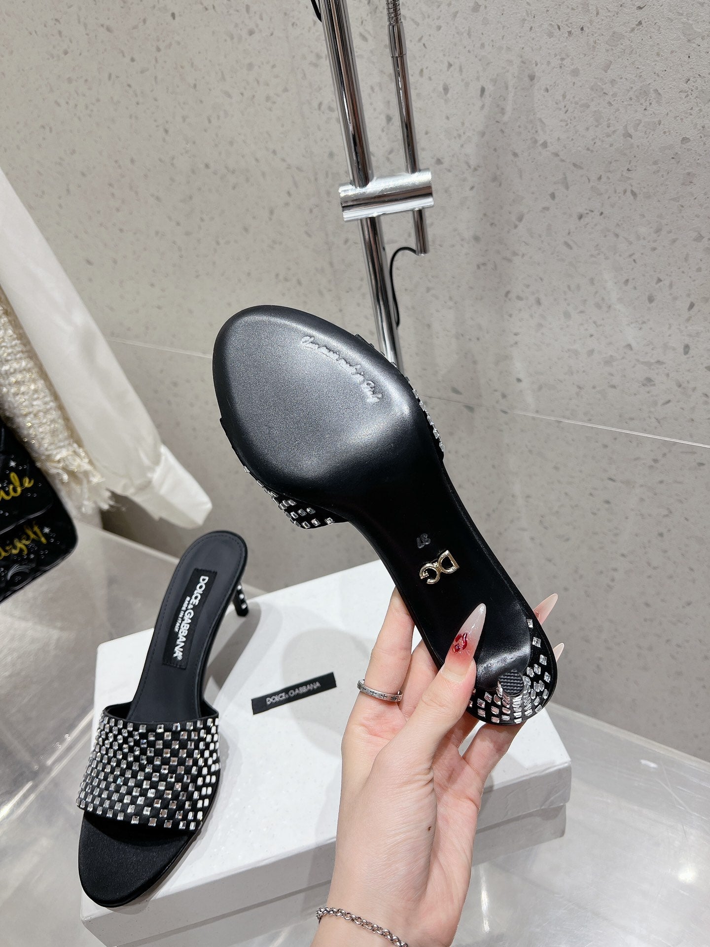 DC Rhinestone Mules 65mm Black Silk & Sheepskin 359514