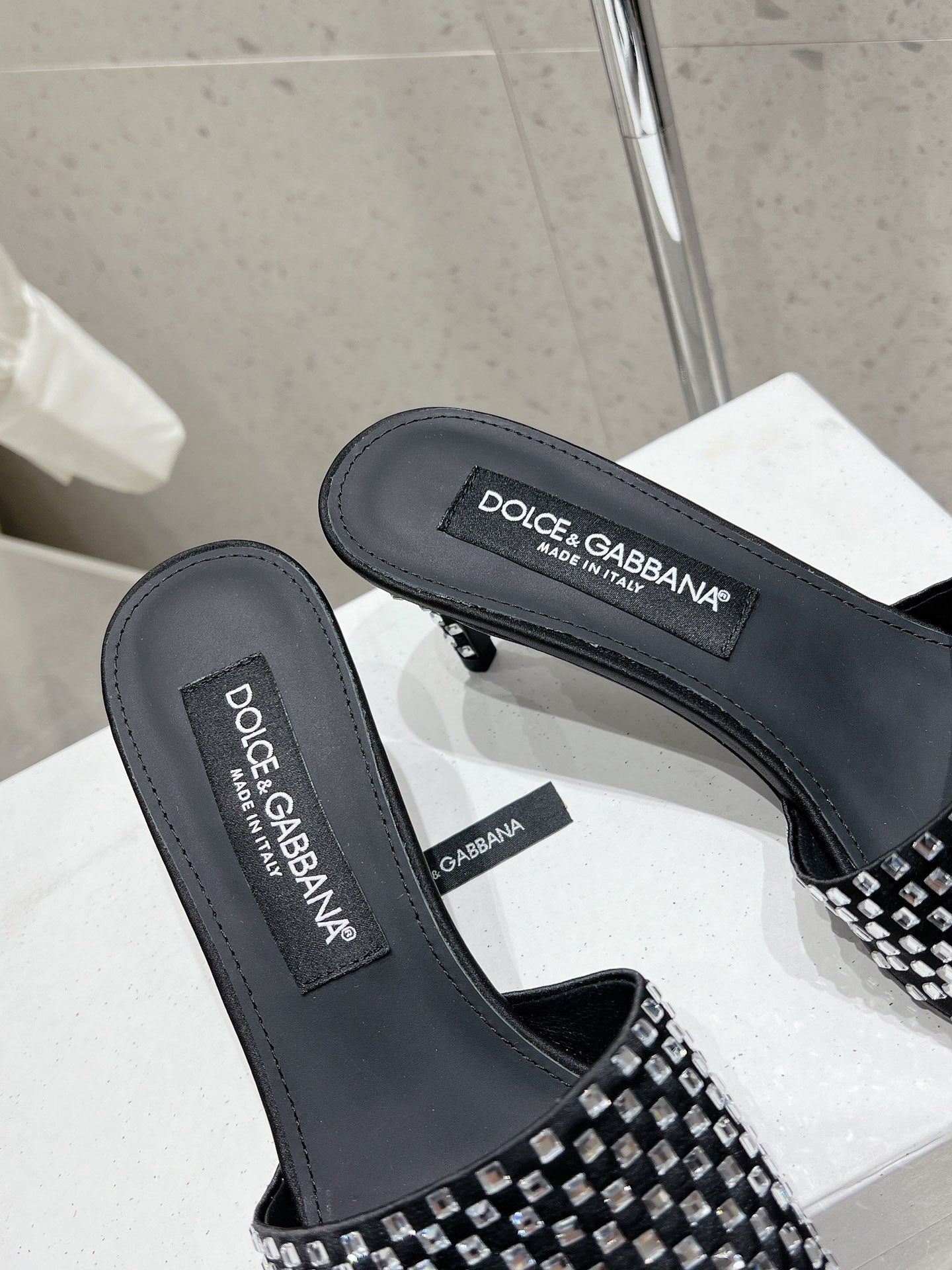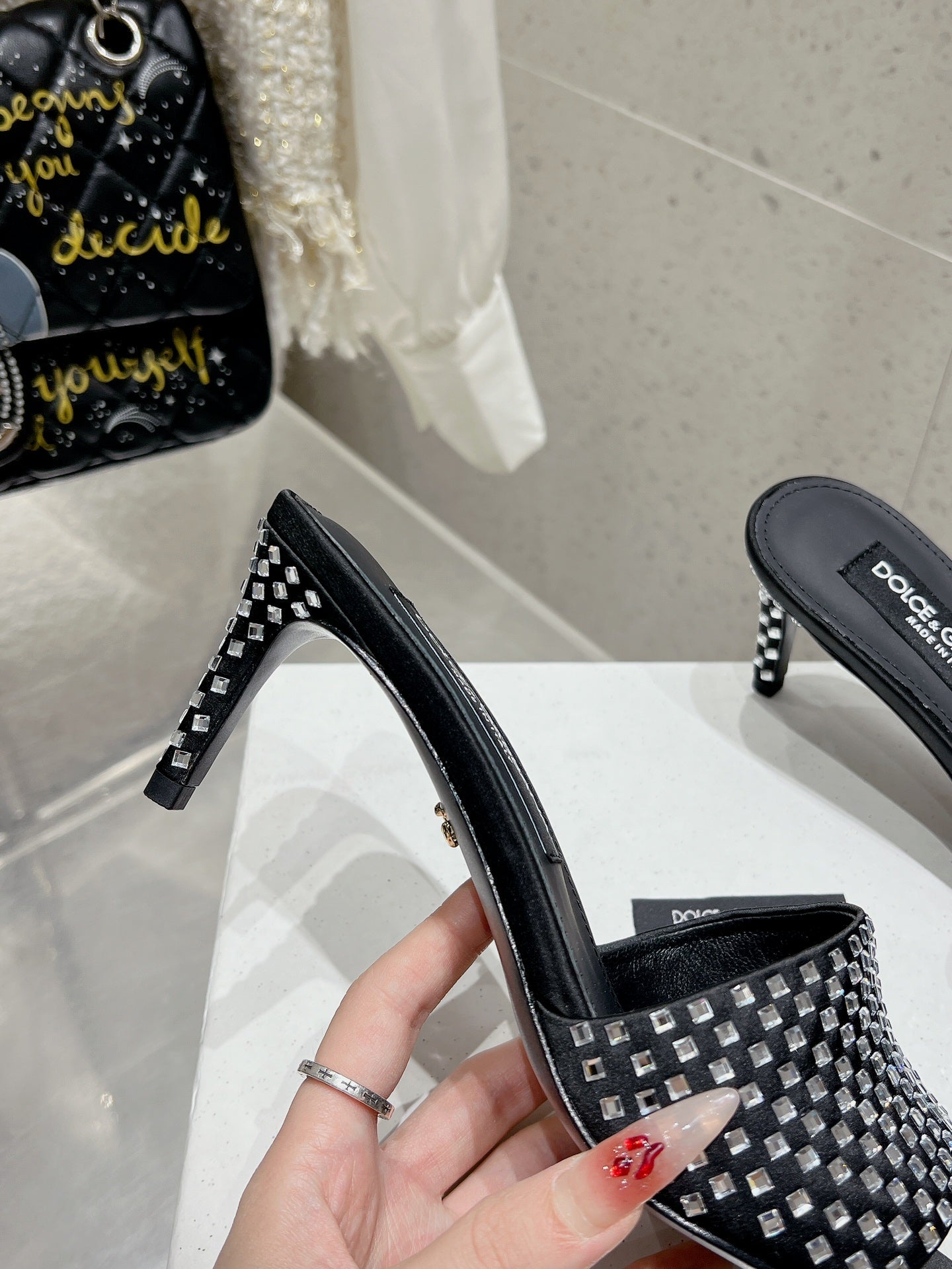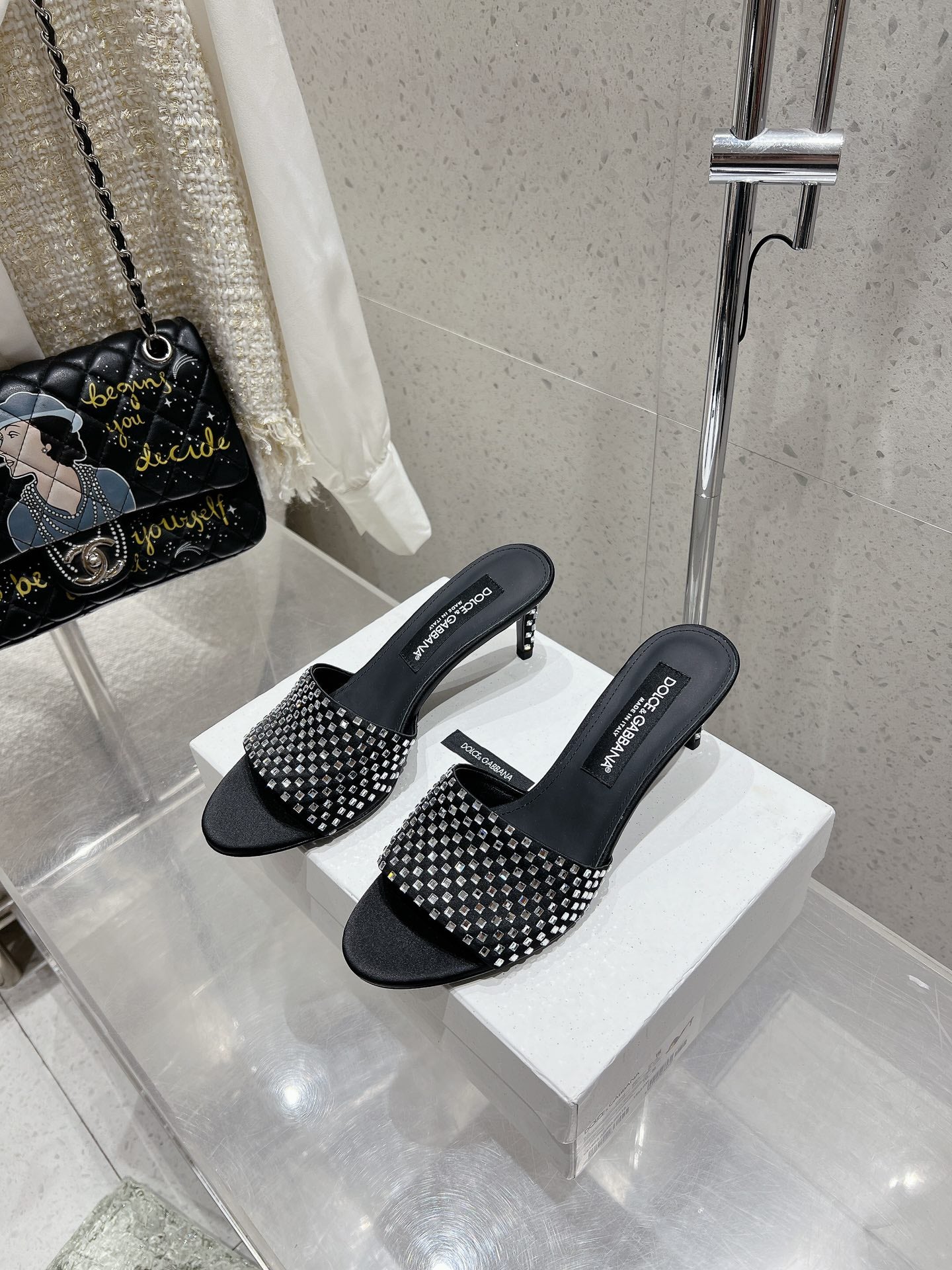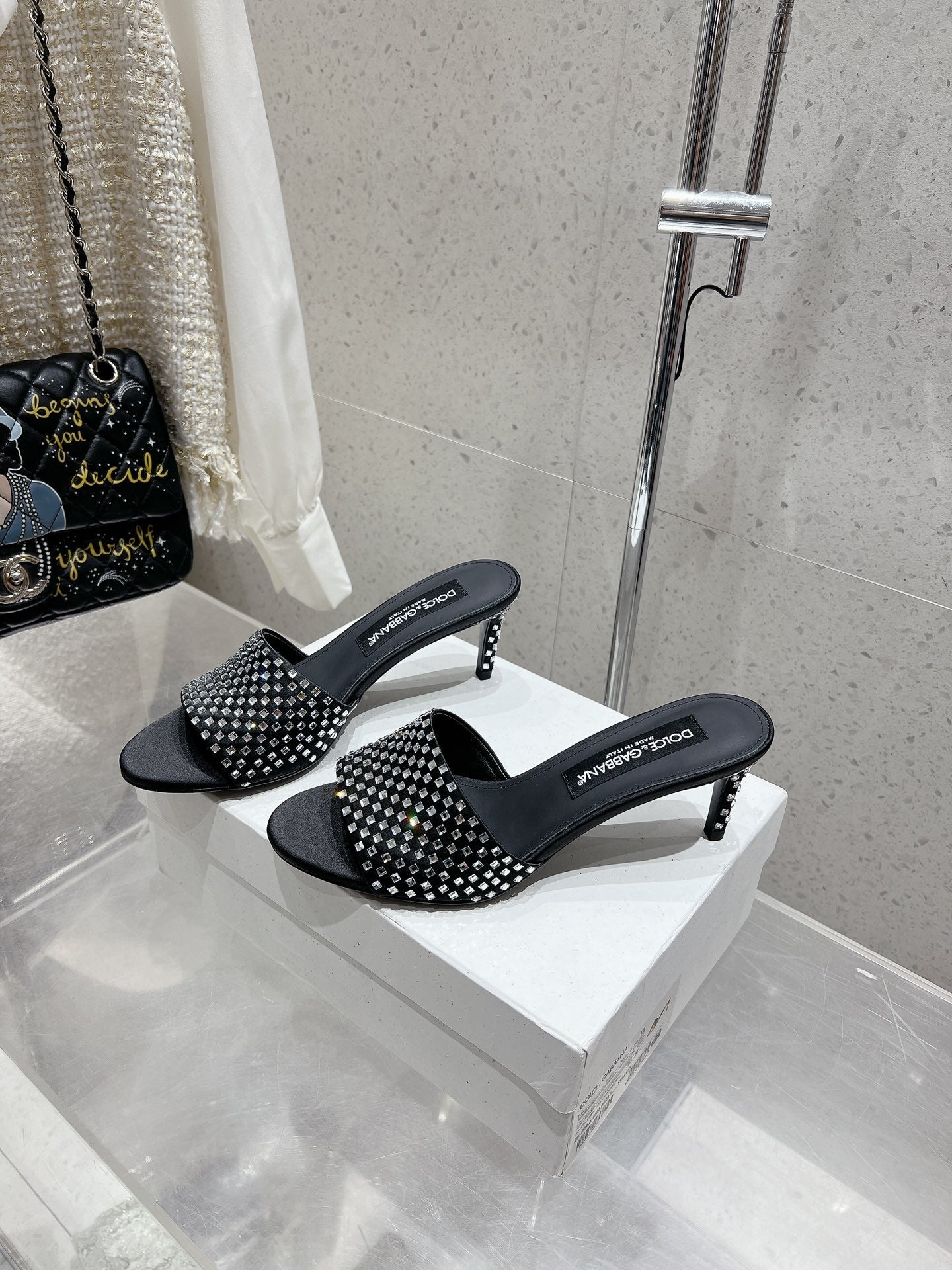 DC Rhinestone Mules 65mm Black Silk & Sheepskin 359514