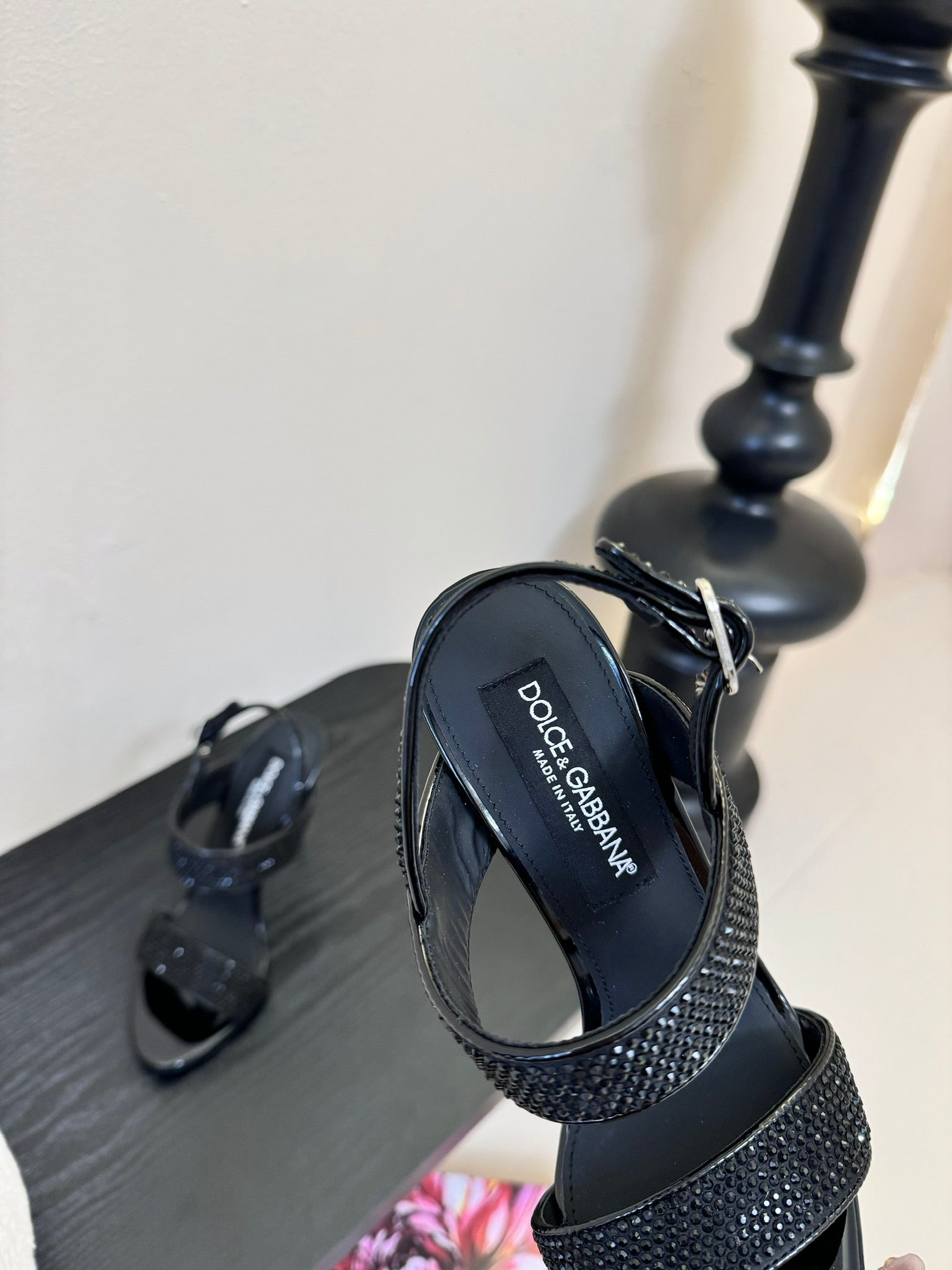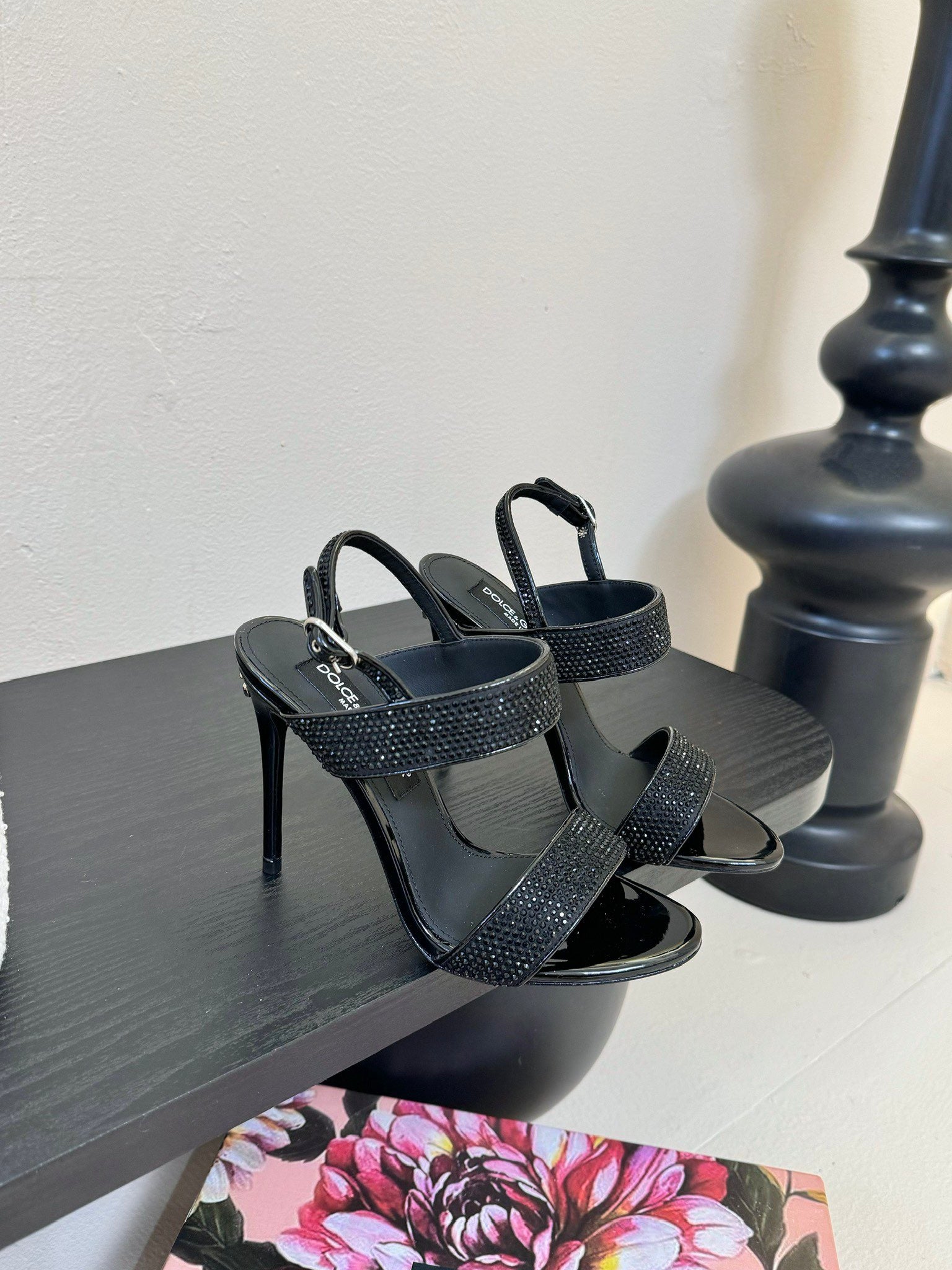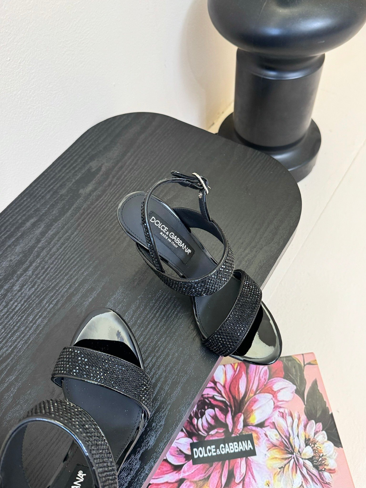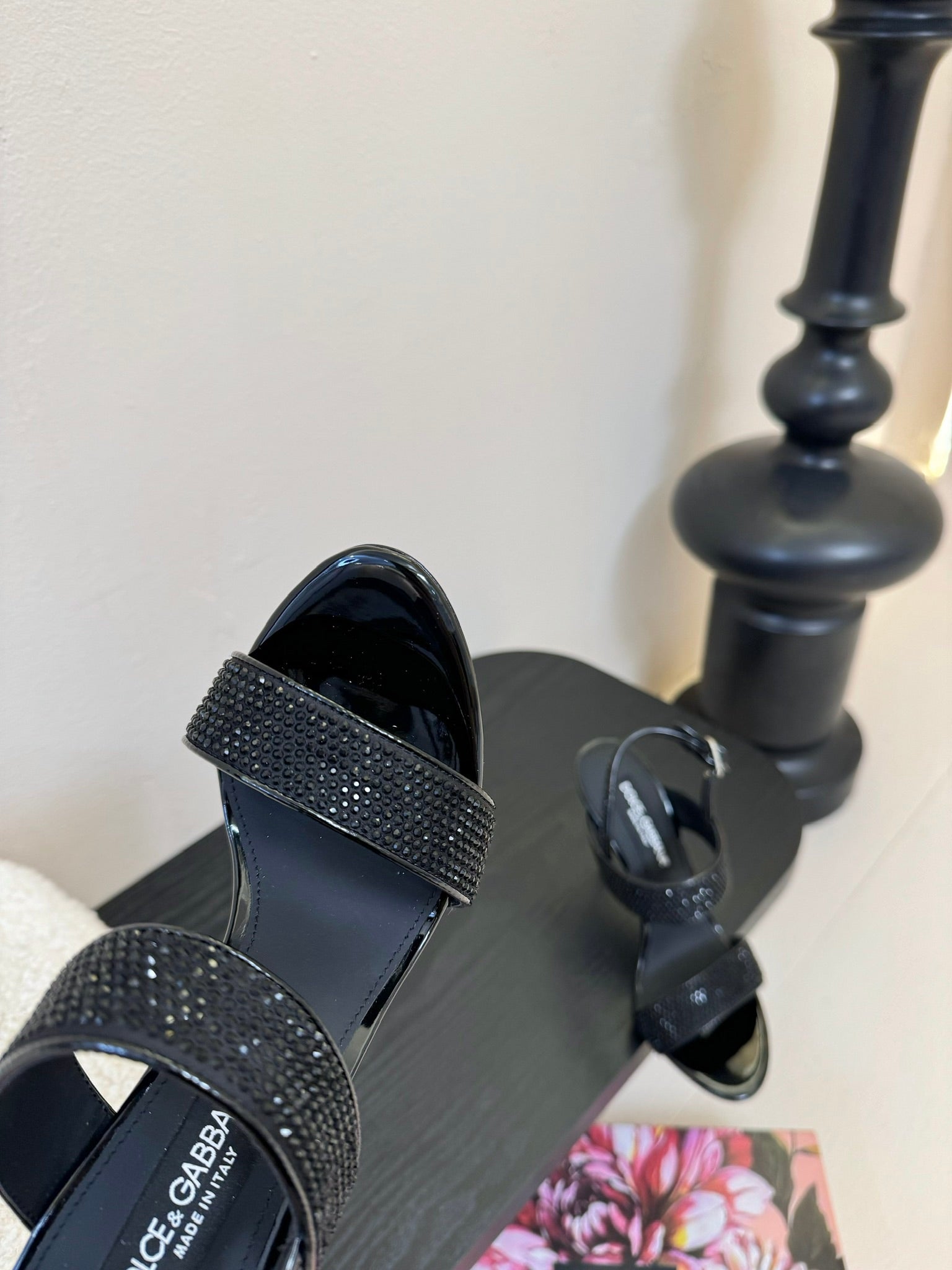 DC Satin Sandals Black Sheepskin & Fusible Rhinestones 313668