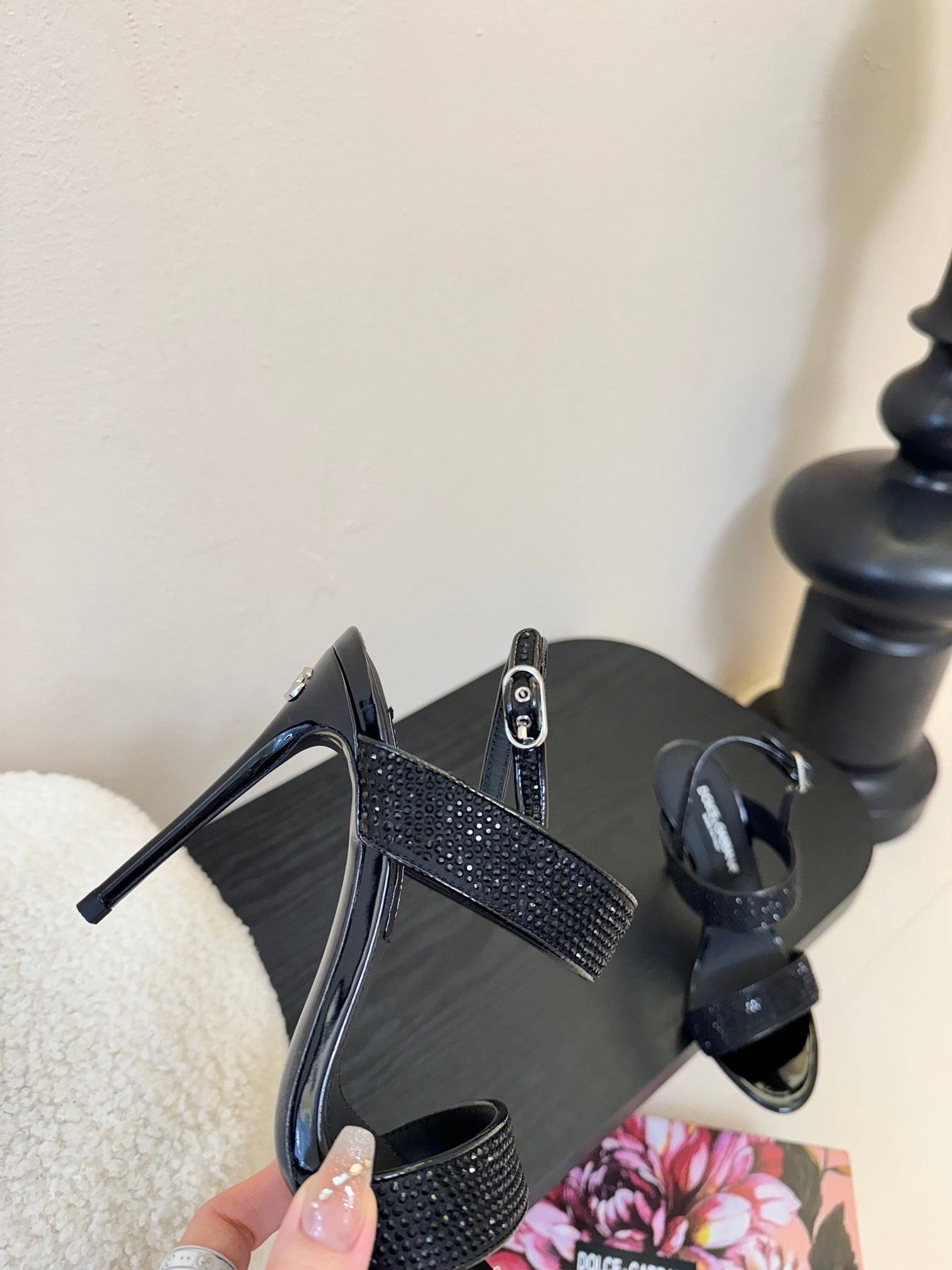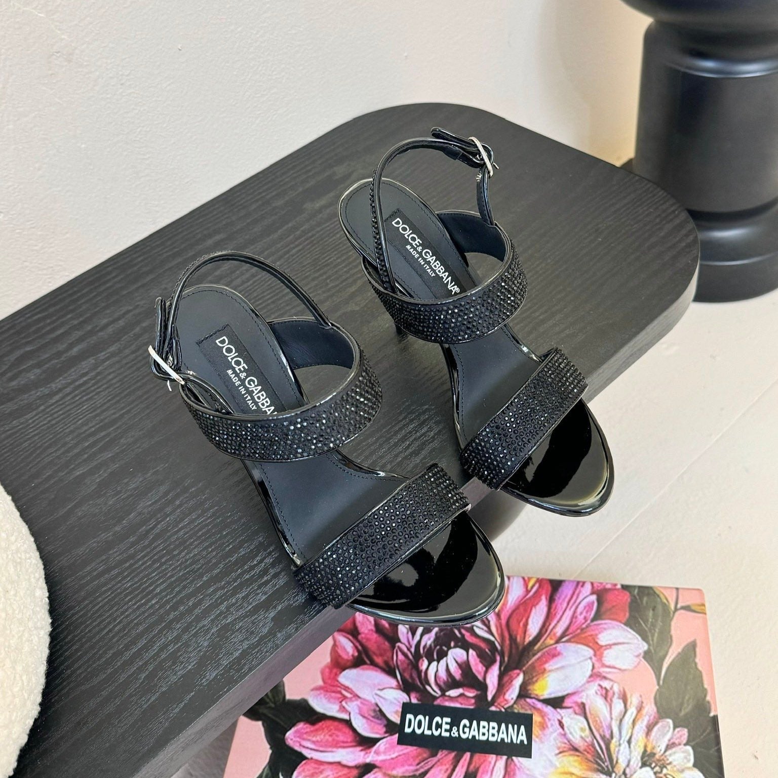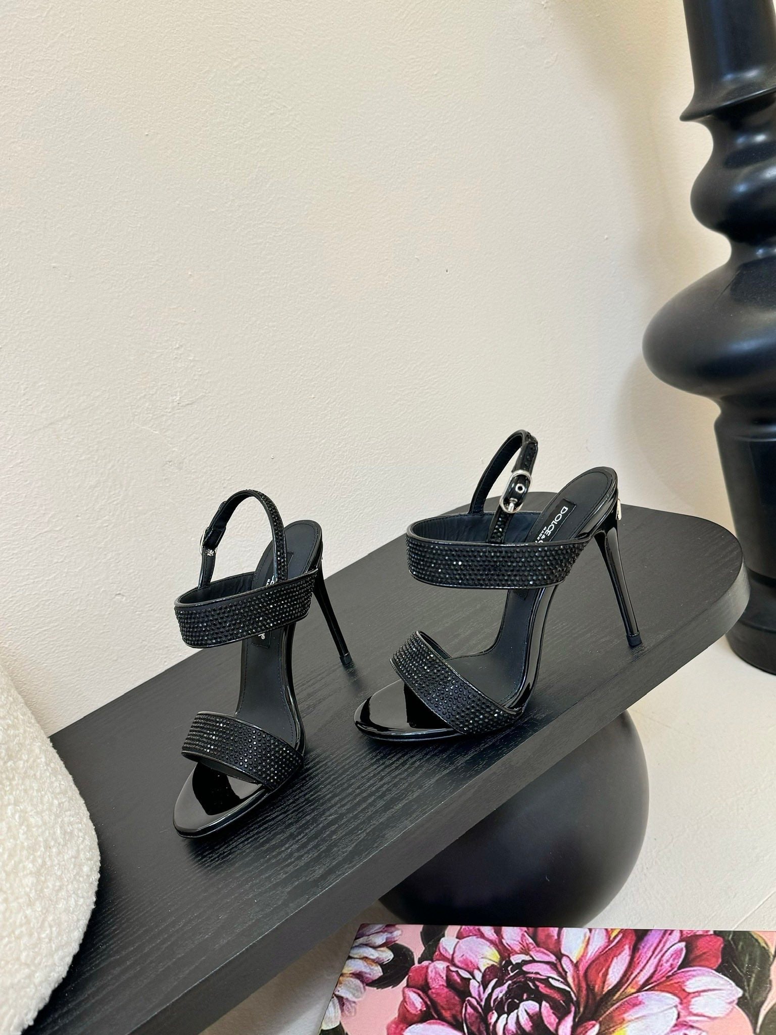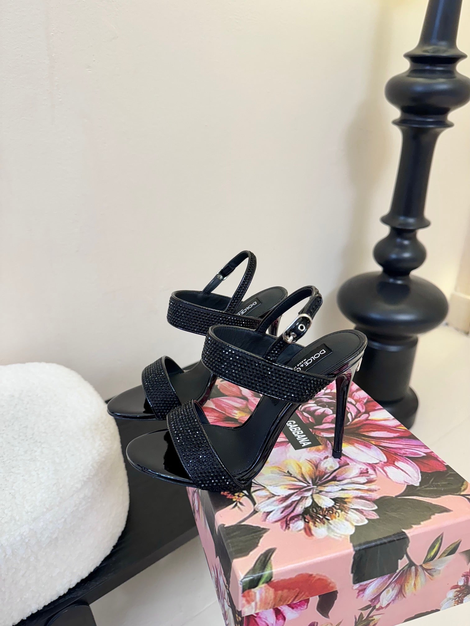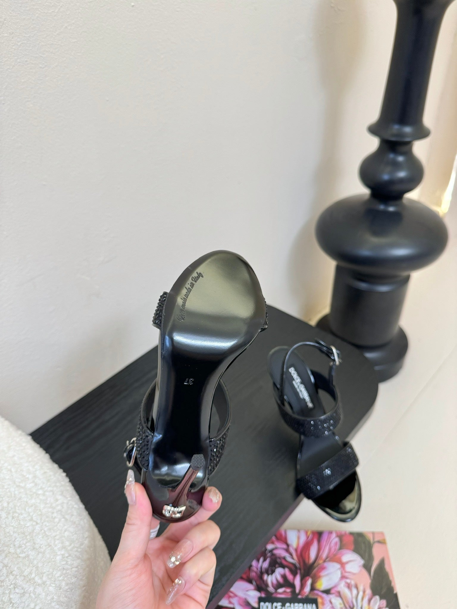 DC Satin Sandals Black Sheepskin & Fusible Rhinestones 313668