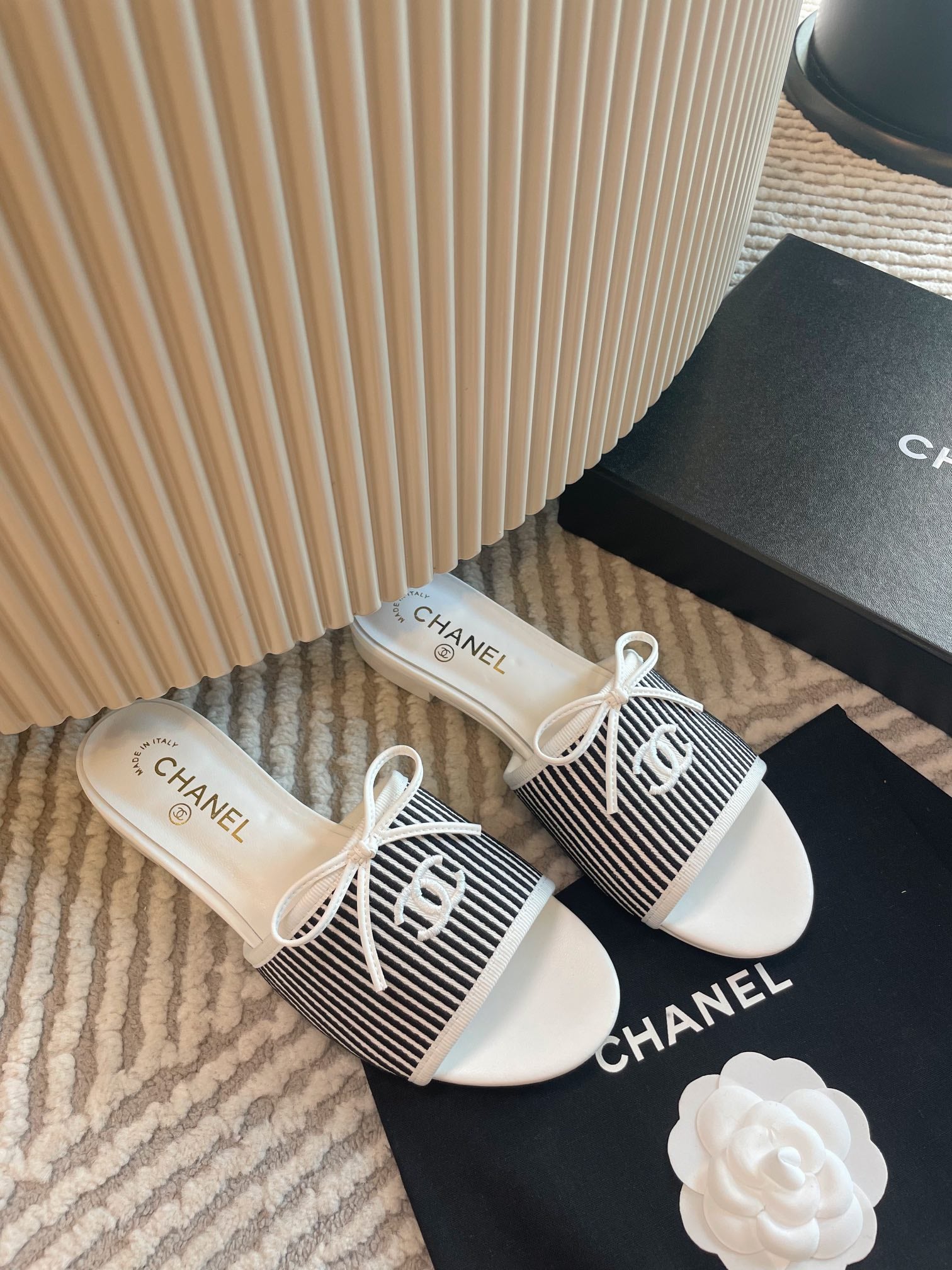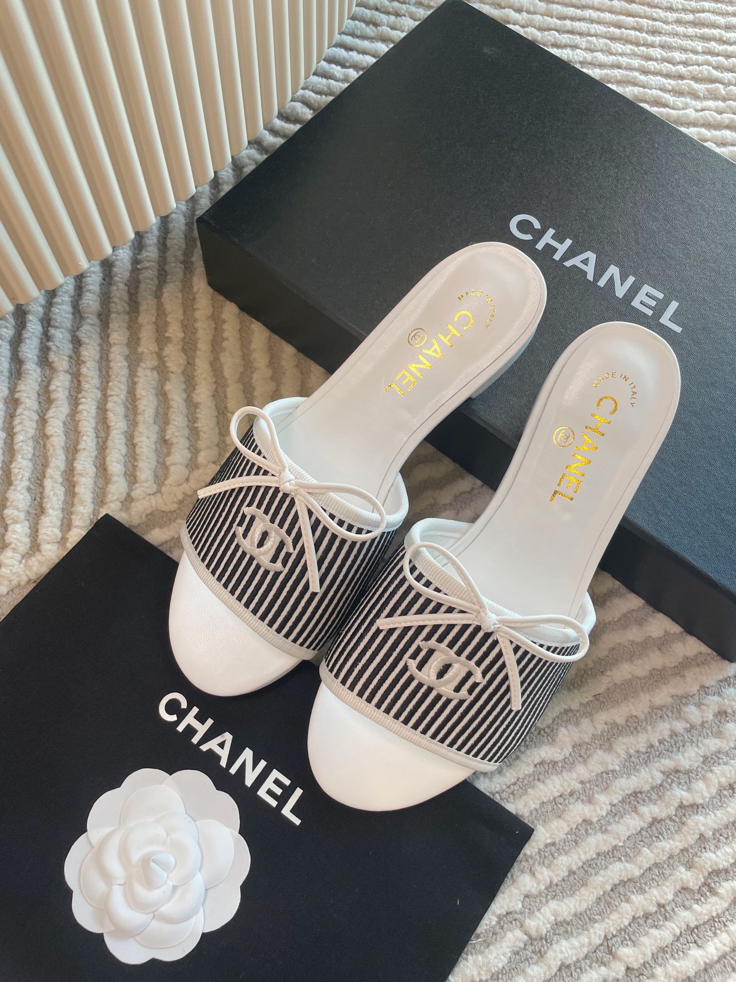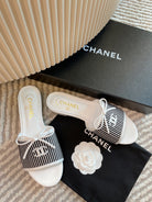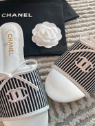 mule sandal white black embroidered fabric calfskin