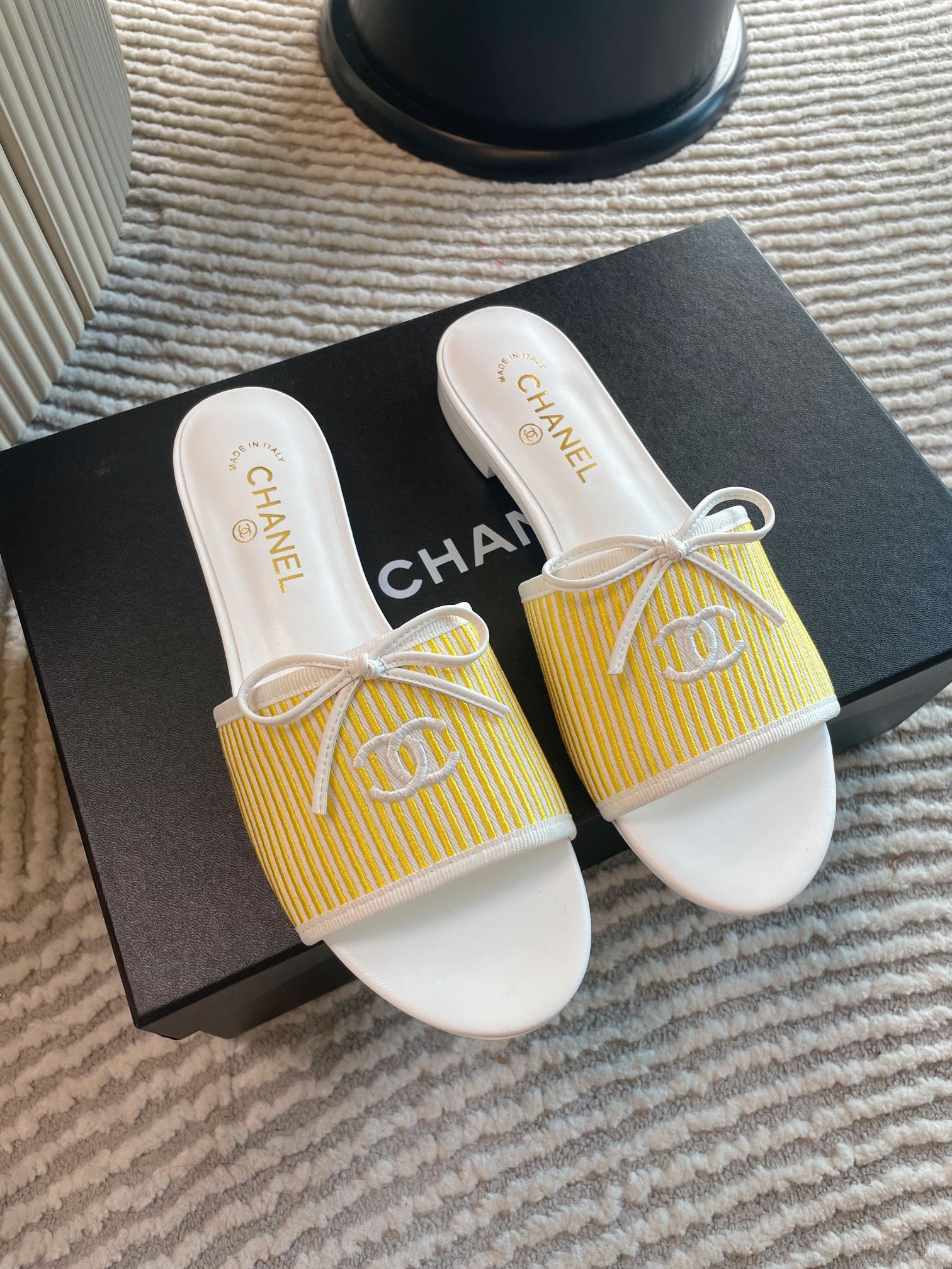 mule sandal white yellow embroidered fabric calfskin