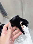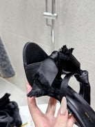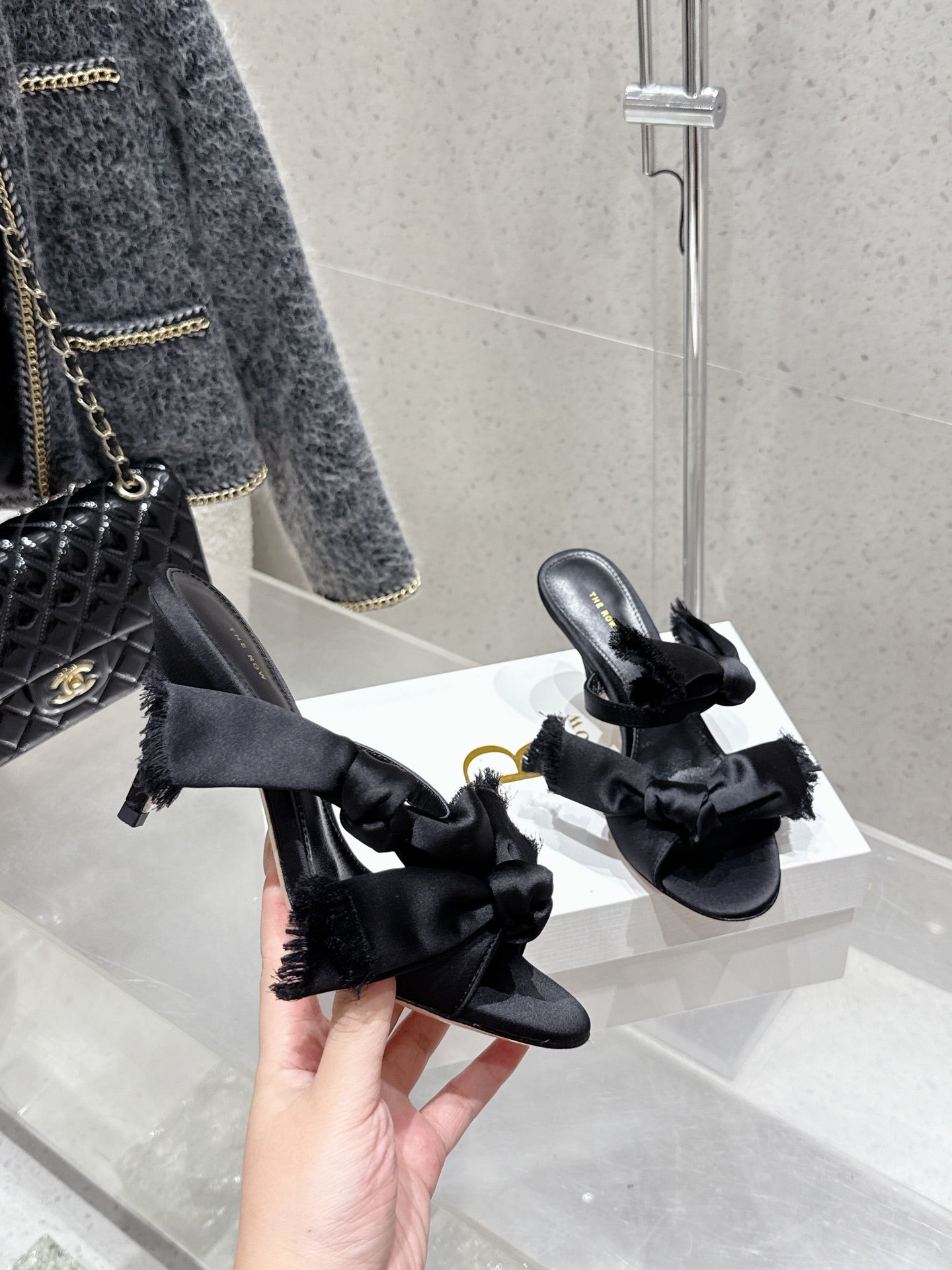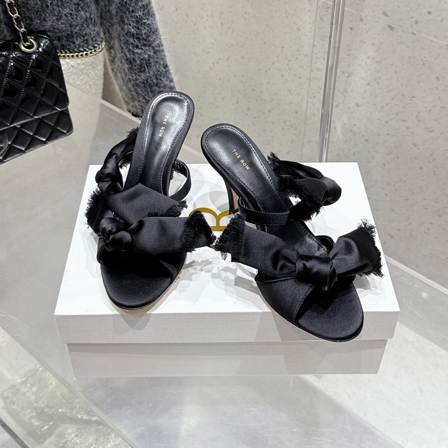The Row Strap High Heel Mule Sandals 80mm Black Satin And Sheepskin 338378
