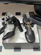 CC 25S Double C Rhinestone Buckle Bow High Heel Pump 85 Black Sheepskin 247573