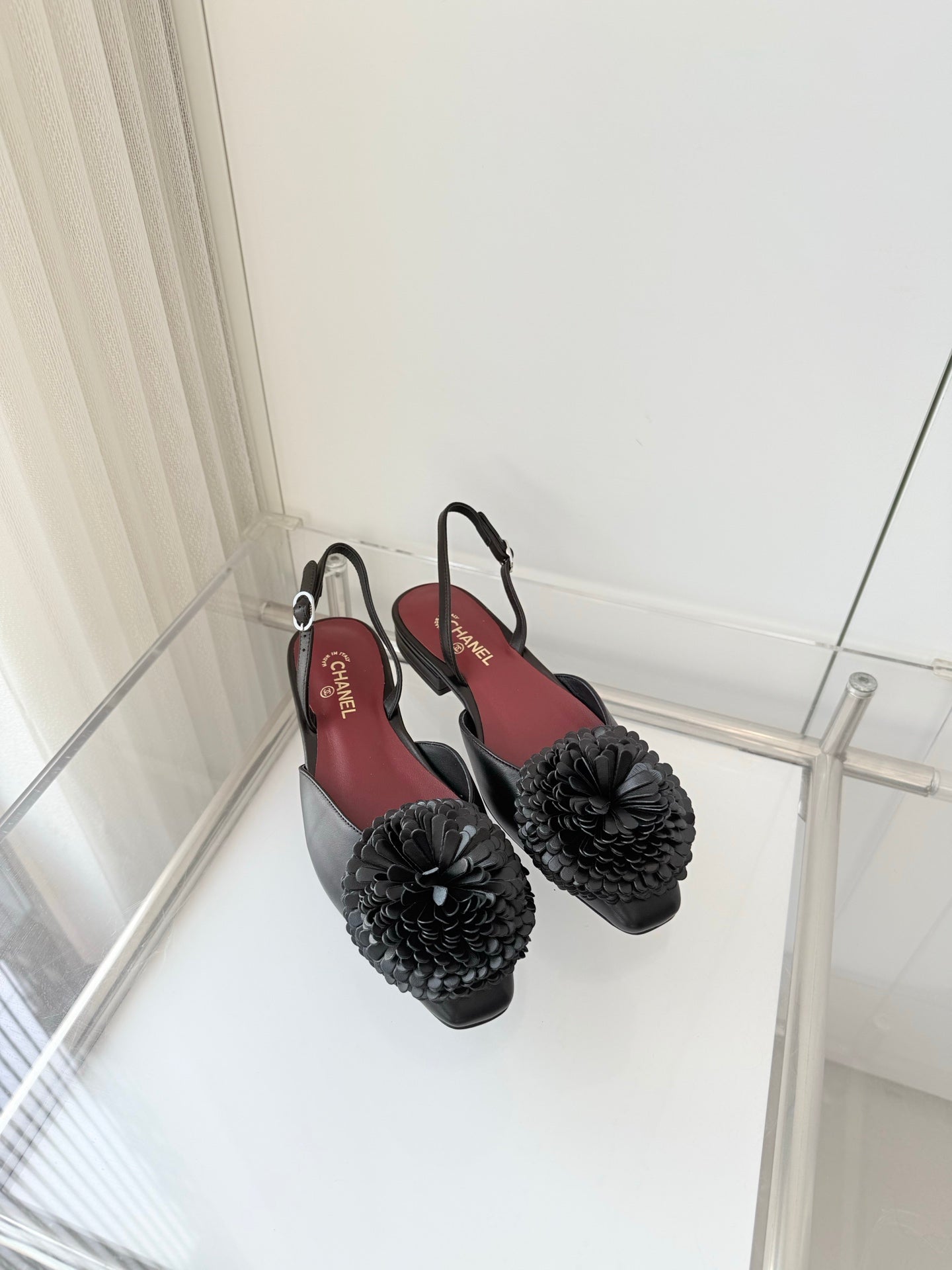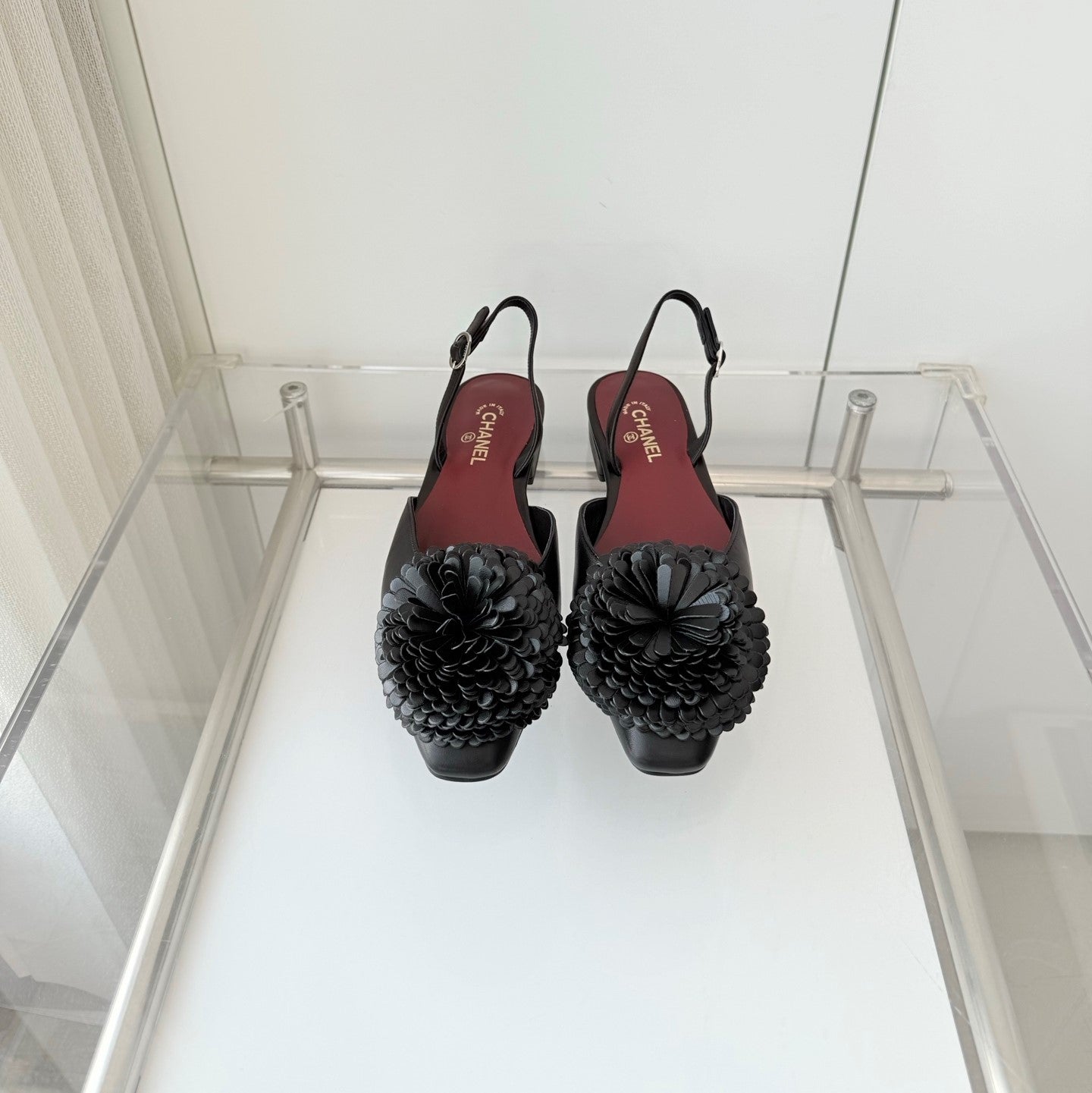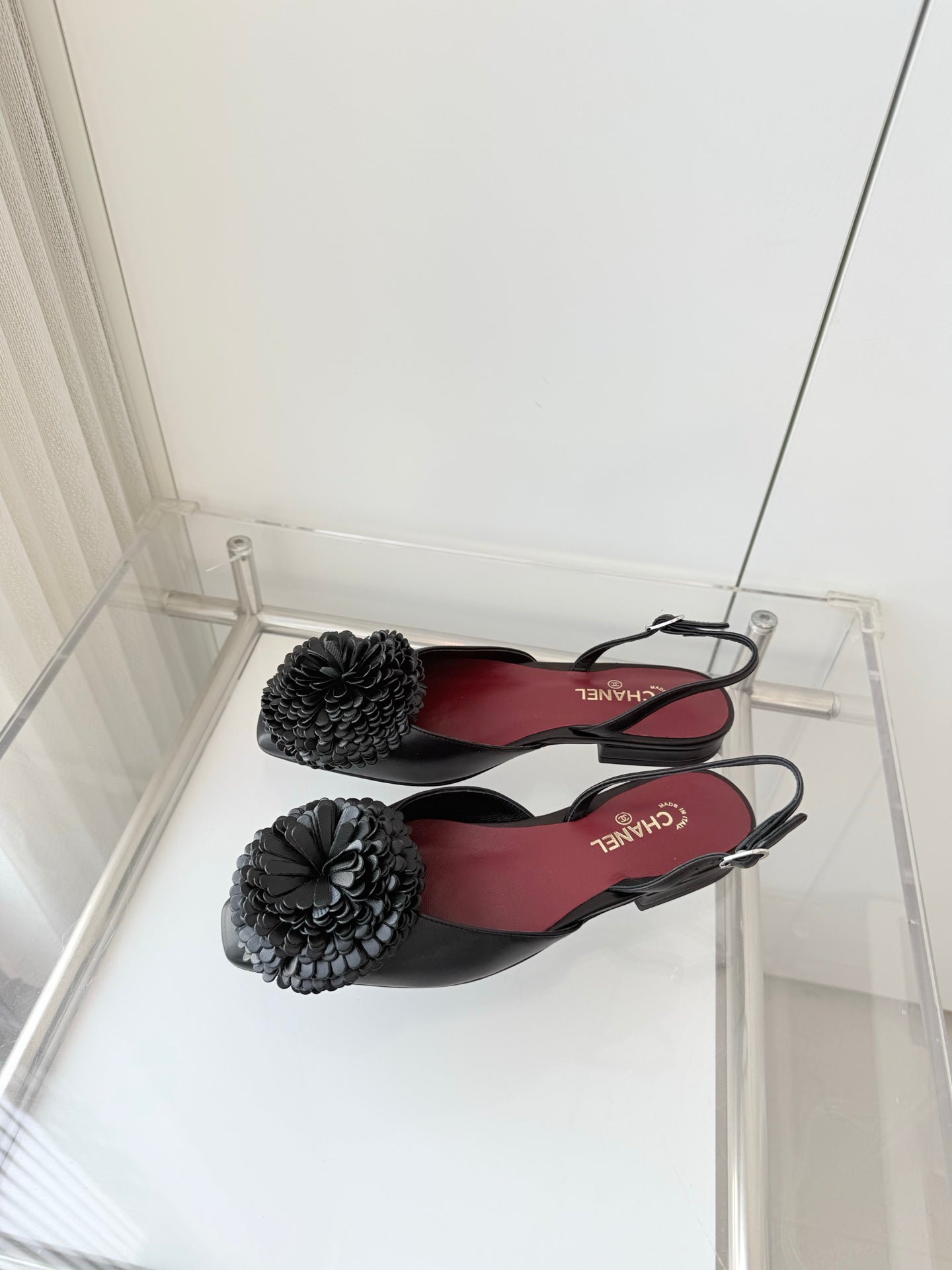 CC 26s Slingback 1.5cm Camellia Flower Black Sheepskin 597410