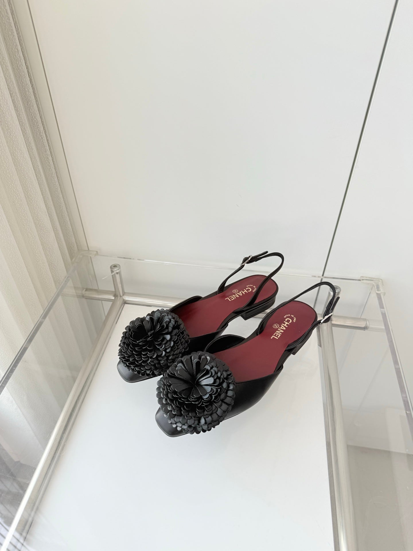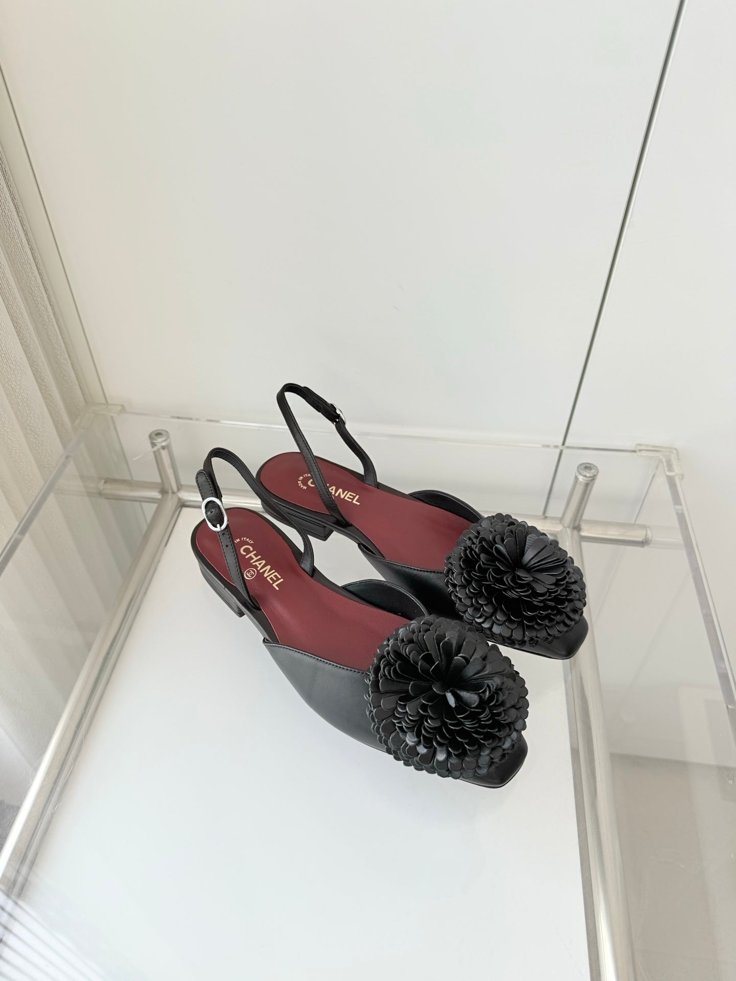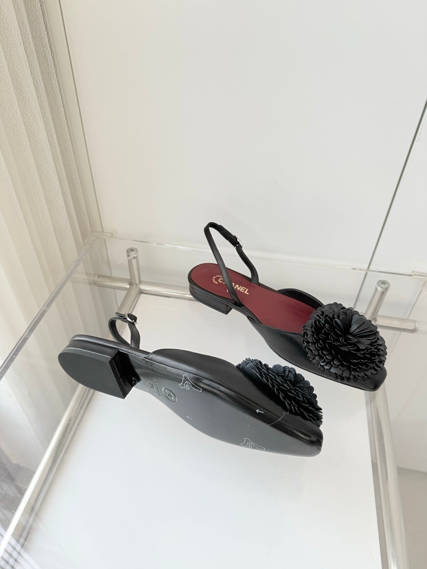 CC 26s Slingback 1.5cm Camellia Flower Black Sheepskin 597410