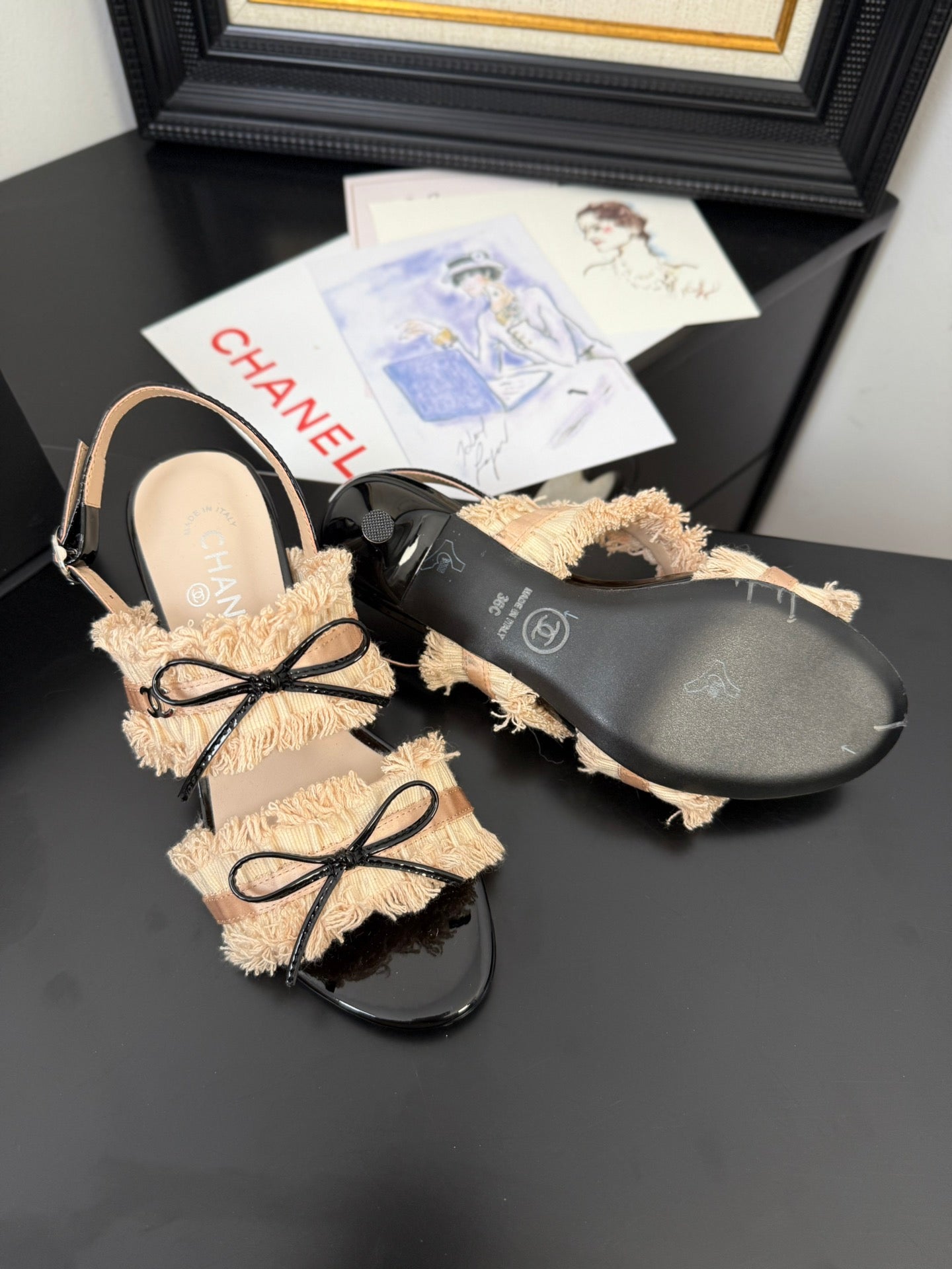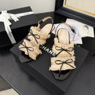 cc25 slingback sandal ̣65mm bow black grosgrain beige canvas 233591
