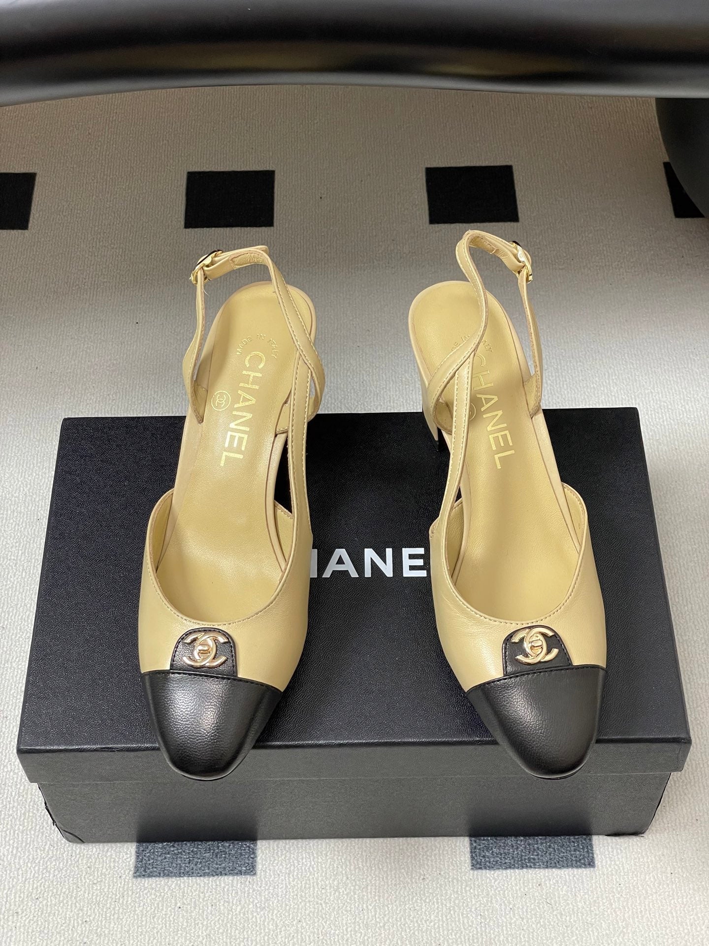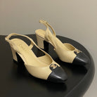 Chanel 25 Slingback 50mm Beige Black Lambskin 473216