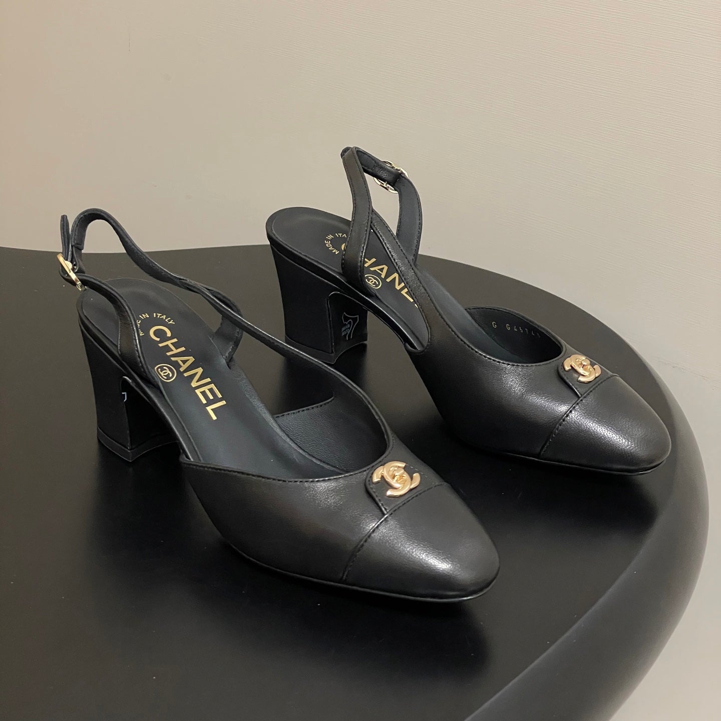 Chanel 25 Slingback 50mm Black Lambskin 473218