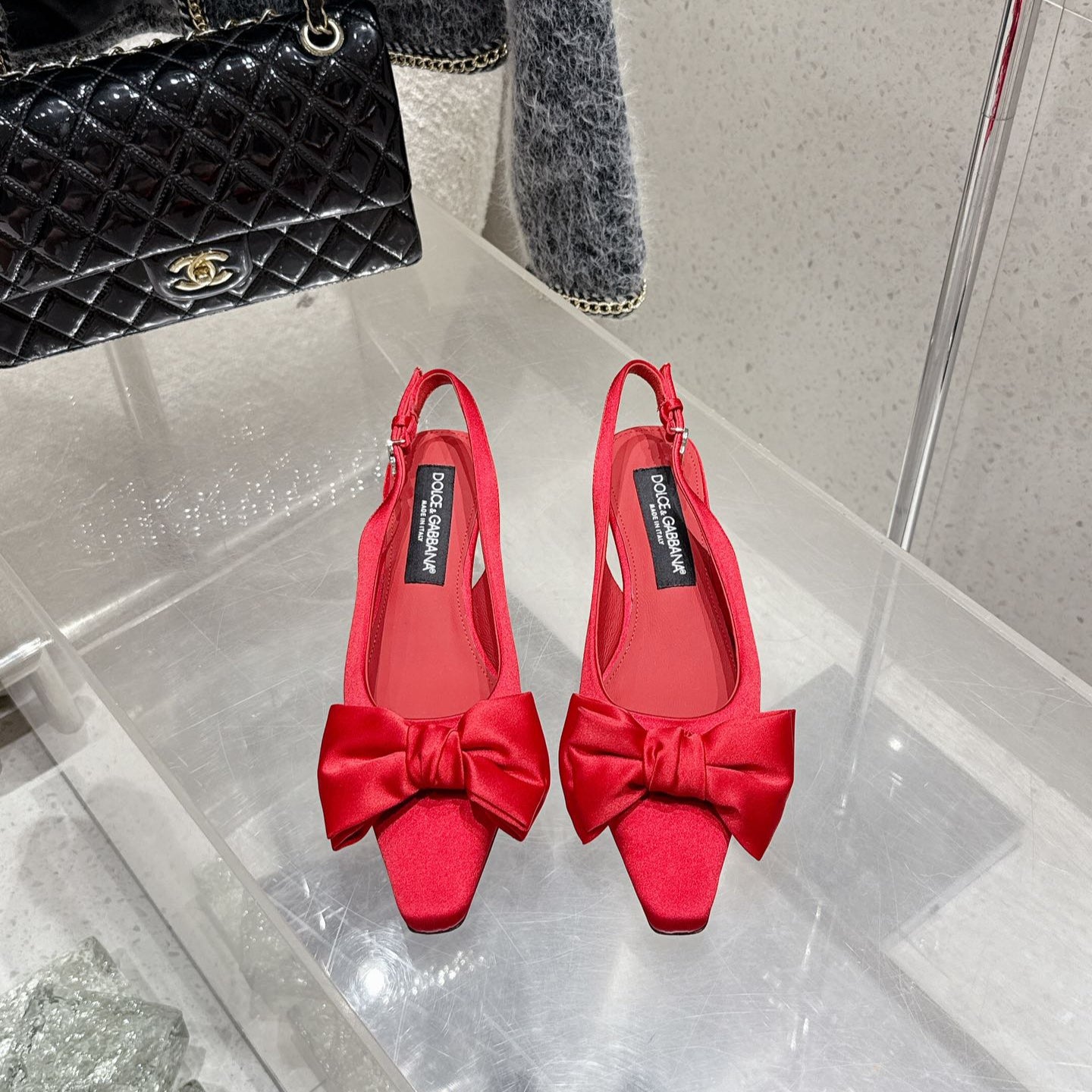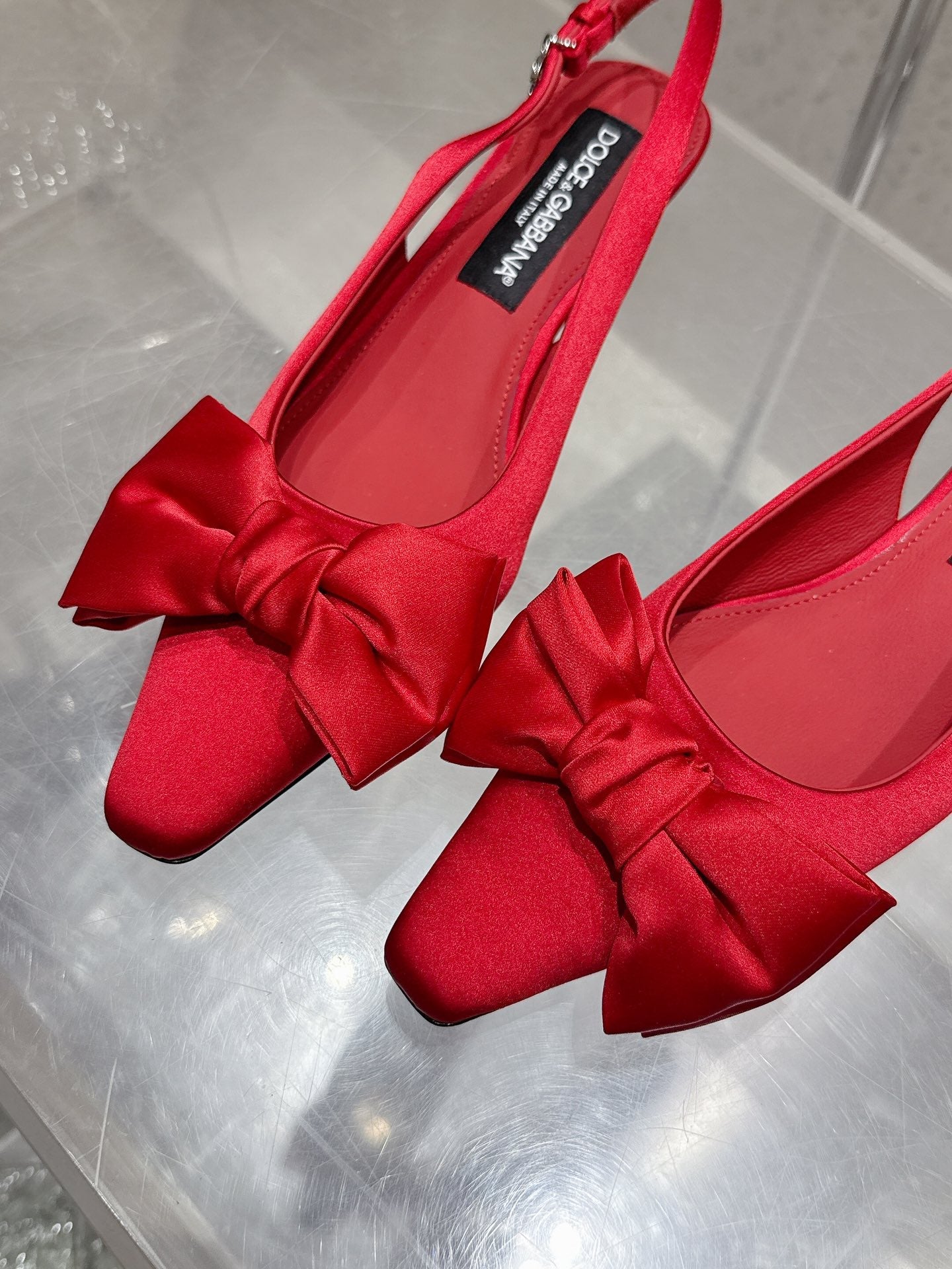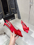 DC 25 Bow Slingback Pumps 30mm Red Satin & Sheepskin 359510