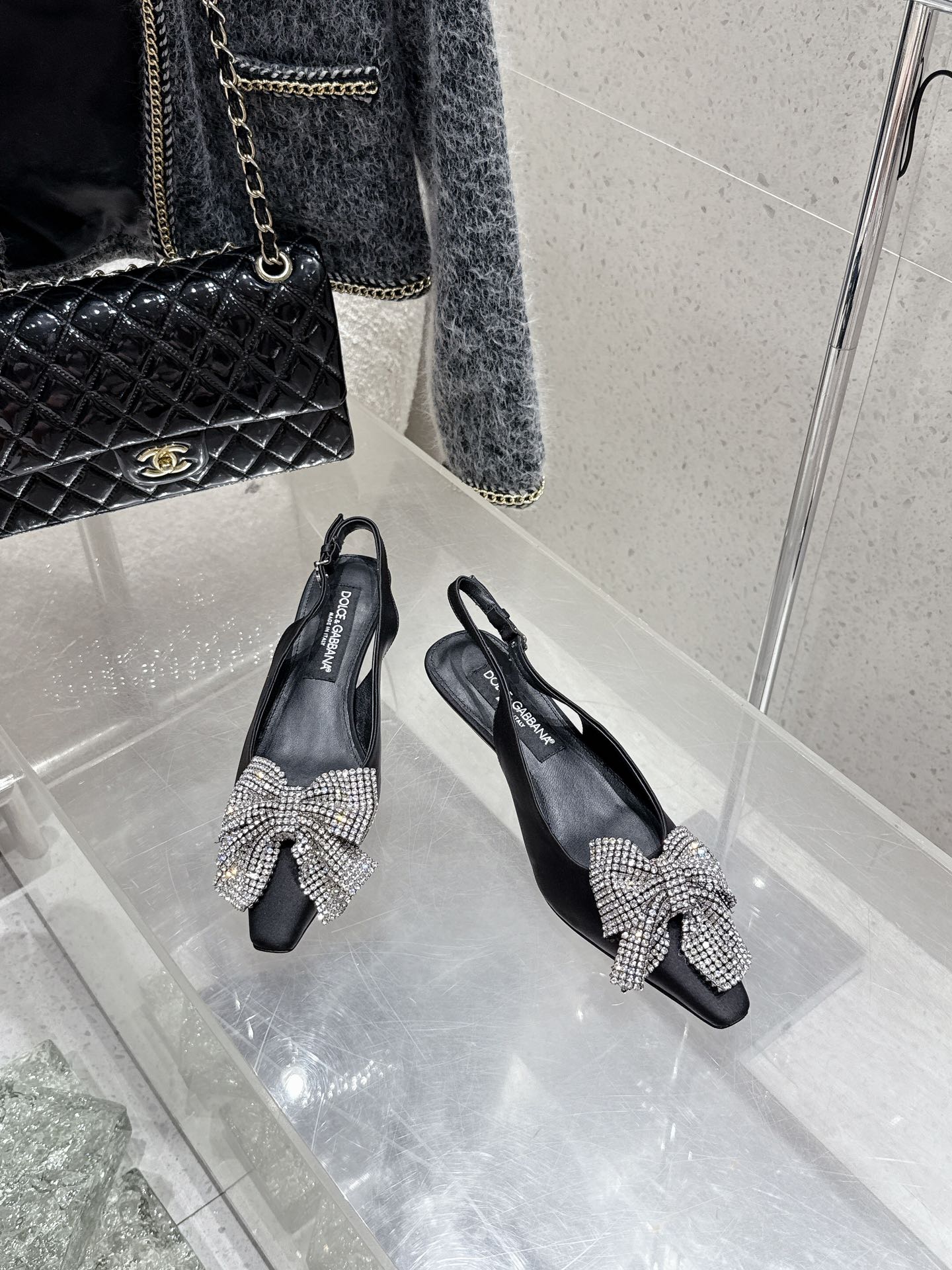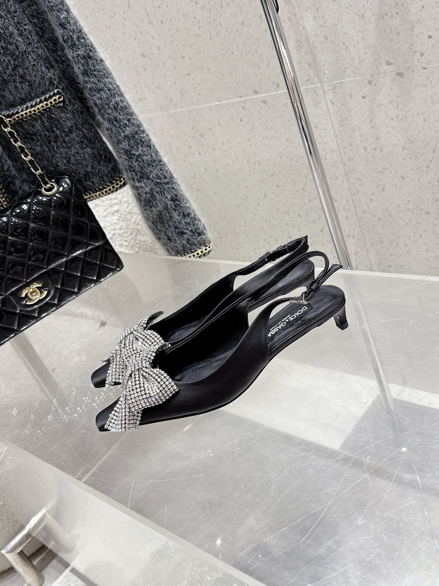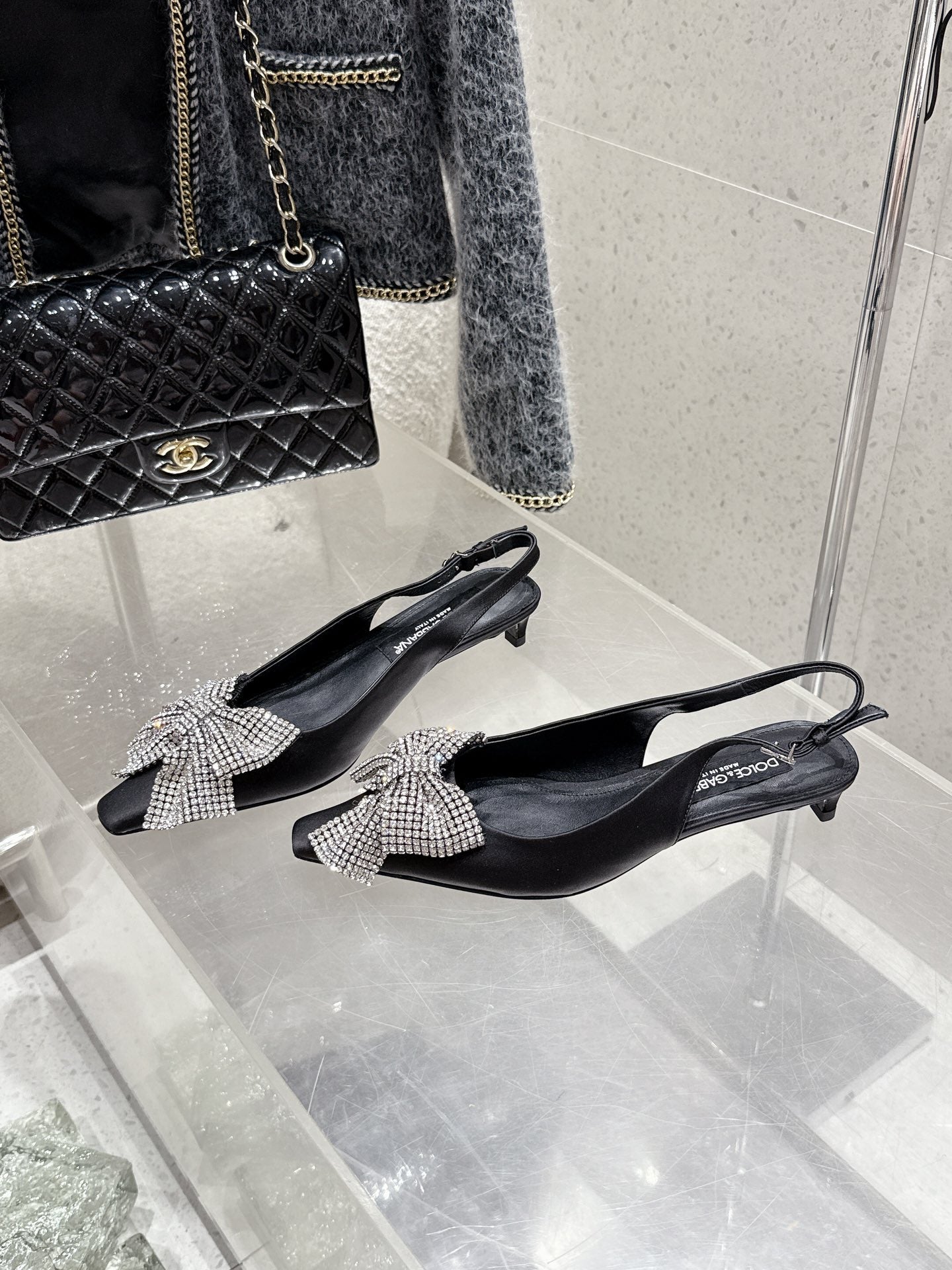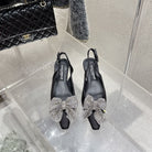 DC 25 Rhinestone Bow Slingback Pumps 40mm Black Silk & Sheepskin 359513
