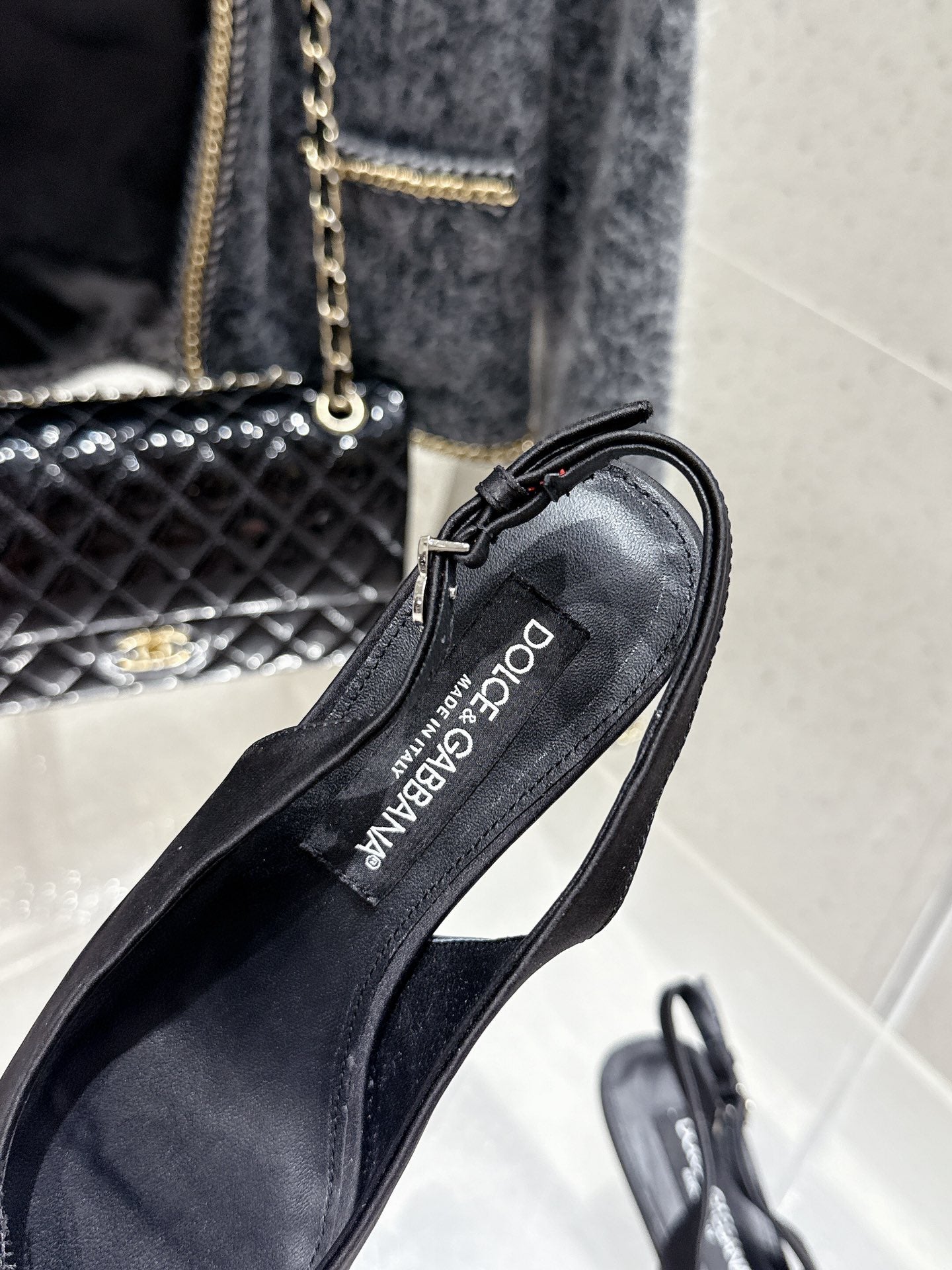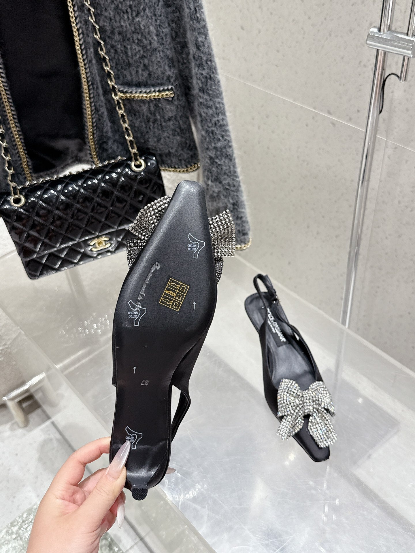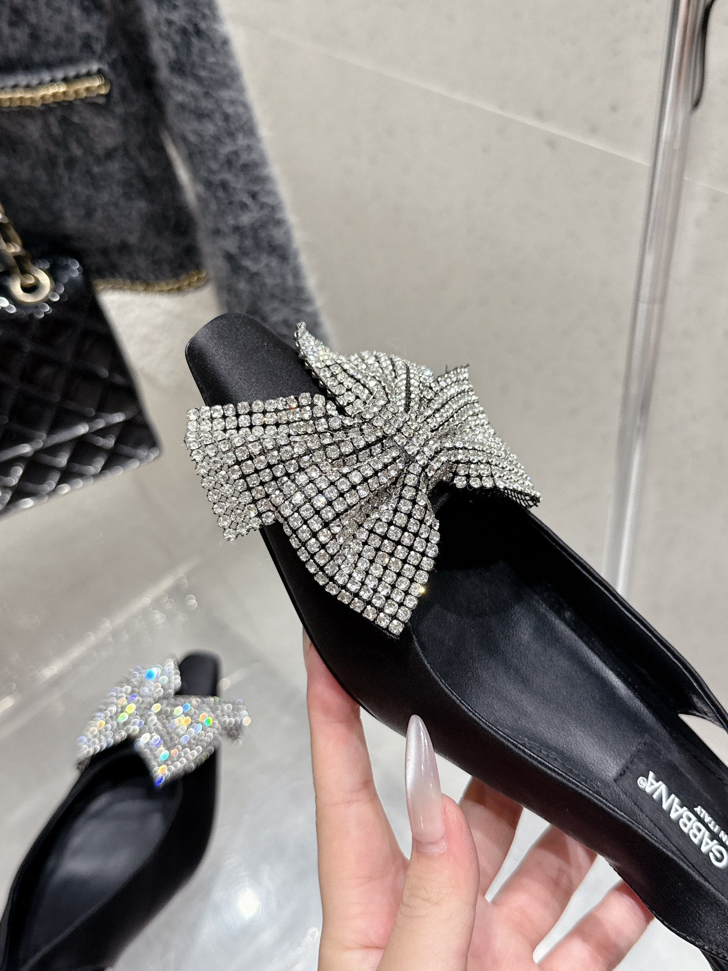 DC 25 Rhinestone Bow Slingback Pumps 40mm Black Silk & Sheepskin 359513