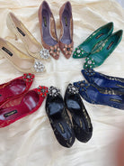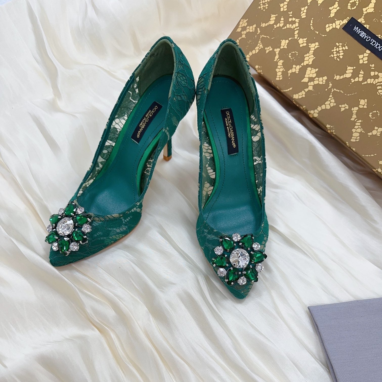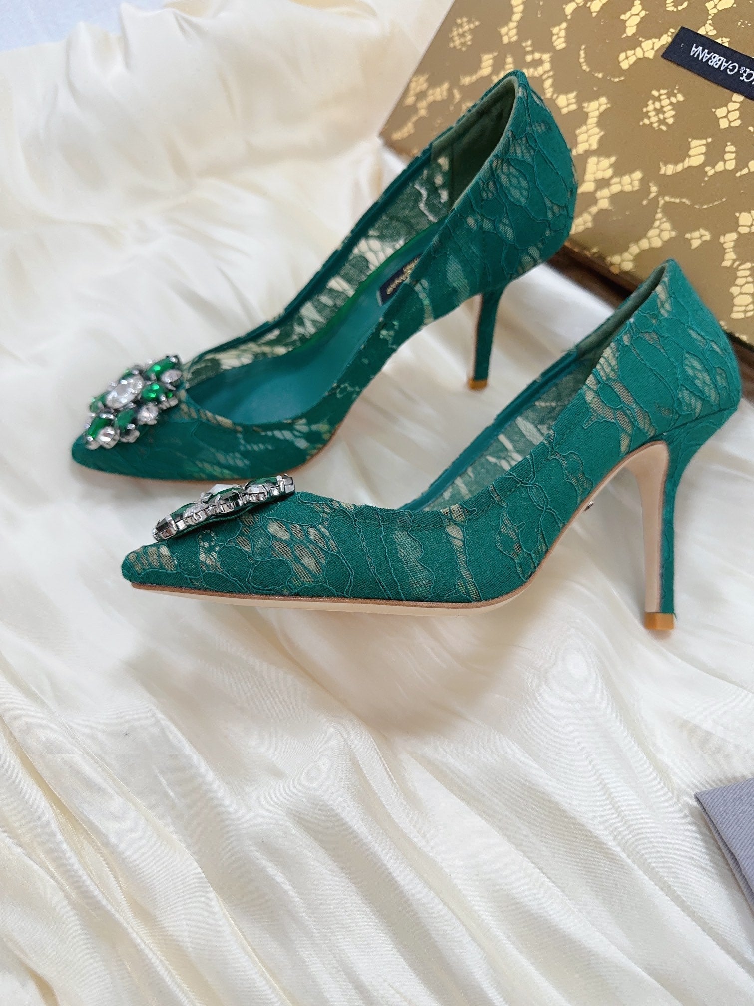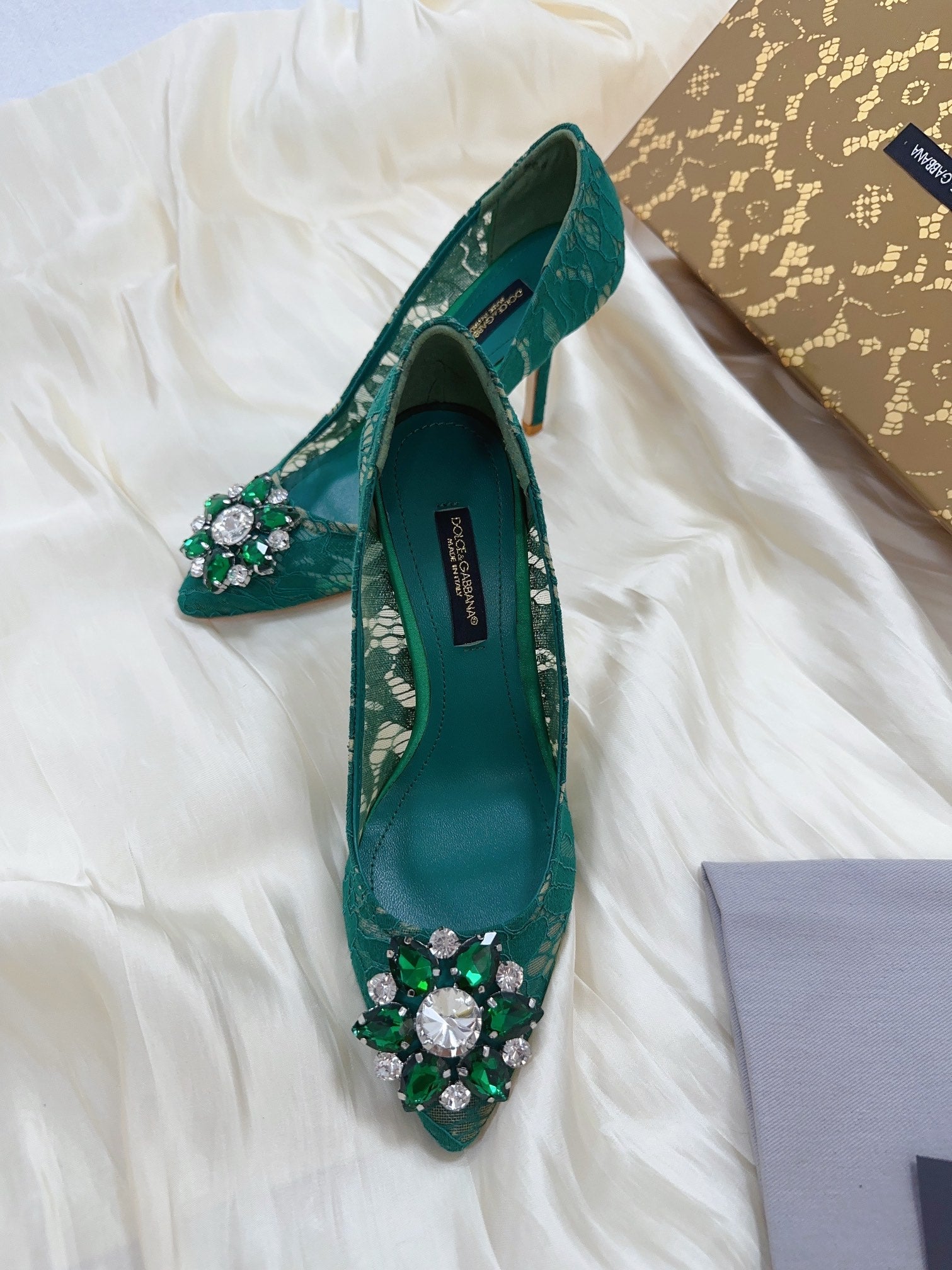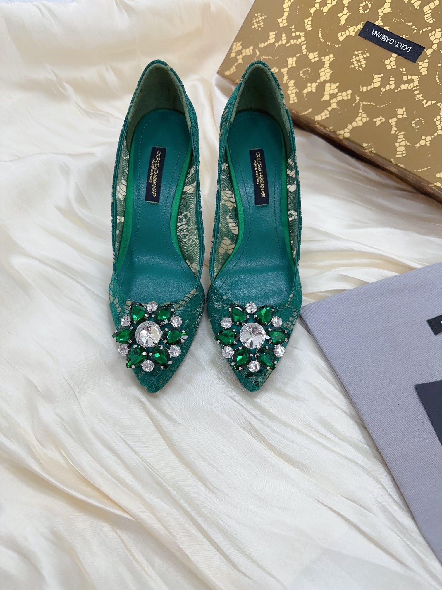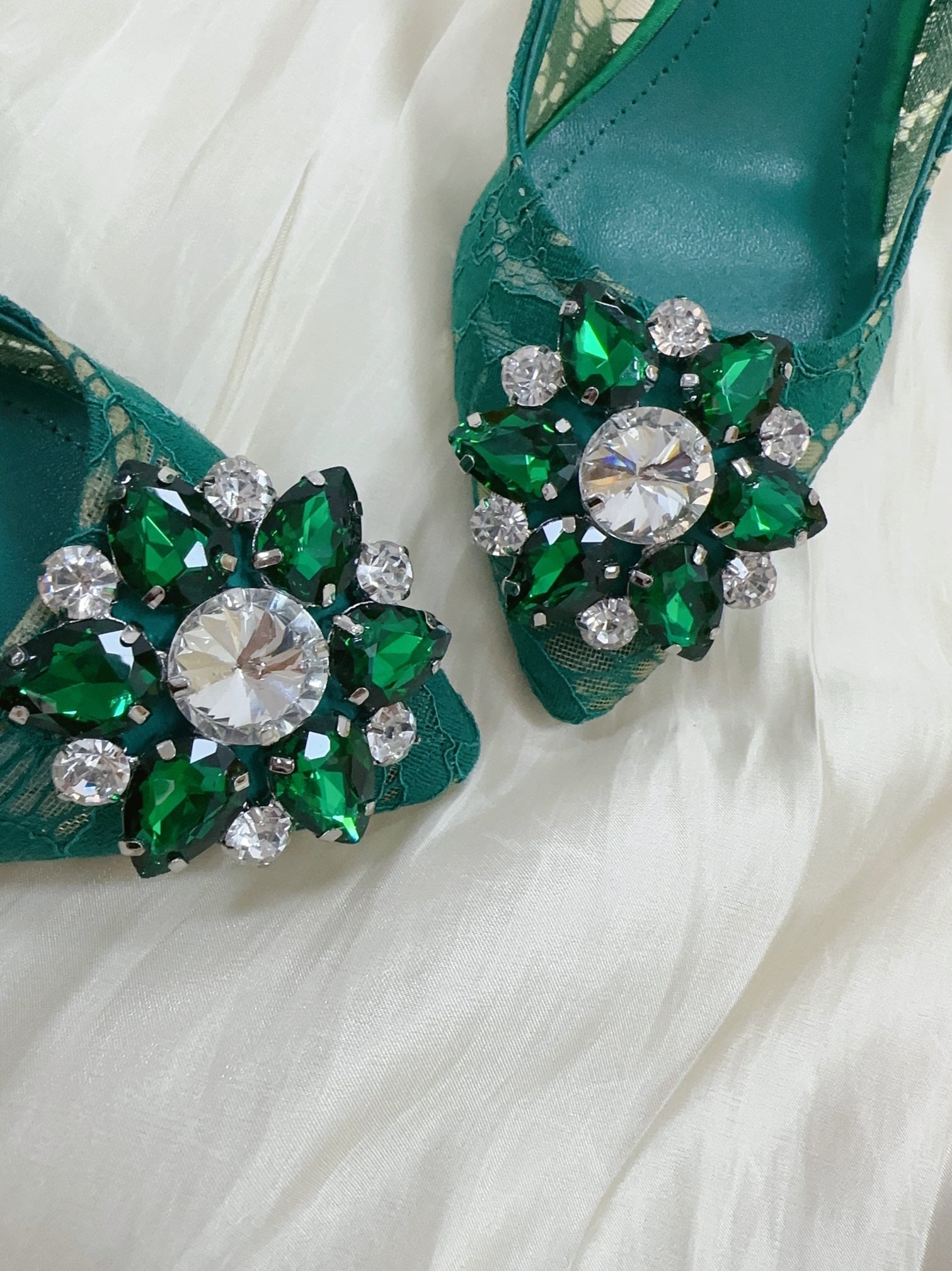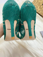 DC Floral Crystal Pumps Deep Blue-Green Genuine Leather & Lace 324774