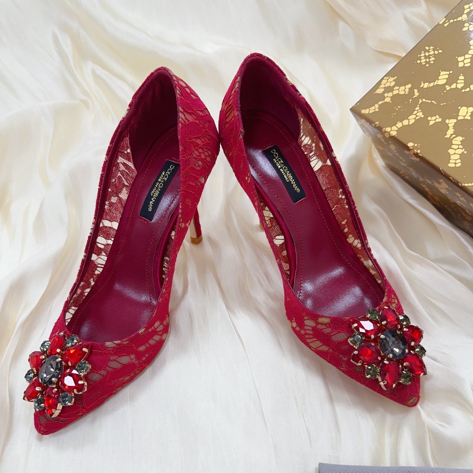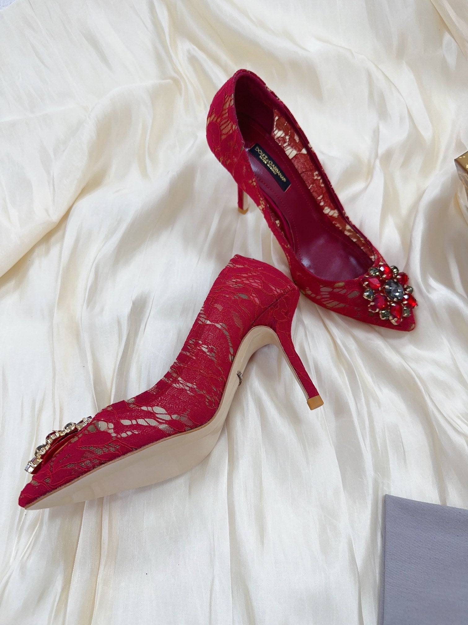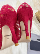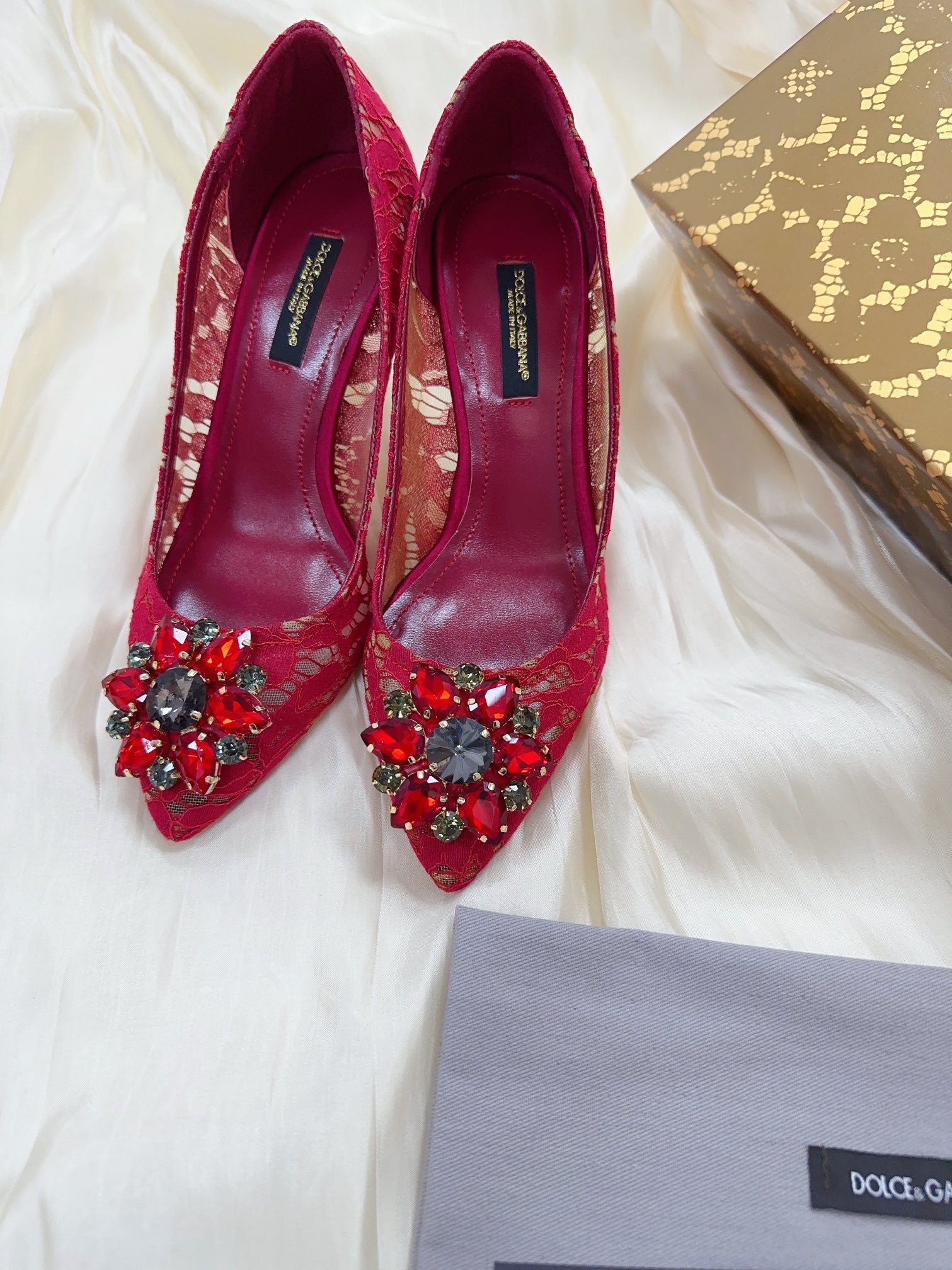 DC Floral Crystal Pumps Red Genuine Leather & Lace 324771