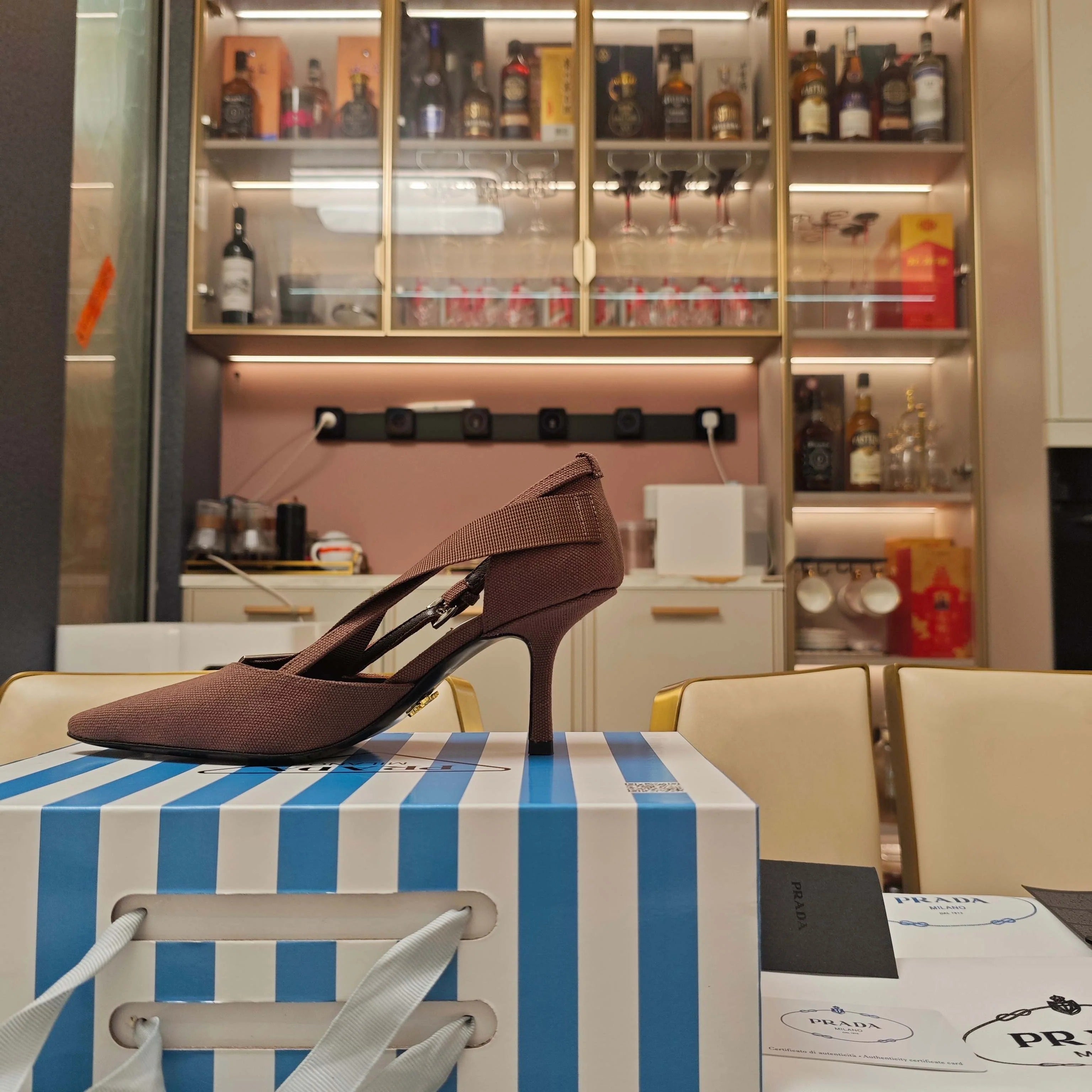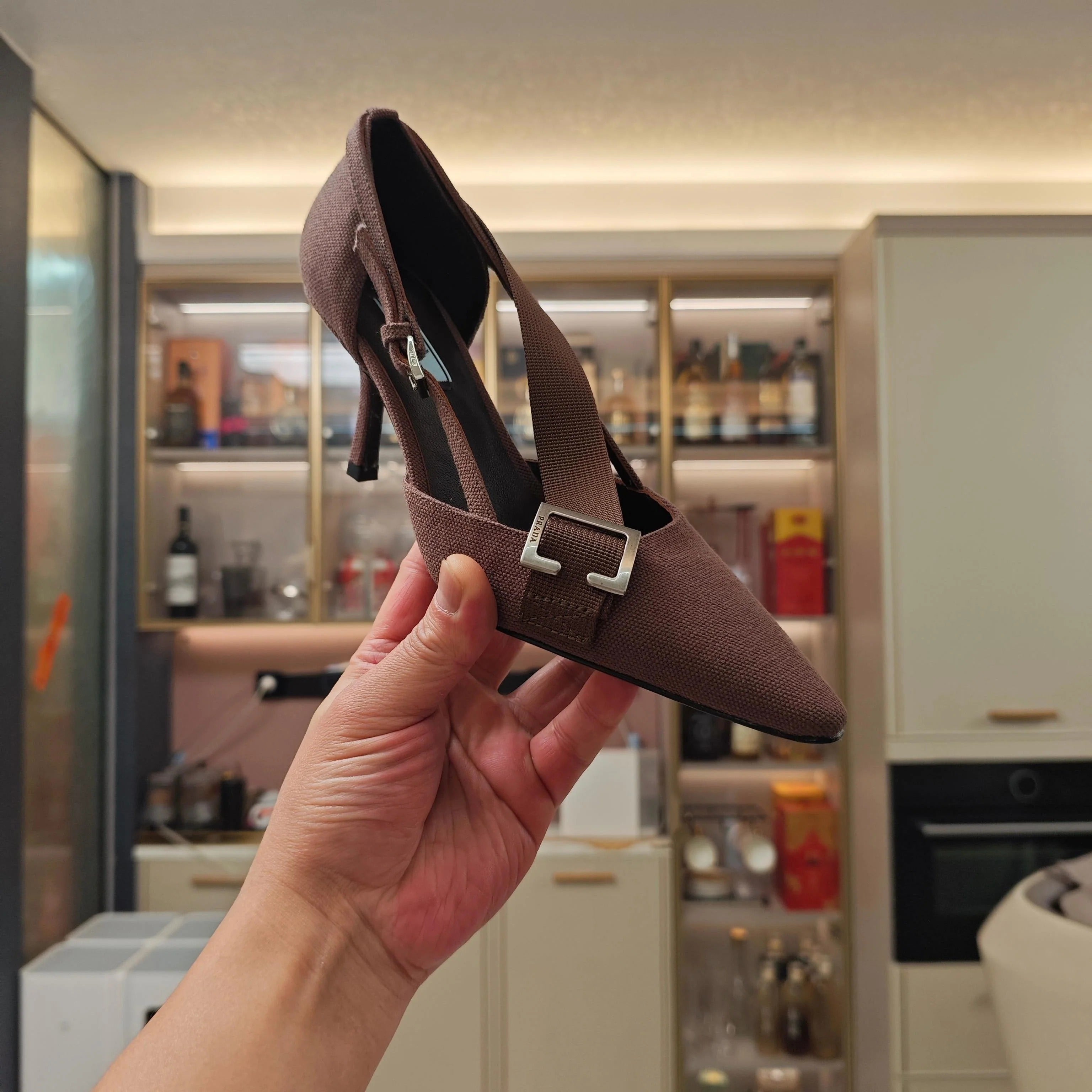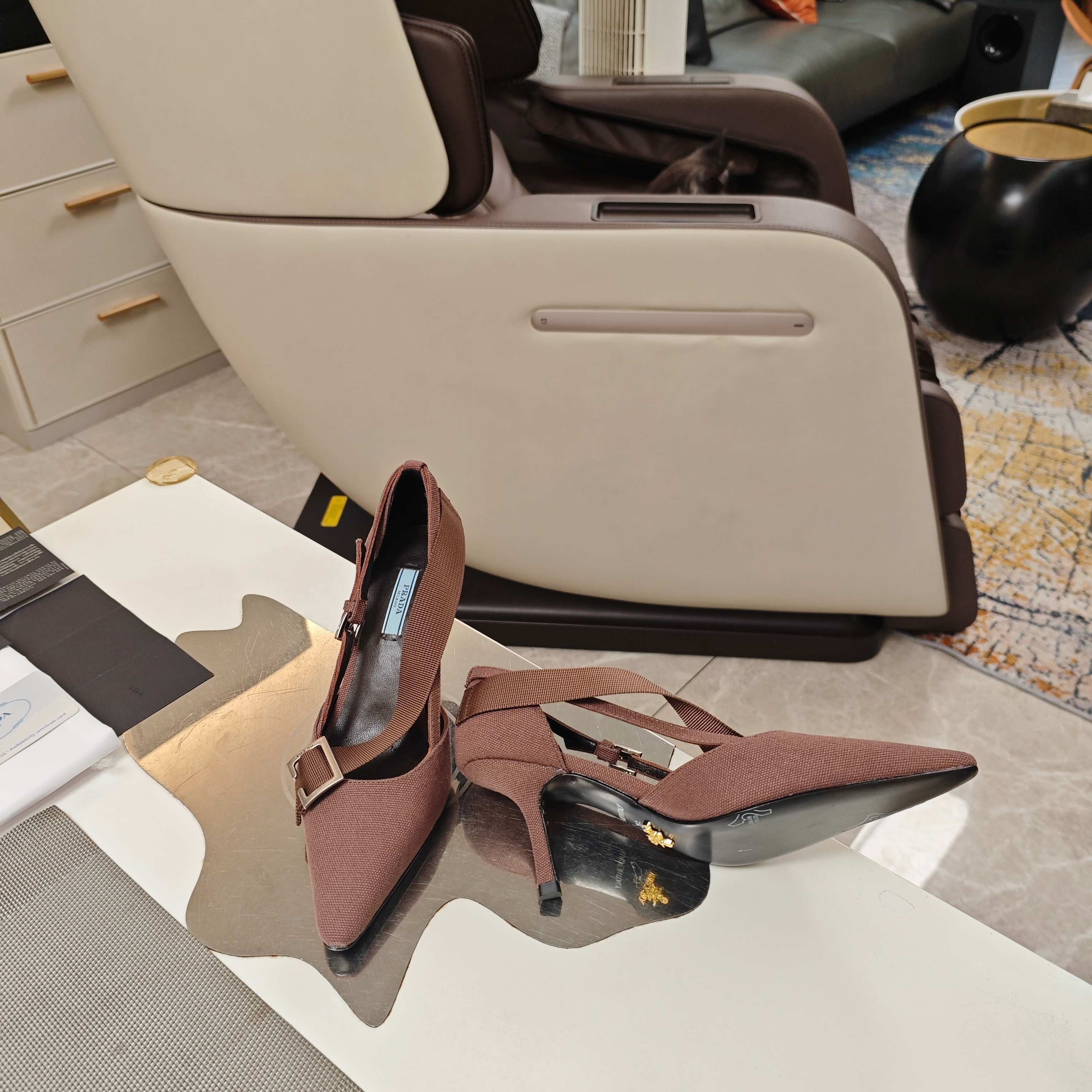 PRA 26S High Heel Pump 70 Dark Taupe Brown Canvas 630561