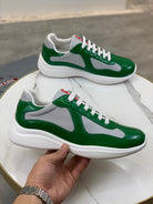 Prada America's Cup Biker Sneakers Green Frabic White Cotton Laces