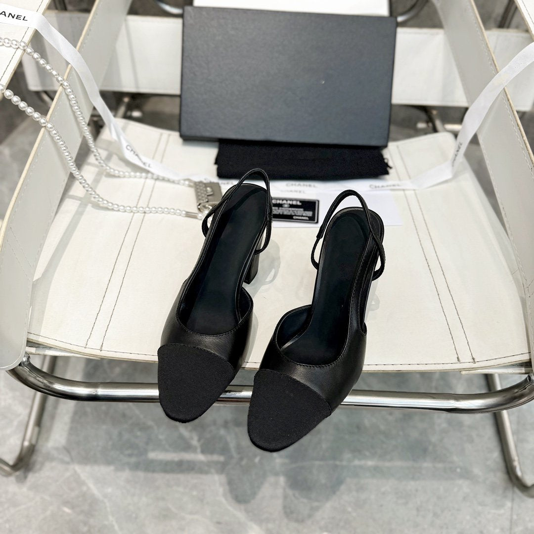 slingback 90 black calfskin grosgrain