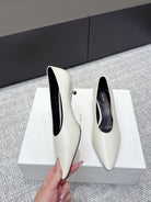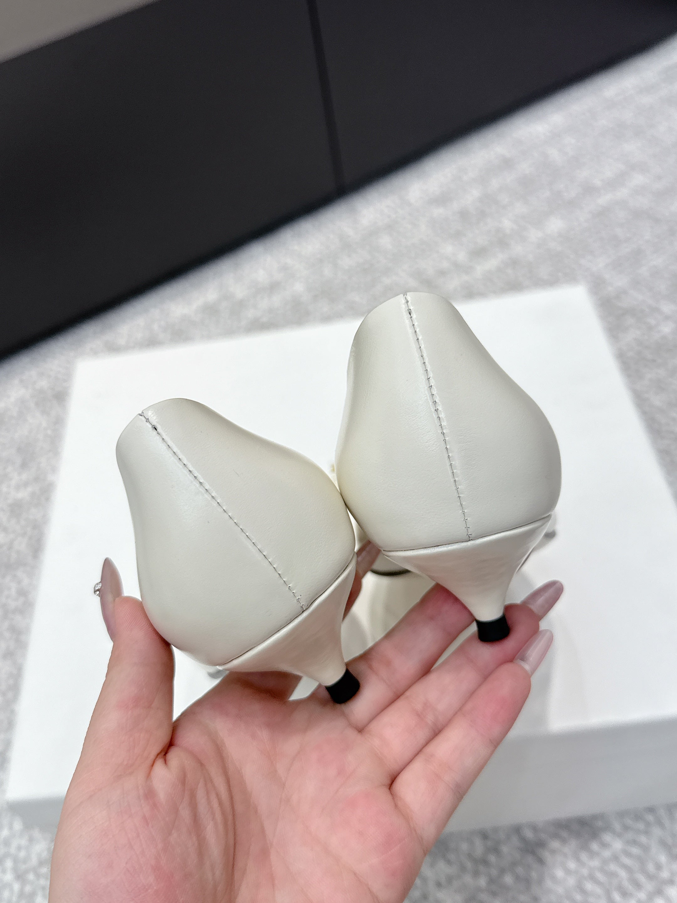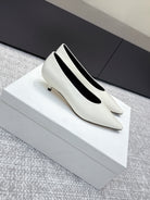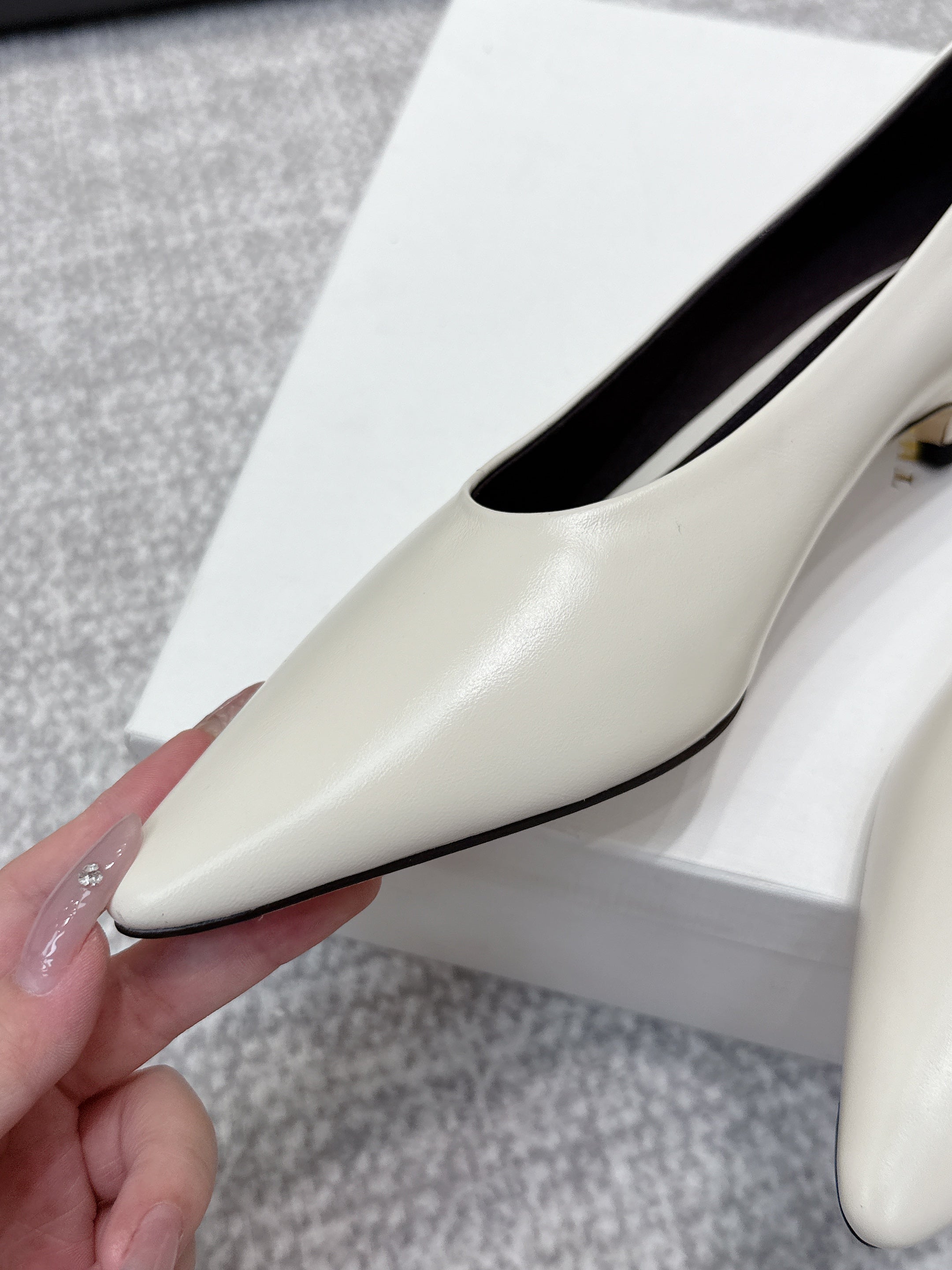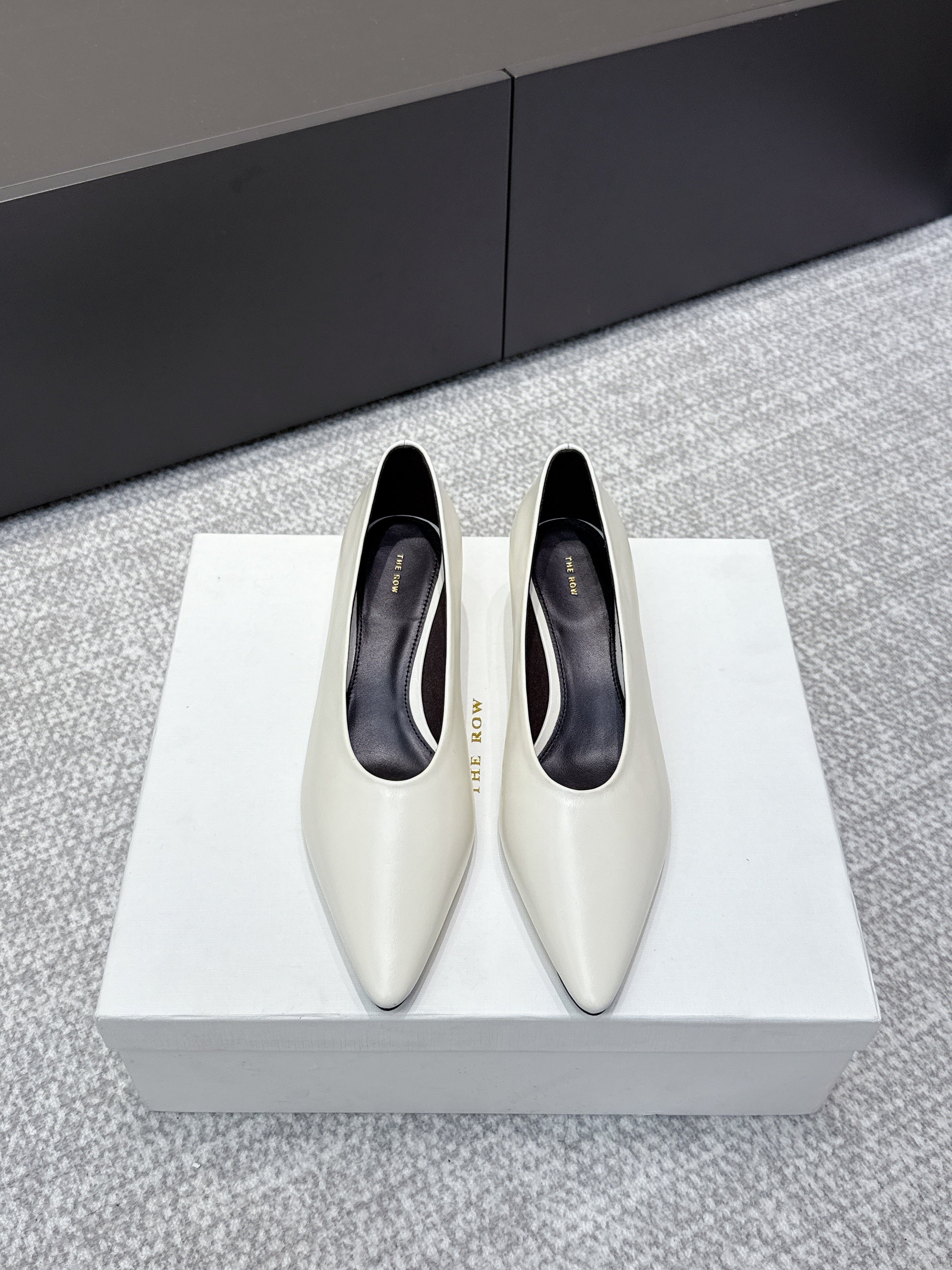 The Row 25ss TR Kitten heel Pointed Toe Shoes 35mm White Sheepskin451303