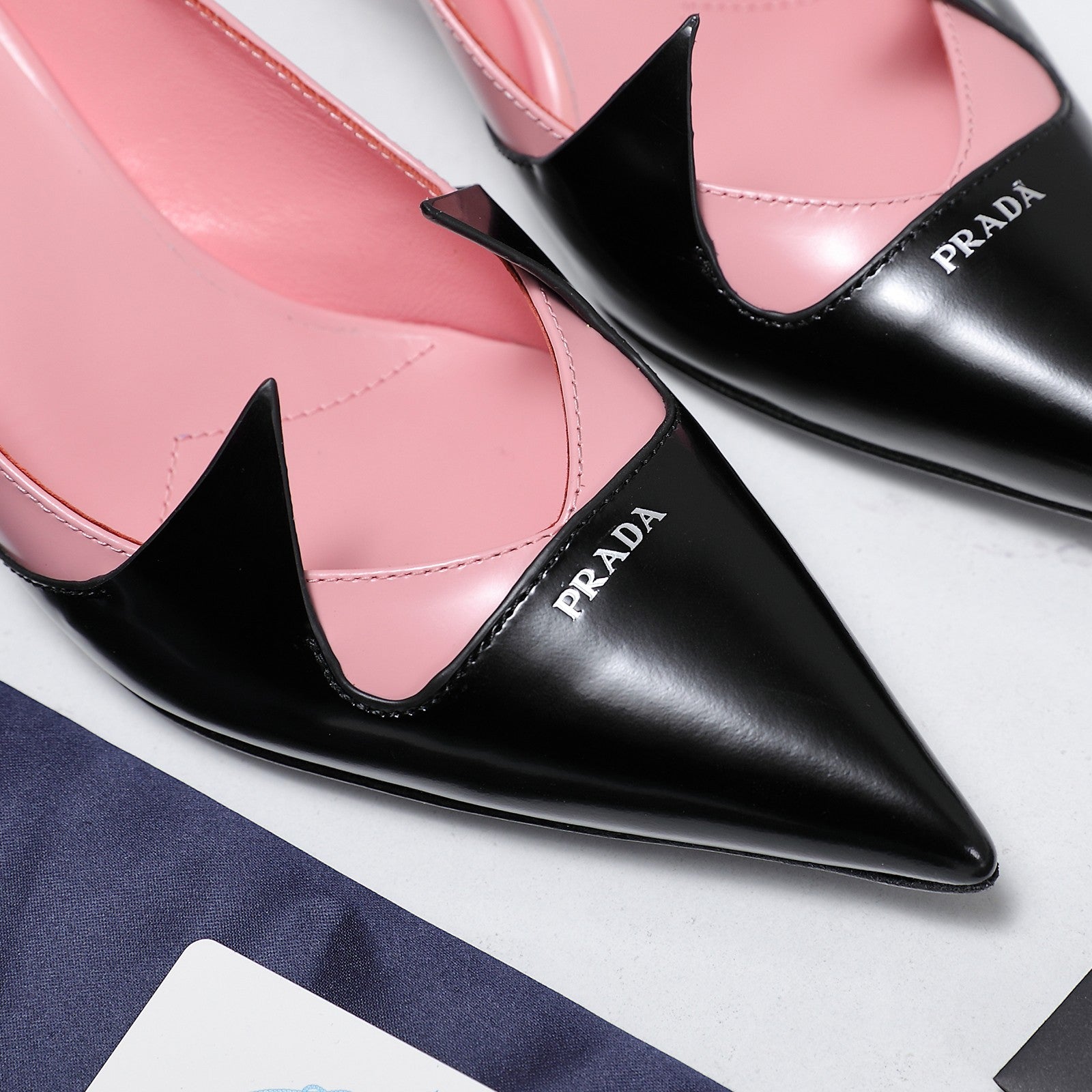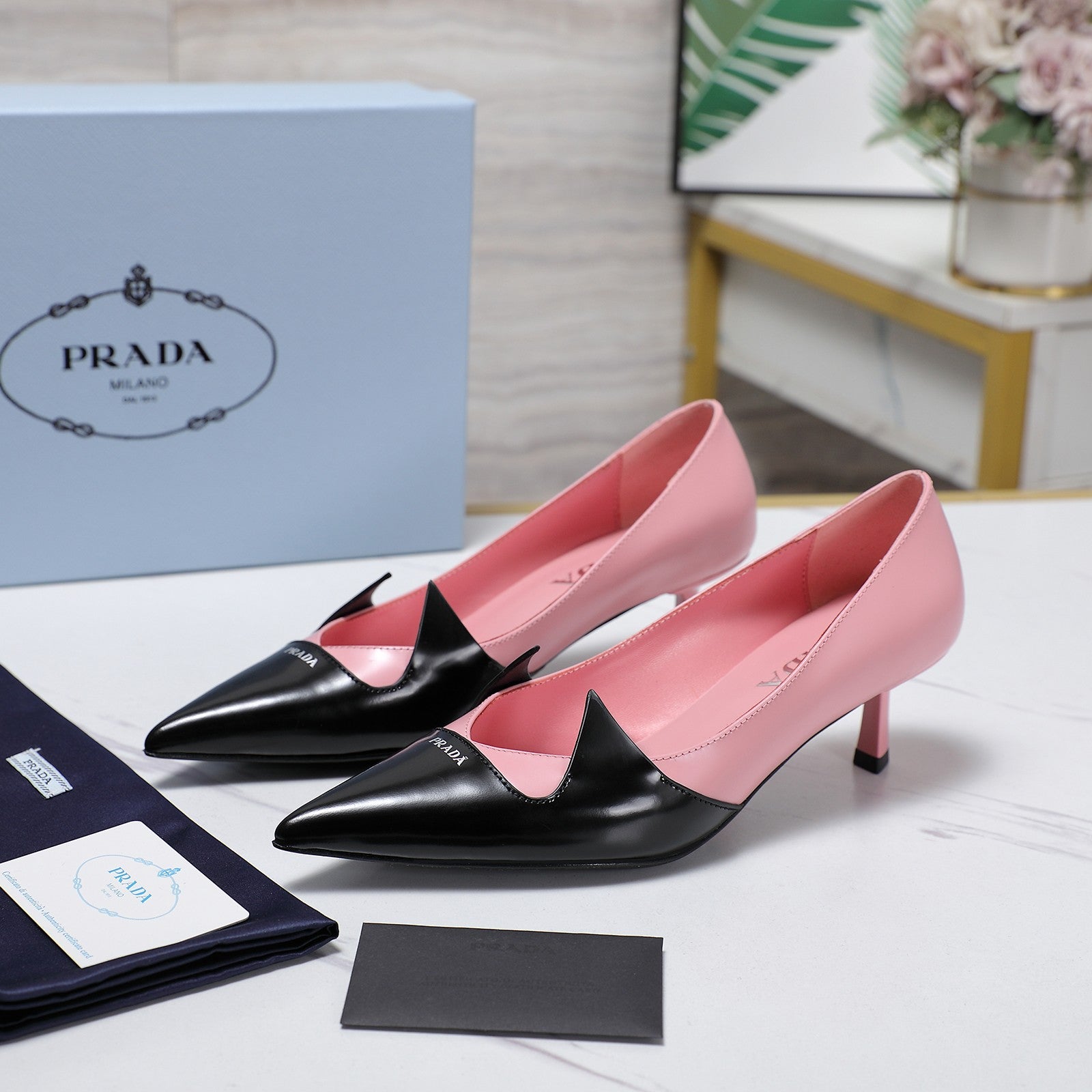 Prada Two-Tone Brushed Pumps 55mm Black Pink Cowhide 456265